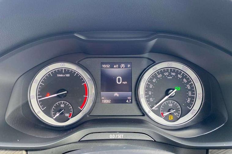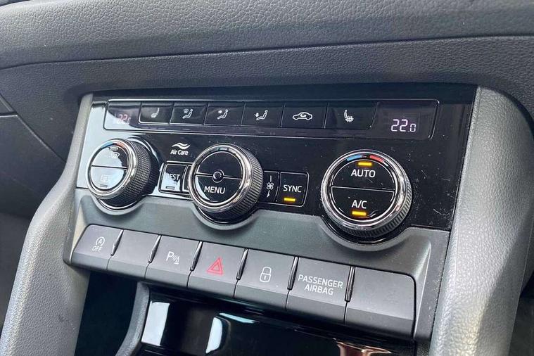 Bluetooth system, E-call, ECO Stop/start function, Exterior temperature indicator, Smartlink wireless for apple carplay and wired for android auto, Speed limiter, Tailgate unlocking from outside, USB C Port x 2 in front centre console, Wireless charging, DAB Digital radio, Aero front windscreen wipers with intermittent function, Aero rear window wiper, Auto dimming rear view mirror, Black wheel arch surrounds, Body colour bumpers, Body colour door mirrors and handles, Chrome front grille, Chrome roof rails with chrome window surround, Electric front and rear windows, Extended rear spoiler with finlets in gloss black, Front fog lights, Full LED matrix headlights with AFS (adaptive front light system), cornering function and AWL (all weather lighting system), Headlight washers, Heated rear window, Invisible tailpipe, LED daytime running lights, LED rear fog light, LED third brake light in rear spoiler, Light assistant (coming/leaving home/tunnel light), Off-road style lower front bumper element, Privacy glass, Rain and light sensors, Rear LED lights (high functionality) with welcome effect and dynamic indicators, Safety reflectors on front and rear doors, Window control switches with black trim, 12V socket in boot, 2 rails with 2 hooks, 4 foldable roof handles with rear coat hooks, 60:40 foldable rear seat with sliding adjustment and backrest angle adjustment, Bottle holders in door panel in the 1.5 litre front and 1 litre rear, Cargo storage compartments, Chrome headlight control button, Chrome interior door handles, Coat hooks on B pillar, Covered storage compartment on driver side, Decorative door sills in the front and rear, Front centre armrest with storage compartment, cup holder and 12V socket, Front courtesy lights, Gear shift lever with chrome frame and black gloss insert, Grey stitching in front and rear armrests and door armrests + door inserts, Height adjustable front headrests, Illuminated and cooled glovebox, Illuminated luggage compartment, Isofix child seat fittings in outer rear seats with top tether, Manually adjustable steering column, Net programme in boot (1x horizontal Net, 2x vertical Nets), Overhead glasses storage compartment, Pollen filter, Rear centre armrest with cupholders, Sliding trunk cover, Small Bags on the inner sides of the front backrests, Sunvisors with illuminated vanity mirrors, Three rear height adjustable headrests, Ticket holder on A Pillar, Umbrella in door panel, Variable boot floor, Auto door release and activation of warning lights in the event of an accident, Driver and front passenger airbag with knee airbag and front passenger airbag deactivation, Electronic parking brake with hill start assist, Emergency rear braking signal, ESC (incl. ABS+MSR+ASR+EDS+HBA+DSR+RBS+MKB), Front assist with autonomous emergency braking, Front side airbags with curtain airbags, Fuel cut off safety device, Height adjustable front 3 point seatbelts + pretensioners, Hill hold control, Rear disc brakes, Safety vest holder in door, Seat belt reminder for all seats, Three point rear seat belts, Two tone horn, Tyre pressure monitor, Alarm with interior monitoring and tilt sensor with safe function, Anti-theft wheel bolts, Immobiliser, Keyless entry and start system (KESSY), Remote central locking with 2 keys, Grey stitching in dashboard, Linear diamonds decorative inserts, Temporary spare wheel (space saver),