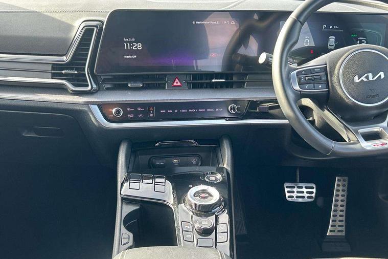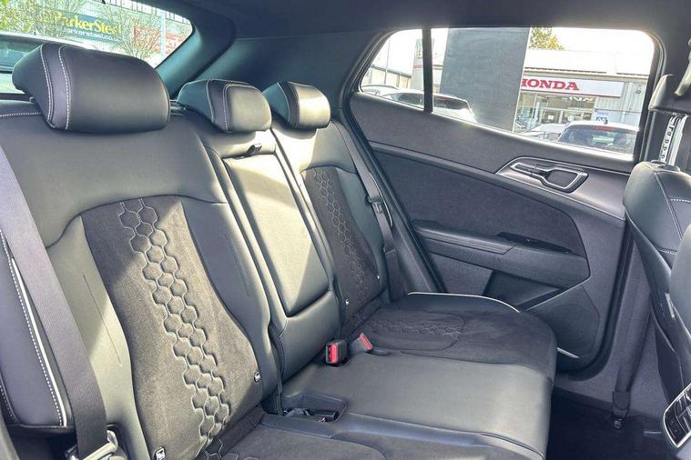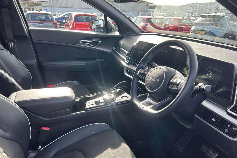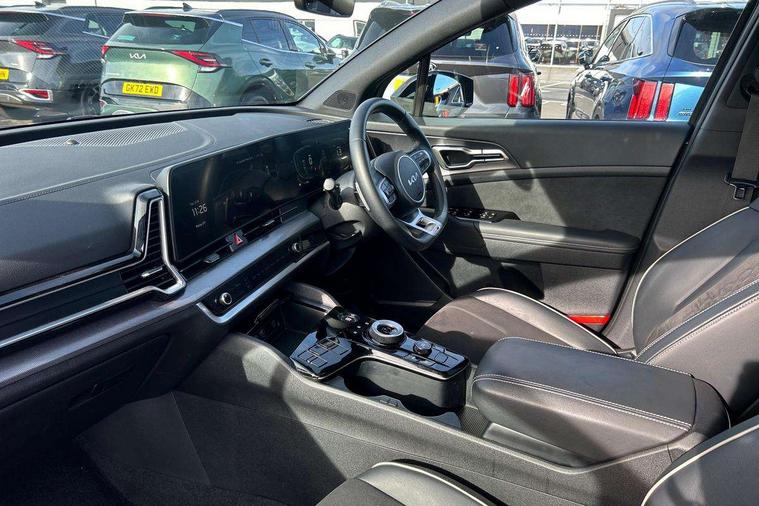 12.3" Display with navigation, 4.2" supervision colour cluster display, Apple car play/Android Auto with voice control, Drive mode selector, E-call, Forward collision avoidance assist (FCA) - city/pedestrian/cyclist/junction covering, Front and rear parking sensors, Highway Driving Assist (HDA), Intelligent speed limit assist, Kia Connect (UVO), Lane Following Assist (LFA), Lane keep assist, Low washer fluid warning, Rear view monitor, Reversing camera system integrated into centre fascia screen, Smart cruise control with stop and go functionality, Speed sensitive power steering, Trip computer, Windscreen washer level indicator, Intelligent Stop and Go, 6 speaker audio system, Bluetooth audio streaming, DAB Radio with MP3, Rear USB port, Steering wheel mounted audio controls, USB C type charging ports on centre console, USB C type charging ports on side of front seats, USB port for connection of a media device, All round electric windows with drivers and front passenger auto up/down function, Automatic headlight control system, Automatic window defogger, Backlite glass heated with timer, Body colour and black bumper with silver accents, Body colour exterior door handles, Body colour radiator upper garnish and door garnish, Electrically adjustable/heated/folding door mirrors with LED indicators, Front and rear chrome skid plates, Gloss black door mirrors, Gloss black radiator grille, Gloss black side sill and wheel arch body mouldings, Glossy black roof rack, High beam assist, Interior electrochromic mirror, LED daytime running lights, LED front fog lamps, LED headlamps (low and high beam - MFR type), LED High mounted stop light, LED rear combination lamp, Rain sensing wipers with aero blades, Rear fog lamp, Rear privacy glass, Rear side wing doors, Rear spoiler, Rear wiper, Satin finished beltline, Trailer stability assist, 12V power socket in front centre fascia and luggage compartment, 2nd row personal lamps, 3 seat bench in 2nd row, 3 x passenger assist grips, 40/20/40 split folding rear seat, All-round height adjustable headrests, Black headlining, Centre console storage box, Cupholders in rear armrest, D-Shaped sports leather steering wheel and perforated inserts with GT-Line logo, Door courtesy lamps, Drink holder at centre armrest, Driver and front passenger side sunvisors with illuminated vanity mirrors, Driver's seat manual height adjust, Drivers seat power lumbar support, Front and rear door storage, Front seat and rear pockets, Front/rear centre armrests, Gear shift indicator, Glovebox illumination, Interior door lock/unlock function, ISOFIX Child seat top tethers and anchor fixings outer rear seats, Luggage area light, Luggage area load cover, Luggage net with hooks, Metal paint interior door handles, Overhead console lamp, Paddle shift controls, Rear coat hooks, Single front passenger seat, Sports pedals, Suede leather upholstery, Three zone climate control, Tilt/telescopic adjustable steering wheel, Ventilation ducts to rear compartment, Active front headrests, All round 3-point seatbelts, Anti-lock braking system (ABS), Dual front side airbags, Dual horn, Electronic parking brake, Electronic stability control with downhill brake control, Front passenger airbag cut-off switch, Front seatbelt pretensioners + load limiters, Height adjustable front seatbelts, Hill start assist control (HAC), Impact sensing auto door unlocking, Multi collision brake assist, Rear door child safety locks, Rear seat alert system, Traction control, Twin curtain airbags, Twin front airbags, Tyre pressure monitoring system, Advanced anti-theft system including immobiliser and alarm, Door deadlocks, Engine Start/Stop Button with Smart Entry System, Locking wheel nuts, Speed sensitive auto door locking, Visible vehicle identification number, Aluminium pattern finish centre fascia and door garnish, 18" Alloy wheels, Tyre mobility kit,