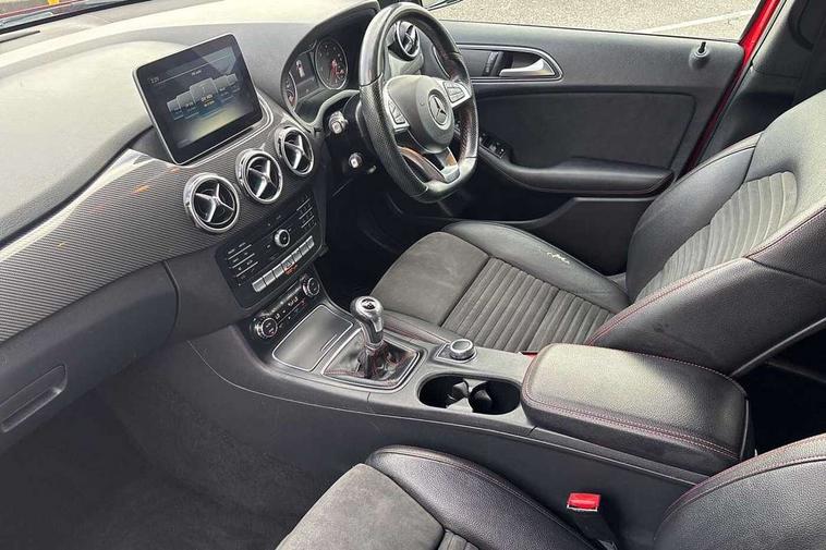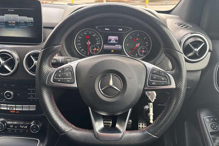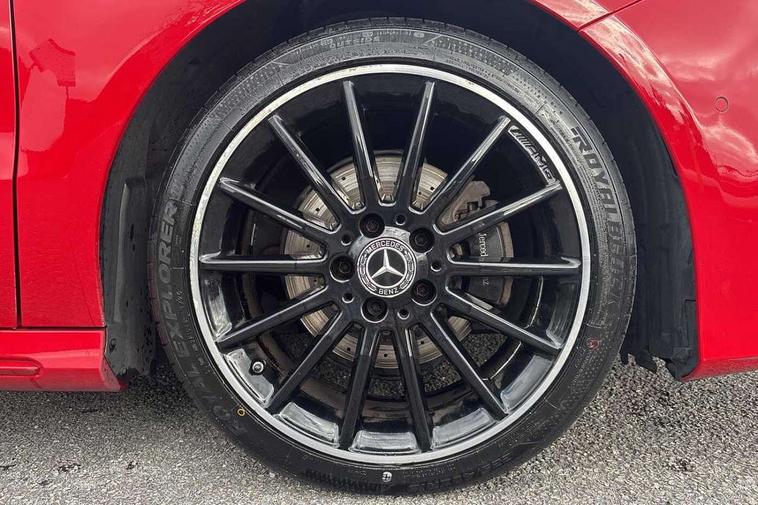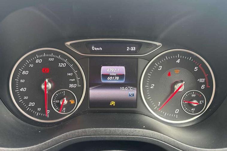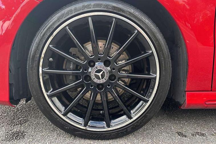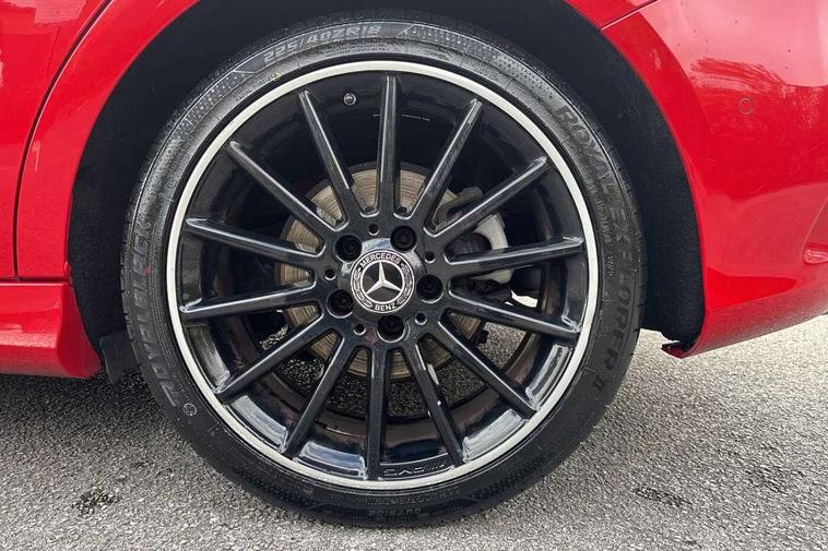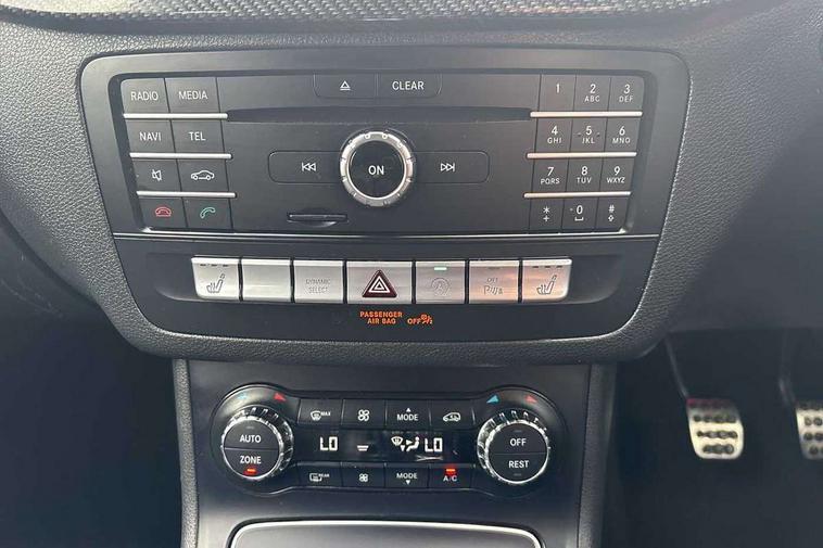 8" colour display screen, Attention assist, Collision prevention assist, Cruise control + speed limiter, Direct steering, Drive mode selector, External temperature gauge, Instrument cluster with 4.5-inch TFT colour display, Low fluid warning light, Mercedes-Benz emergency call, Multi function trip computer, Park assist pilot with front and rear park assist, Reversing camera, Service indicator (ASSYST PLUS), Smartphone integration with Apple CarPlay, Diesel particulate filter, Lowered suspension, 6 speakers, Bluetooth audio streaming, Media interface, USB port, Adaptive brake lights, Aluminium front door sills, AMG body styling, Auto dimming interior and driver's door mirror, Automatic headlamp activation, Body colour bumpers, Body colour door handles, Door sill plates with "Mercedes-Benz" lettering, Electric folding door mirrors, Electric front/rear windows/one touch operation, Electric heated + adjustable door mirrors, Heated rear window with timer, Heated windscreen wash system, High beam assist, LED daytime running lights, LED Headlights, LED rear lights, Rain sensor windscreen wipers, Rear wiper, Twin exhaust tailpipes with chrome finishers, 1/3 to 2/3 split folding rear seats, 12 colour Ambient lighting, 12V power points in front + rear centre consoles, 2 Position luggage floor, 3 spoke flat bottomed sports leather multi function steering wheel with red contrast stitching, AMG brushed stainless steel sports pedals with rubber studs, Auto Mercedes-Benz child seat recognition sensor, Black roof liner, Centre console with cupholders, Collapsible storage box under luggage compartment floor, Door centre panels in dinamica, Driver and passenger underseat storage box, Driver/front passenger seat height adjustment, Driver/passenger sunvisors and illuminated vanity mirrors, Dual zone automatic climate control, Footwell lights, Front centre armrest with storage compartment, Front headrests, Heated front seats, Height adjustable headrests, Height/reach adjustable steering column, Isofix rear child seat fastenings, Leather trimmed gearshift with chrome inserts, Load compartment cover, Luggage compartment lighting, Reading lights, Rear armrest with 2 cupholders and load through provision, Rear headrests, Seat cushion angle adjustment, Sliding front centre armrest with storage compartment, Sliding rear seats, Storage compartment in centre console, Storage compartment in front doors, 5 x 3 point seatbelts, ABS with Brake Assist, Brake calipers with Mercedes-Benz lettering + perforated brake discs, Child proof door locks, Crash responsive emergency lighting, Drivers knee airbag, Dual stage driver/passenger airbags, Electronic parking brake, ESP with ASR, Front and rear seatbelt reminder, Front passenger airbag deactivation, Front seat side impact airbags, Hill start assist, Seat occupancy sensor, Tyre pressure monitoring system, Warning triangle and first aid kit, Window airbags, Alarm system/interior protection/immobiliser, Locking wheel bolts, Remote central locking, Air vents in Silver-chrome, Carbon fibre dash trim, Tirefit sealant with electric air pump,