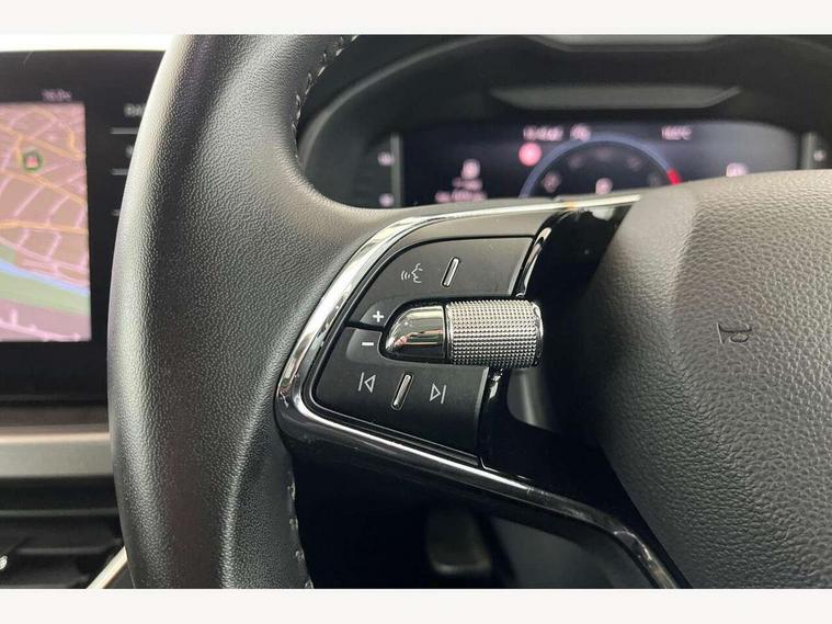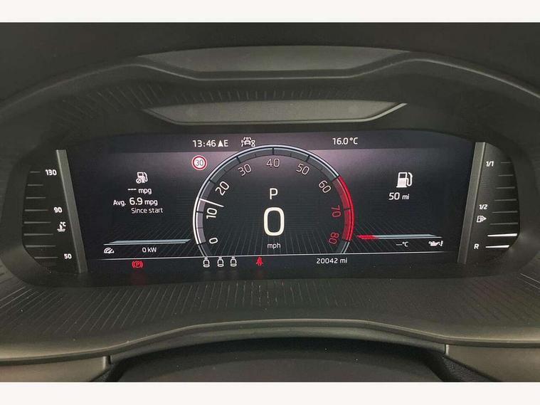 Amundsen satellite navigation with 9.2" glass colour touchscreen display, voice control, virtual cockpit, web radio and traffic sign recognition, Bluetooth system, E-call, Front and rear parking sensors, Front assist system, Gesture control, PAS, Rear view camera, Service indicator, Speed limiter, Virtual cockpit with 10.25" display, Wireless SmartLink for apple car play, android auto and mirrorlink, 8 Speakers, Auxiliary input socket, DAB Digital radio, Auto dimming rear view mirror, Body colour bumpers, Body colour door mirrors and handles, Chrome grille surround, Electric folding door mirrors, Electrically adjustable and heated door mirrors, Front and rear electric windows, Headlight range control, Heated rear window, LED rear lights - low functionality, Light sensors, Privacy glass, Rear fog lights, Rear side wing doors, Rear wiper, 12V Accessory socket in centre console, 3 seat bench in 2nd row, Chrome inner door handles, Dual zone climate control, Front head restraints, Glove compartment with illumination, Ice scraper, Isofix child seat fittings on outer rear seats, ISOFIX on front passenger seat, Manual lumbar support for front seats, Rake/reach adjustable steering wheel, Reading lights, Single front passenger seat, Sun visors with illumination on front passenger, Textile floor mats, Third rear headrest, Top tether for front passenger seat, Umbrella in driver's door, 3x3 point rear seatbelts, Airbags - driver and front passenger, ESP, Front passenger airbag deactivation switch, Front side airbags with curtain airbags, Hill hold control, Manual parking brake, Manual rear child locks, One tone horn, Rear disc brakes, Seatbelt reminder for driver an co-driver, Traction control, Tyre pressure monitor, Anti-theft alarm system with interior monitoring, backup horn, towing protection and remote central locking with SAFE system, Anti-theft wheel bolts, Electronic engine immobilizer, Latice curved decorative insert on the dashboard with hot stamping in copper and white ambient lighting white,