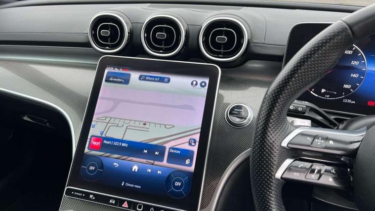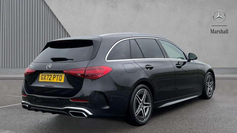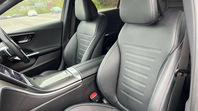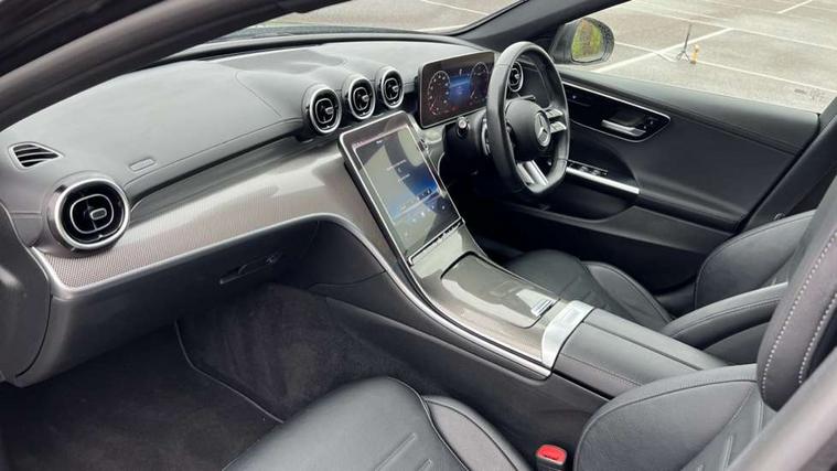 11.9" high resolution multimedia colour display, 12.3" digital instrument cluster display, Active blind spot assist, Active brake assist plus, Active lane keeping assist, AMG DYNAMIC SELECT with a choice of driving modes (Slippery, Comfort, Sport, Sport+, Individual), Attention assist, Cruise control with speedtronic variable speed limiter, E-call, Easy pack automatic powered tailgate, Extended MBUX functions, Finger print sensor, Fluorescent jacket for driver, MBUX navigation premium, MBUX voice control activated by keywords "Hey Mercedes", Mercedes connect me, Mercedes me remote services, Outside temperature gauge, Pre-installation for digital key transfer, Remote boot release, Service indicator (ASSYST), Smartphone integration, Sports direct steer speed sensitive steering, Status display for rear seat belts in instrument cluster, 66l fuel tank with increased capacity, 9G TRONIC 9 speed automatic transmission, Agility control sports suspension and lowered by 15 mm, Diesel particulate filter, DAB Digital radio, MBUX multimedia system, Adaptive brake lights, Adaptive high beam assist, AMG body styling front apron, rear apron and side skirts, AMG front bumper with sporty air intakes and chrome elements, AMG rear bumper with high gloss chrome elements, AMG side skirts in vehicle colour, B-pillar trim in glossy black, Body coloured bumpers, Body coloured door mirrors, Chrome beltline trim, Chrome roof rails, Daytime running lights, Electric windows with one touch opening/closing and obstruction sensors, Electrically adjustable and heated door mirrors, Green tinted glass, LED high performance headlamps, LED Indicators, LED tail lights, LED third brake light, Powerdomes on bonnet, Privacy glass, Radiator diamond grille with integrated Mercedes Benz star and louvre silver with chrome pins, Radio aerial integrated into rear window, Rain sensor with automatic windscreen wiper activation, Rear side wing doors, Rear wiper, Side windows surround in polished aluminium, Two visible exhaust pipes integrated into rear bumper, 3 spoke flattened bottom AMG multifunction steering wheel in black nappa leather with chrome inserts and perforated leather in grip area, 40:20:40 split folding rear bench seat, AMG Leather upholstery, AMG sports seats, Audio and onboard settings control on multifunction steering wheel, Auto Mercedes-Benz child seat recognition sensor, Black air vents with silver chrome elements, Black floor mats with AMG lettering, Black roof liner, Door trim elements high gloss black with silver chrome surroundings and switches, Double cupholder in centre console, Folding rear seat backrest, Front and rear head restraints, Front centre armrest with storage compartment, Front door sills with Mercedes Benz lettering, Gearshift paddles on steering wheel, Heated front seats, Illuminated glove compartment stowage, Load compartment cover, Manually height and reach adjustable steering column, Overhead control unit in high gloss black, Rear top tether child seat ISOFIX attachment, Single front passenger seat, Sports pedals with stainless steel surfaces and rubber studs, Sunvisors with illuminated vanity mirrors, THERMATIC 2 zone automatic climate control, Interior lighting package - C Class, Mirror pack - C Class, Parking package with reversing camera - C Class, Seat comfort pack - C Class, Stowage space pack - C Class, USB package - C Class, 3 rear 3 point seatbelts, Active bonnet pedestrian safety measure which detects an impact and raises bonnet, Adaptive brake system with HOLD function and brake drying in the wet, Anti-lock braking system (ABS), Black seat belts, Brake calipers with Mercedes-Benz lettering + perforated front brake discs, Child proof door locks, Drivers knee airbag, Drivers pelvis airbag, Dual stage driver/passenger airbags, Electric parking brake, Electronic Stability Programme (ESP), Front centre airbag between driver and front passenger seats, Front side airbags, Larger brake discs on front axle, Rear passenger airbag, Rear seatbelt warning indicator, Sports braking system with perforated front disc brakes, Tyre pressure monitoring system, Warning triangle and first aid kit, Window airbags, Central locking with interior switch, automatic locking and crash sensor with emergency opening function, Chrome surround electric key, URBAN GUARD vehicle protection (Thatcham Category 1) consisting of break-in, anti-theft alarm system (ATA), interior monitoring and tow-away protection, Artico man-made leather dashboard with contrast stitching, Centre console trim in metal weave, 18" AMG 5 spoke design aerodynamically optimised alloy wheels painted in tantalite grey with high sheen finish, Summer tyres, TIREFIT with tyre inflation compressor,