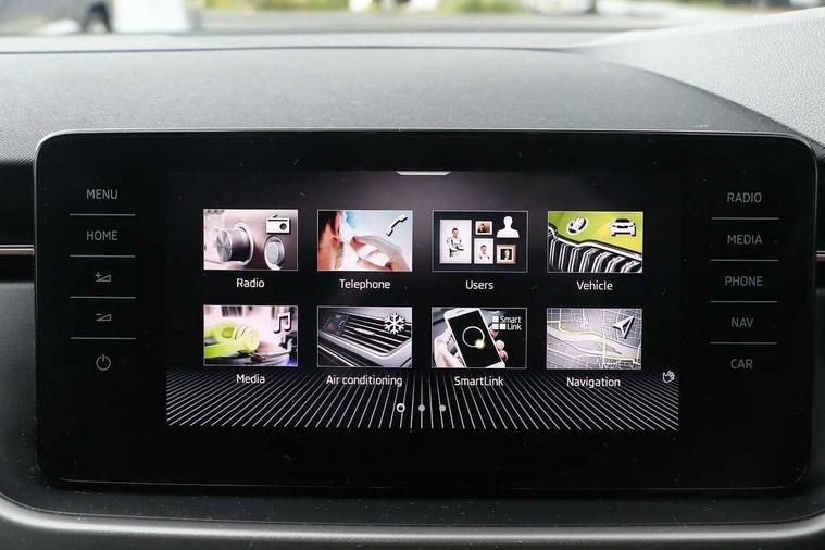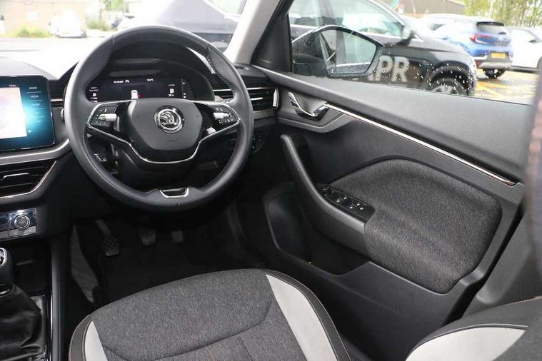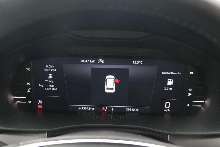Amundsen satellite navigation with 9.2" touchscreen display, voice control, virtual cockpit and web radio, Bluetooth system, E-call, Front assist system, Gesture control, PAS, Rear view camera, Service indicator, Speed limiter, Virtual cockpit with 10.25" display, Wireless SmartLink for apple car play, android auto and mirrorlink, 8 Speakers, Auxiliary input socket, DAB Digital radio, Auto dimming rear view mirror, Body colour bumpers, Body colour door mirrors and handles, Chrome grille surround, Electric folding door mirrors, Electrically adjustable and heated door mirrors, Front and rear electric windows, Headlight range control, Heated rear window, LED rear lights - low functionality, Light sensors, Privacy glass, Rear fog lights, Rear side wing doors, Rear wiper, 12V Accessory socket in centre console, 3 seat bench in 2nd row, Chrome inner door handles, Dual zone climate control, Front head restraints, Glove compartment with illumination, Ice scraper, Isofix child seat fittings on outer rear seats, ISOFIX on front passenger seat, Manual lumbar support for front seats, Rake/reach adjustable steering wheel, Reading lights, Single front passenger seat, Sun visors with illumination on front passenger, Textile floor mats, Third rear headrest, Top tether for front passenger seat, Umbrella in driver's door, 3x3 point rear seatbelts, Airbags - driver and front passenger, ESP, Front passenger airbag deactivation switch, Front side airbags with curtain airbags, Hill hold control, Manual parking brake, Manual rear child locks, One tone horn, Rear disc brakes, Seatbelt reminder for driver an co-driver, Traction control, Tyre pressure monitor, Anti-theft alarm system with interior monitoring, backup horn, towing protection and remote central locking with SAFE system, Anti-theft wheel bolts, Electronic engine immobilizer, Latice curved decorative insert on the dashboard with hot stamping in copper and white ambient lighting white,