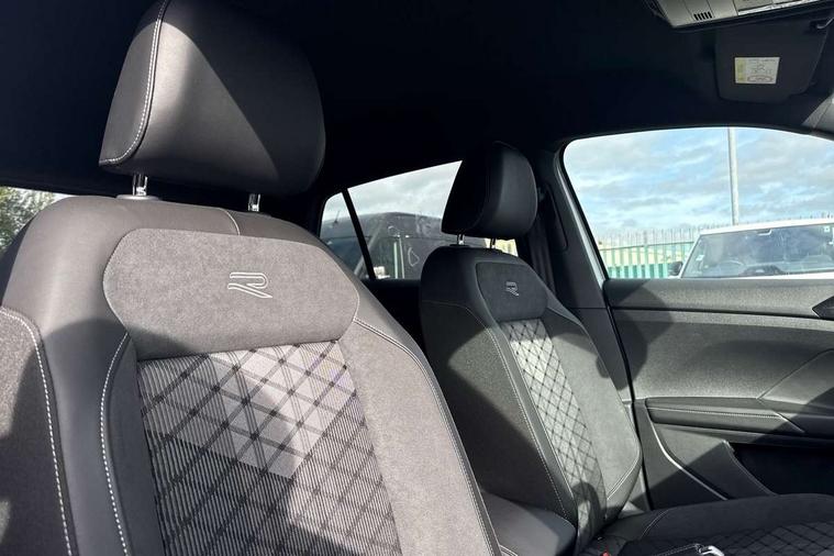 'Lights On' Reminder warning buzzer, 10.25" Digital cockpit pro, Advanced driver attention and drowsiness monitor, Car information display, Driver profile selection including ECO function, Dynamic road sign display, E-Sim card for online connectivity, eCall emergency call system, Front and rear parking sensors, Front assist, forward collision warning, autonomous emergency braking and speed limiter, Low washer fluid warning light, Mobile phone interface with inductive charging, Multifunction computer with visual gear change recommendation for fuel consumption, Multifunction front facing camera for distance control, Operating permit alteration, Power assisted steering, Predictive adaptive cruise control, Preparation for navigation system with media and internet package, Preparation for We connect and We connect plus, Semi-automated driving assistance, travel assist including lane keeping system Lane Assist and emergency assisst, Side assist, Speedo, rev counter, electronic odometer, trip, service interval display, exterior temperature and fuel gauge, Warning sound and light for doors and tailgate open, Warning sound and light for front seatbelts unfastened, Wireless Car net app connect with Apple CarPlay, combined functionality of Apple CarPlay/Android Auto and MirrorLink, Wireless charging, Misfuel prevention device, Start-stop system with battery regeneration (recuperation - energy recovery during braking), 2 USB C ports in front, 2 USB charging sockets on the centre console in the rear charging capacity upto 45W, Diversity antenna for FM reception, Music playback - MP3, WMA and AAC files, Radio, Advanced high beam control dynamic light assist, Automatic dimming interior rear view mirror, Automatic hazard lights activation under emergency braking, Automatic headlight control and coming home and leaving home feature, Black roof rails, Body colour door handles, Body coloured bumpers, Cornering light and poor weather light, Dynamic headlight range control, Electric folding door mirror, adjustable, heated with front passenger exterior mirror lowering function, Exterior mirror housings in black, Exterior mirrors convex on the left and aspherical on the right, Front and rear electric windows, Front door sill protectors with R-Line logo, Galvanised body, Heat insulating and laminated safety glass windshield, Heat insulating darkened glass in side and rear windows, Illuminated molding between headlamps, IQ.Light LED matrix headlamps with LED separate daytime running light, LED rear tail lights with dynamic turn signal, LED third brake light, Lower door sills and door pillars in black, Privacy glass for rear side windows and rear window, Rain sensor, Rear fog light on one side, reversing light on both sides, Rear side wing doors, Rear window aerial, Rear window wiper with intermittent control, Reflectors in all doors, Scuff plates, Tailgate with integrated roof spoiler, 12V Accessory socket in centre console, 2 Front and rear reading lights incorporating LED technology, 3 rear head restraints, 3 seat bench in 2nd row, 60/40 split folding rear seat backrest, Air care climatronic 2 zone air conditioning system, Ambient lighting and logo projection, Brushed stainless steel pedals, Chrome plated radiator grille inserts, air vent surrounds and light switch surrounds, Cloth upholstery, Comfort front sport seats, Door and side trim panel, Driver and front passenger sunvisor with vanity mirror, Dust and pollen filter, Front + rear carpet mats, Front centre armrest, Front centre armrest with storage compartment, Front footwell illumination, Front seat back storage pockets, Glove compartment door with light, Heated front seats, Heating and fresh air system with 4 stage blower, Height/reach adjust steering wheel, Instrument lighting white adjustable panel illumination, Interior light with switch off delay and dimmer, Isofix anchors for child seats on outer rear seats and front passenger seats, Leather gearshift handle, Leather wrapped multifunction steering wheel with paddle shift, Luggage compartment floor, Luggage compartment lighting, Manual front seats with height adjustment, Padded dashboard, Removable luggage compartment cover, Single front passenger seat, Storage compartment in drivers and front passengers door, Titanium black roof lining, Unsplit sliding rear seat bench, Without drawers under front seats, 3 point outer rear seat belts with ECE label, 3 Point seatbelt for centre rear seat, Anti-lock Braking System (ABS) with Hydraulic Brake Assist (HBA), Automatic post collision braking system, Disc brakes in front, Disc brakes in rear, Driver and front passenger safety-optimised head restraints, Drivers and Front Passengers airbags with front passengers airbag deactivation switch, ESC with EDL and ASR (traction control), Extended and predictive pedestrian/cyclist protection, Front and rear passenger curtain airbag system including front side airbags, Height adjustable front 3 point seatbelts + pretensioners, Hill start assist, Pre crash preventive occupant protection, Proactive passenger protection system in combination with front assist, Rear door child safety locks, Rigid safety cell with front and rear crumple zones, Single tone horn, Tyre pressure loss indicator, Volkswagen roadside assistance, Alarm with interior protection, Anti theft alarm system, Anti theft wheel bolts, Electronic engine immobiliser, Remote tailgate unlocking using key fob, Black decorative trims, Titanium Black Decorative inserts - R Line, 18" York alloy wheels in black, Low rolling resistance tyres,