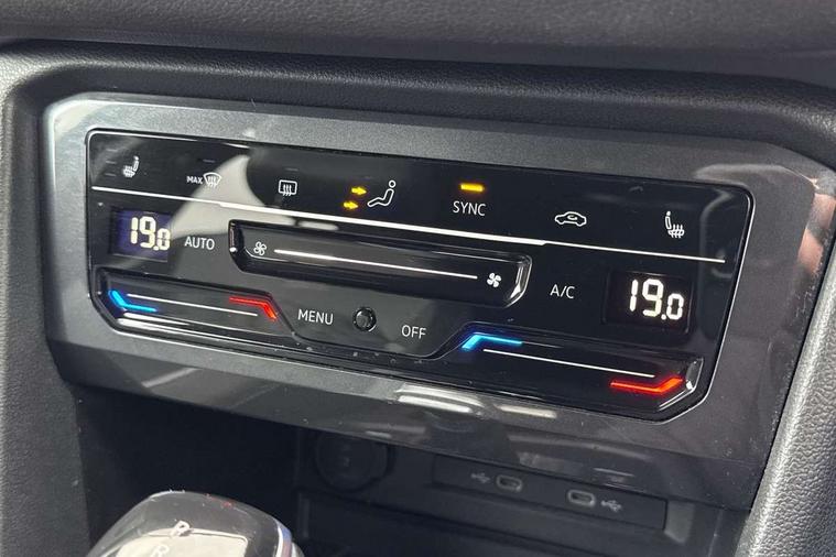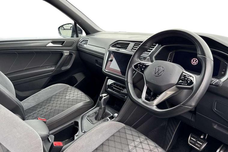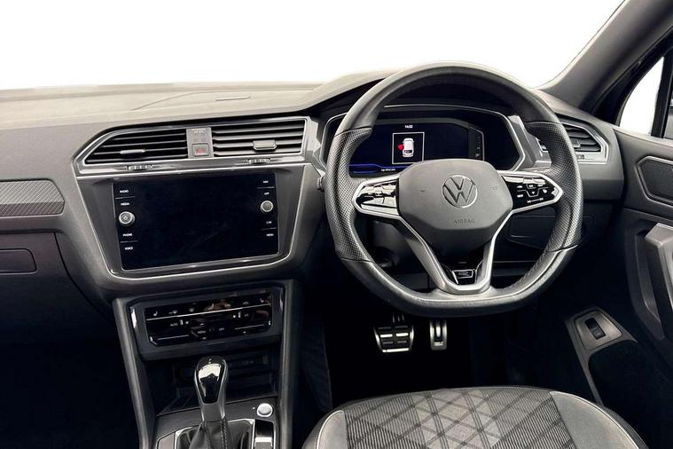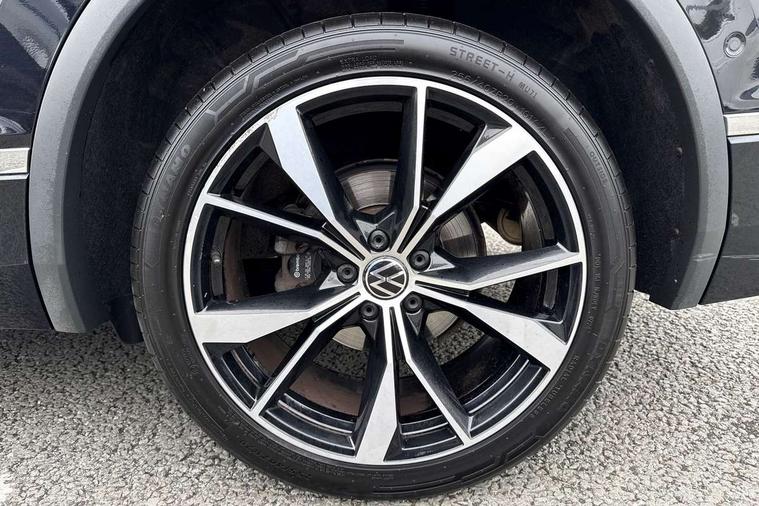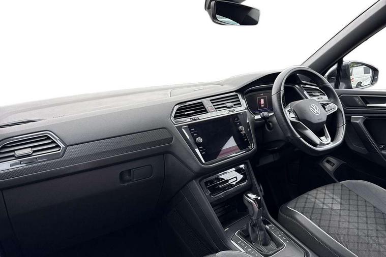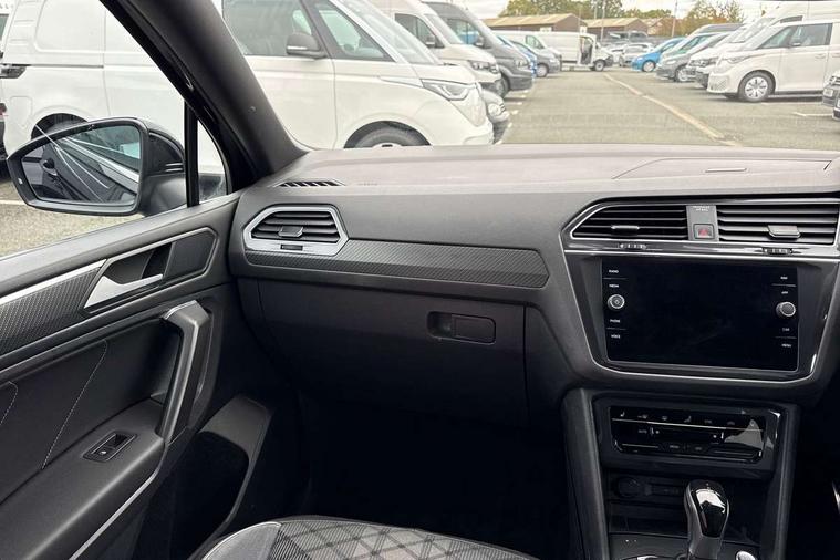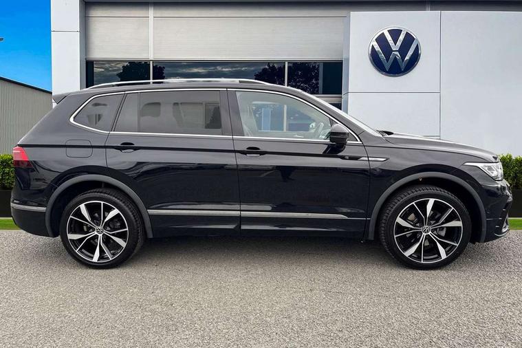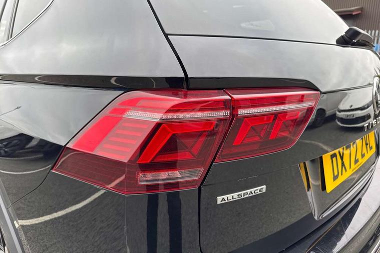 Adaptive cruise control, App-Connect, Digital cockpit pro, Driver alert system, Driver profile selection, Dynamic road sign display, eCall emergency call service, Electric boot lid, Lane change system side assist and rear traffic alert, Lane keeping system Lane Assist, Mobile phone interface comfort with inductive charging feature, Multifunction front facing camera, Progressive steering, Speedo and rev counter, electronic odometer, trip, service interval display and exterior temperature gauge, Front wheel drive, Start-stop system with battery regeneration (recuperation - energy recovery during braking), 2 USB-C ports in the front, 1 USB-C charging socket on the center console in the rear, 8 Speakers, DAB Digital radio, Diversity antenna for FM reception, Radio, Auto dimming interior rear view mirror, Automatic headlight control system, Chrome mouldings on side window, Coming/leaving home lighting function, Dark red rear combination lamps in LED technology, Exterior badge deletion, Exterior mirror housings painted in silver, Headlight range control, Heated windscreen washer jets, LED headlamps with LED separate signature running light and dynamic cornering light, Poor weather light and cornering light, Rain sensor, Rear fog light, Rear side wing doors, Rear spoiler in R style, Rear wiper, Silver roof rails, Third brake light, 12-volt outlet in centre console rear and luggage compartment, 12V socket in centre console, 3 head restraints in rear, 3 individual folding 2nd row seats, 3rd row 2 individual seats, Air Care Climatronic 3 zone automatic climate control with enhanced air filter and controls in the rear, Black roof lining, Door and side trim panel with leatherette insert, Drawers under front seats, Driver and front passenger seat height adjustment, Foldable front passenger seat backrest, Front + rear carpet mats, Front centre armrest, Front footwell illumination, Heated front seats, Heated leather wrapped multifunction sports steering wheel with touch control and shift paddles, Illuminated scuff plates, ISOFIX anchorage points for mounting 2 child seats on rear seats and i-Size child seats, Leather gearshift handle, LED interior light with switch off delay/dimmer and 2 front/rear LED reading lights, Stainless steel pedals, Sun visors with illuminated vanity mirrors, Ambience pack - Tiguan Allspace R Line, Driver assistance plus package - Tiguan Allspace, 3 point seat belt for centre rear seat, 3 rear three point seatbelts, ABS+EBD+Brake assist, Driver and front passenger safety-optimised head restraints, Driver's and front passenger's airbag with front passenger's airbag deactivation switch, Electronic parking brake, Electronic Stability Control (ESC) inc EDL (Electronic Differential Lock) and ASR (Traction Control), Height adjustable front 3 point seatbelts + pretensioners, Manual rear child locks, Pedestrian monitoring, PreCrash preventive occupant protection Front and rear, Rear disc brakes, Side airbag in front and rear with curtain airbag, Two tone horn, Warning buzzer for seatbelts if unfastened, Anti theft alarm system with interior monitoring, backup horn and towing protection, Anti-theft wheel bolts, Electronic steering lock, Remote central locking with 2 remote folding keys,