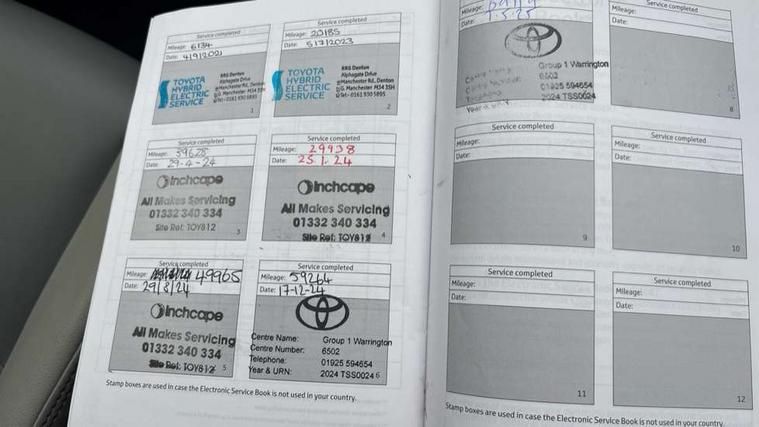 7" TFT multi information display, Analog tachometer, Apple car play and Android auto, Blind spot monitoring with rear cross traffic alert, Bluetooth system, Cyclist Detection, Drive mode selector, eCall emergency call system, ECO-driving indicator, Electric power steering, EV audible alert, Front parking sensors, Full range intelligent adaptive cruise control, Hybrid system indicator, Lane departure warning system, Lane trace assist, Lights on warning, Low screen washer fluid warning, Memory on adjustable speed limiter, My T Connected services, Night Time Pedestrian Detection, Power boot opening and closing, Push button start, Rear parking camera, Rear parking sensors, Remote boot door release in cabin, Remote boot door release in key, Road sign assist - RSA, Touch 2 Go navigation system including 3D maps and voice control, Traffic sign recognition, Trip computer, Voice control system, Vehicle Stability Control (VSC), 6 speakers, 8" Multimedia display touch screen, Auxiliary socket for external MP3 player, DAB audio, Toyota touch media system, USB connection, Adaptive automatic high beam, Automatic headlamp levelling, Automatic headlights, Automatic wipers, Automatically retractable door mirrors, Black roof rails, Body colour door handles, Body colour door mirrors, Body colour rear spoiler, Body colour roof, Body coloured bumpers, Body coloured Shark-fin antenna, Door mirror puddle lights, Dual exhaust pipes, Electric adjustable door mirrors, Electrochromatic rear view mirror, Emergency brake-light signal (EBS), Follow me home headlights, Front fog lights, Front wiper de-icer, Headlight cleaners, Heated door mirrors, LED daytime running lights, LED High mounted stop lamp, LED rear combination lights, Meshed upper front grille, Power front windows, Power rear windows, Privacy glass, Projector LED headlights, Rear screen wiper - intermittent, Rear windscreen defogger, Silver front under-run, Silver rear under-run, Trailer Sway Control, Turning signal integrated indicators in door mirrors, 3 rear headrests, 60/40 split fold rear seat back, Boot light, Clean air filter, Driver and front passenger personal light, Driver and front passenger Whiplash Injury Lessening seats, Driver and passenger sunvisors with illuminated vanity mirrors, Driver seat memory function, Dual sided deck board in boot, Dual zone automatic air conditioning, Floor mats, Folding rear centre armrest, Front and rear bottle holders, Front centre armrest, Front footwell lights, Front headrests, Front seat and rear pockets, Front/rear roof mounted assist grips, Grey roof lining, Heated driver and front passenger seats, Heated steering wheel, Illuminated entry system, Isofix child seat preparation, Leather gear shift with chrome surround, Leather upholstery, Light blue ambient lighting on front cupholders and open tray, Manual telescopic and tilt 3-spoke leather steering wheel with Chrome insert, Manually reclining and sliding front passenger seat, Multimedia switches on steering wheel, Pollen filter, Power height-adjustable sliding reclining and lumbar support for driver seat, Rear coat hooks, Rear door armrests, Rear passenger air vents, Rear view display in display audio screen with dynamic guide lines, Reclining rear seats, Satin chrome interior door handles, Sunglasses holder, Telephone and voice recognition switches on steering wheel, 3x3 point rear seatbelts, ABS/EBD, Acoustic vehicle alerting system, Adjustable front driver and passenger seat belt extender, Brake assist function, Brake hold function, Child proof door locks, Collision mitigation braking system, Driver/Front Passenger airbags, Driver/front passenger side airbags, Drivers knee airbag, Electronic parking brake, Electronic Stability Programme (ESP), Front and rear curtain airbags, Front and rear seatbelt reminder, Front passenger airbag detector, Hill start assist, Passenger airbag cut-off device, Pedestrian detection, Pre collision system, Seatbelt pretensioners with load limiters, Toyota safety sense, Traction control, Tyre pressure warning, Glass-breaking alarm sensors, Immobiliser, Intrusion alarm, Light - on and Key in reminder, Motion sensor alarm, Remote central locking, Smart entry + Smart start, Speed sensitive auto door locking, Tilt detection sensors, Piano black centre console with silver insert, Soft-touch black lower dashboard, Soft-touch black upper dashboard with silver insert, 19" 5 spoke silver alloy wheels, Full size spare wheel,