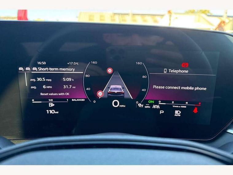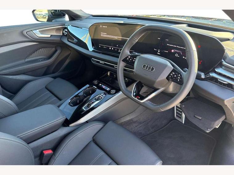 Adaptive cruise control, Advanced driver attention and fatigue montior, Audi application store, Audi assistant, Audi connect emergency call and service, Audi drive select, Audi smartphone interface, Audi virtual cockpit plus with 11.9" OLED colour display, Automatic start/stop system with coasting functionality, Camera based traffic sign recognition, Intersection assist, Lane departure warning, MMI navigation plus with high resolution 14.5" OLED touchscreen colour display, Park assist plus, Parking system plus with 360 display, Progressive steering with servotronic, Rear view camera, Swerve assist and turn assist, Traffic sign based speed limiter, Sports suspension lowered by 20mm, 2 USB-C ports in both the front and rear, Audi sound system impressive sound with 10 loudspeakers including centre speaker and subwoofer, 6-channel amplifier with a total output of 180 watts, DAB digital radio reception, Smartphone compartment with wireless charging, Aluminium window trims, Auto dimming rear view mirror, Body colour door mirrors, Door mirrors - electrically adjustable, heated, folding and auto dimming on both sides, Front and rear electric windows, Front door sill trims with aluminium inlays, illuminated with 'S' logo, High beam assist, LED headlights Plus incl. digital daytime running lights, turning light, all-weather light, motorway light, manouevring light and intersection light, LED rear lights pro incl. dynamic rear indicators and illuminated light strip with animated coming and leaving home function, LED third brake light, Privacy glass, Rear and side windows with heat insulating glass, Rear boot, Rear side wing doors, S Line badges on the front wings, S line bumpers, radiator grille and diffuser in phantom black and diffuser insert in matt anthracite, White rhombus logo projection light in exterior mirrors, Windscreen with acoustic glazing, 3 rear headrests, 3 seat rear bench, 3 spoke leather steering wheel with multi-function buttons with touch control, flattened on top and bottom, with S badging and contrast stitching, 3-zone automatic climate control, 40:20:40 split folding rear seat bench with centre armrest and cup holders, Comfort front centre armrest, Front and rear floor mats, Front seats with manual adjustment for position and 4-way electric lumbar support, Front sport seats with integrated headrest and S embossed logo, Headlining in black cloth, Heated front seats, i-Size child seat mounting on the front passenger side and outer rear seats, i-Size and top tether on the outer rear seats, Luggage compartment lid, electrically opening and closing, Manual steering column height and depth adjustment, Single front passenger seat, Stainless steel pedals and footrest, Steering wheel grips in perforated leather and shift paddles, Ambient lighting package plus - A5, 3x3 point rear seat belts, Driver airbag, Electric child safety locks, First aid kit with warning triangle and vests, Front emergency brake assist, Front passenger airbag, Front passenger airbag deactivation, Front side airbags with head airbag system and front interaction airbag, Hill hold assist, Seat belt monitoring with rear seat occupant reminder, Tyre pressure loss indicator, Anti theft alarm, Anti-theft wheel bolts, Keyless Go, Accent surfaces and control buttons in gloss black, Black dashboard with contrast stitching, Inlays in matt brushed aluminium with linear embossing, anthracite, Softwrap in leatherette with contrast stitching, Upper and lower interior elements in leatherette, Tyre repair kit,