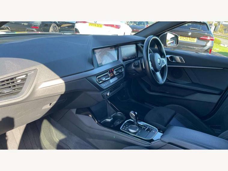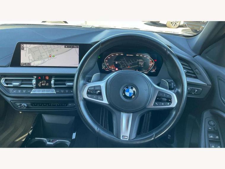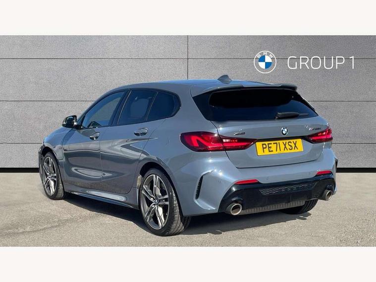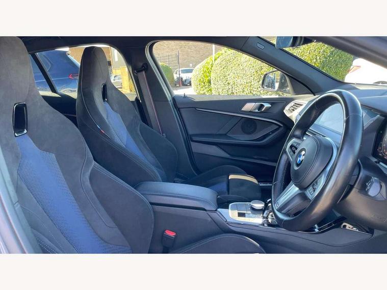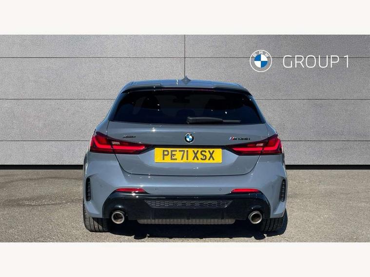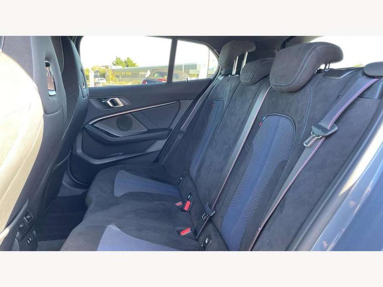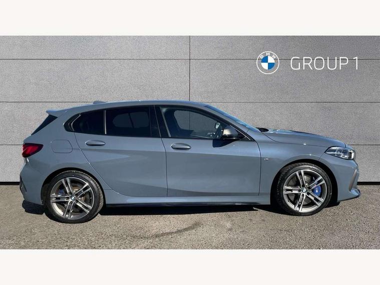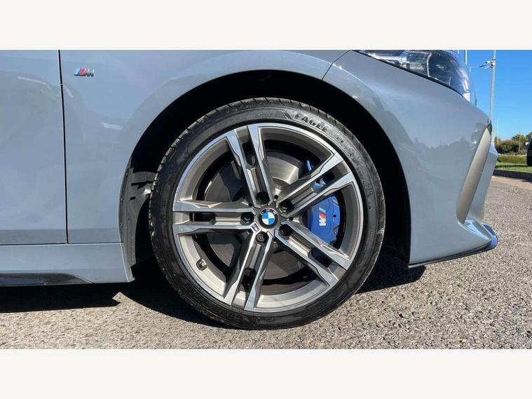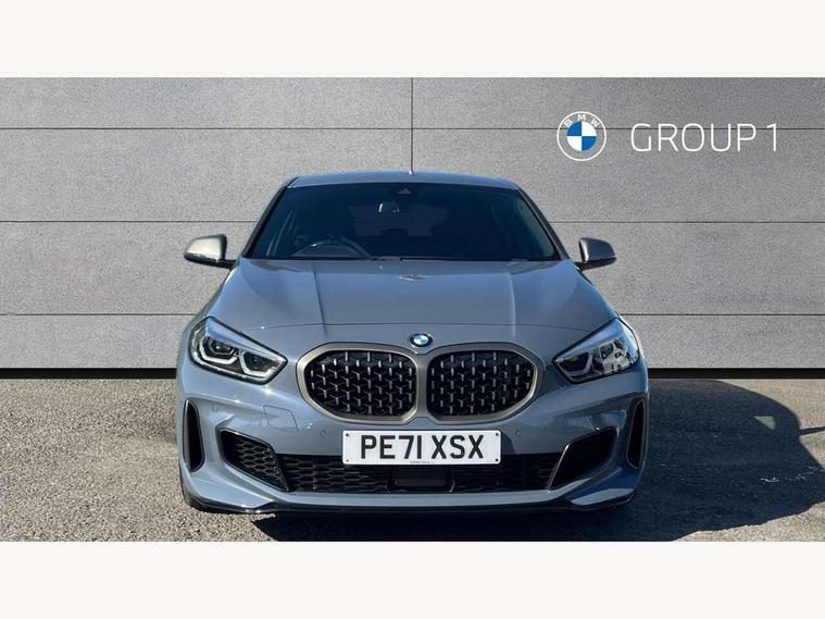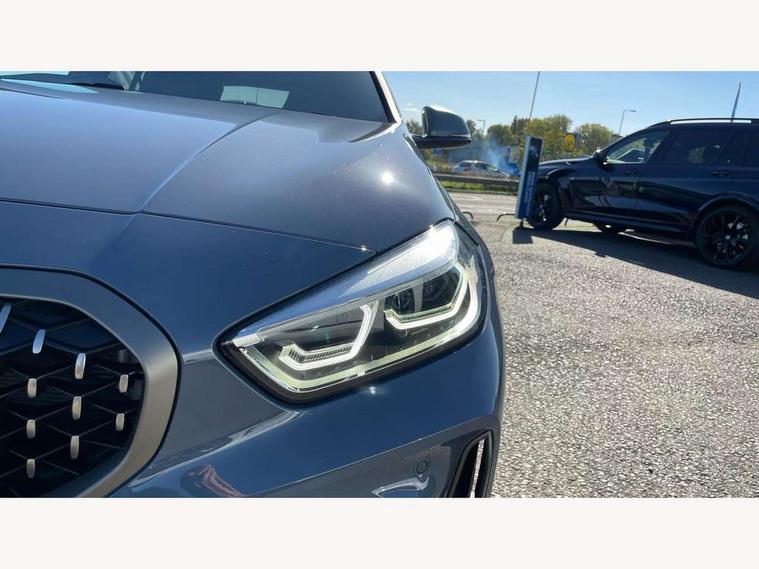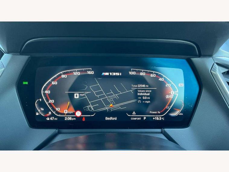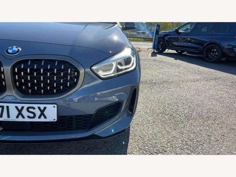 Active guard plus, Attentiveness assist, Bluetooth / WiFi interface for wireless connection of mobile terminal devices and audio streaming, BMW ConnectedDrive online services, BMW Teleservices, Check Control warning system for monitoring of lights and door/luggage compartment open warning, Eco pro mode, Electro hydraulically controlled multi-plate clutch transfers drive to rear axle and with power take-off device located on the front differential., Energy efficient operating strategy, Front axle single joint with specific axle kinematics to minimise drive influences on steering + provide increased rigidity agile driving behaviour, Gearshift time display in manual mode, Integrated owners handbook, M Sports steering with M135i xDrive specific settings, Oil sensor for level and grade, On board computer, Optimum shift indicator, Personal Profile, Pull away assistant, Rigidly mounted rear subframe - Multi link construction with separate spring / damper configuration and excellent driving characteristics, Speed limit Info including no-overtaking indicator, Speed limiter, Sporty fast gear shifting in sport mode, Aluminium lightweight construction, Anti roll bar front and rear, Balancer shaft, Double VANOS, Drive Performance Control, Eight speed sport automatic transmission with gearshift paddle switches, Electronic differential lock, Electronic selector lever, Engine cover with M performance designation, High precision injection, Larger fuel tank capacity (50 litres), Launch control, M135i specific heavily de-throttled engine intake air guide, M135i specific high-performance cooling package, M135i specific larger turbocharger with integrated divert-air valve, Petrol Particulate Filter, Twin tube gas filled shock absorbers with degressive characteristic curve, VALVETRONIC engine management, Variable, stepless and infinitely adjustable distribution of drive torque between the front and rear axles, xDrive intelligent all wheel drive with M135i specific reinforced components, DAB Digital radio, Stereo speaker system with 2 mid range speakers in the front door trims and rear parcel shelf + 2 central bass speakers underneath the front seats, Auto dimming rear view mirror, Automatic headlight beam throw control, Automatic windscreen wipers and automatic headlight, Body colour door handles, Body colour roof trims, Cerium grey exterior mirror caps, Direction indicator side lights in exterior mirrors, Exhaust tailpipe, Cerium Grey with bevelled finish - twin, round 100mm, left and right split, Fading support, Folding side mirrors with auto dimming/folding wing mirrors with auto dimming, Follow me home headlights, Front and rear bumper system with replaceable deformation elements, Front and rear electric windows with open and close fingertip control, anti trap facility and comfort closing, Front door sill finishers with M135i designation, Green tinted heat protection glazing, Heated, electrically adjustable exterior mirror aspheric on driver side, convex on passenger side, High gloss shadowline window frame, Recess cover mirror frames and B/C pillar embelisher trim, High level third brake light, Integrated front windscreen with washer jets, Kidney grille frame in Cerium Grey with Mesh design, LED daytime running lights, LED eyebrow turn indicators, LED front fog lights, Lightweight engineering, M logo designation side in cerium grey, M Performance exhaust system with valve control and minimised exhaust back pressure, M Performance specific setup, M Sport spoiler, Matt black air guide grilles, Matt black wheel arch trim, Model designation on electric bootlid includes xDrive designation for M135i xDrive, Nearside reverse light in rear light cluster, Preparation for high beam assistant, Rear fog lights, Rear window wiper, Reinforced crank drive, new pistons and adapted con rods, Shark fin antenna, Trailer stabilisation logic, Visible VIN plate, Welcome lighting, 12V power socket in front centre console with blanking plug, 3 rear seat head restraints, 3 spoke sports leather steering wheel with black leather and stitching, pearl chrome decorative finish, specific M Badge, Ambient interior lighting, Anthracite headlining, Child seat ISOFIX attachment for two outer rear seats and front passenger seat with anchorage points, Conditioned based service, Driver and front passenger seat heating, Floor mats in anthracite velour with contrasting colour seam to match contrast stitching on instrument panel, Folding rear clothes hook, Four grab handles integrated in roof lining, Front and rear door pockets with bottle holders, Front and rear side armrest integrated into door trim, Front armrest, Front M sports seats, Glove compartment, Height adjustable front head restraints, Luggage compartment for bag hooks on left and right, foldable luggage compartment liner and two lashing eyelets, Manual adjust steering wheel, Multi-function controls for steering wheel, Storage compartment in centre console, Sun visors with vanity mirrors and insert tab, Two front centre console cupholders, Two zone automatic air conditioning, Additional interior lighting pack - 1 Series M135i, Additional storage compartment pack with code 493 -1 series, BMW live cockpit professional pack- 1 Series, Connected pack professional - 1 Series, Interior lights pack - 1 Series, M Sport exterior styling aerodynamics pack - 1 Series 135i, 2 tone horn, 3 point seatbelts on all seats, front pyrotechnic belt tensioners, stopper and belt force limiters, rear coded belt buckles, Airbags - Front driver/passenger, front and rear curtain head protection, front side, manual deactivation of front passenger airbag, Anti lock braking system (ABS) with brake assist, BMW emergency call, Brake drying, Braking readiness, Child proof locking system in rear door, Comfort modes, Cornering brake control, Crash sensor activating central locking release, hazard warning lights, fuel cut off, interior lighting + activation of safety battery terminal clamp, Driver and front passenger