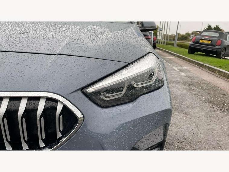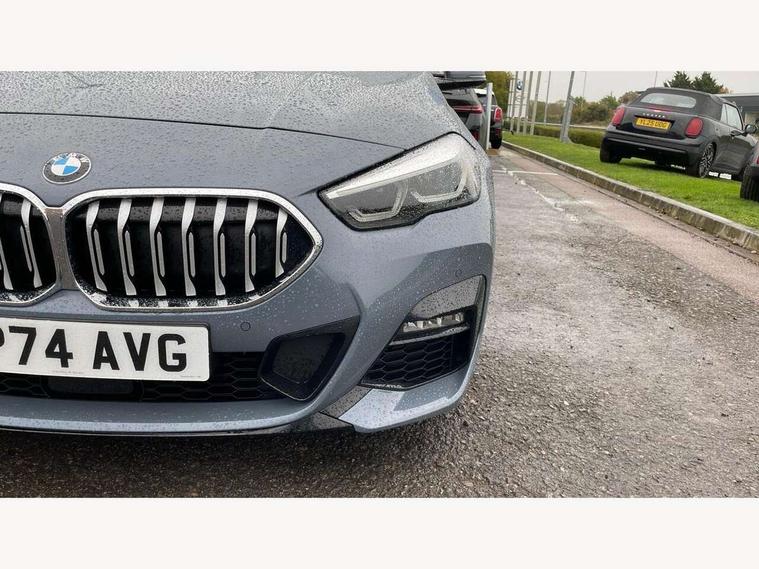 Active guard plus, Attentiveness assist, Auto start-stop, BMW ConnectedDrive online services, BMW Intelligent Personal Assistant, BMW Live Cockpit Professional with 10.25" high resolution instrument and control display, BMW Online services, BMW operating system with 7.0 mid interface, BMW Teleservices, Check Control warning system for monitoring of lights and door/luggage compartment open warning, Cruise control with braking function, iDrive controller with 7 short cut favourite buttons on centre console, Integrated navigation data with map data via USB +features such as 3D landmarks and micro city models, Integrated owners handbook, Intelligent voice assistant, Lane departure warning system, M Sports steering, On board computer - average speed+fuel consumption, service interval, clock/date, odometer/trip meter, outside temperature display and ice warning, Optimum shift indicator, Personal Profile, Pull away assistant, Speed limiting function, Aluminium lightweight construction, Balancer shaft, Double VANOS, Drive performance control with ECO PRO comfort + sport mode, Dual clutch automatic transmission, Electronic differential lock, High precision injection, M Sport suspension with stiffer spring/damper set-up and vehicle lowered by 10mm + twin tube gasfilled shock absorbers and Anti roll bars, Performance Control, Petrol Particulate Filter, VALVETRONIC engine management, 2x USB Type C ports (for charging and data transfer), 4G LTE Connectivity with hard wied 4G network sim card, DAB digital radio, MP3 players and RDS double tuner, Auto wipers, Automatically dimming rear view mirror, Body colour door handles, Body colour mirror caps, Chrome 'M' logo side designation, Chrome exhaust single tailpipe, round, Direction indicator side lights integrated exterior mirrors, Electric windows - front and rear, with open/close fingertip control and trap release, Exterior mirrors - electrically folding with anti-dazzle, Fading support, Follow me home headlights, Front and rear bumper system with replaceable deformation elements, Front door sill finishers in black plastic with M designation in metallic look, Heated, electrically adjustable exterior mirror aspheric on driver side, convex on passenger side, High gloss black B pillar finish, High gloss shadow line exterior trim, High level third brake light, LED daytime running lights, LED front fog lights, Lightweight engineering, Model designation on right side of tailgate, Preparation for high beam assistant, Rain sensor with automatic headlight activation, Rear boot, Rear fog lights, Rear side wing doors, Reversing light in rear light cluster, Welcome lighting, 12V power socket in centre console, 2 cupholders in front centre console, 3 rear seat head restraints, 3 rear seats, 3 spoke M sports design leather steering wheel finished in nappa leather with specific M badge, Anthracite finished floor mats with contrasting surround, Anthracite headlining, Automatic two zone climate control air conditioning, Child seat ISOFIX attachment for two outer rear seats and front passenger seat with anchorage points, Conditioned based service, Driver and front passenger seat heating, Front and rear door pockets including bottle trays, Front and rear side armrests integrated into door trim, Front armrest foldable with integrated storage compartment, Front centre interior light over interior mirror and rear centre automatic interior light when door is opened/ignition switched off or via remote key, Front head restraints, Front passenger seat, Front sports seats with electric side bolster adjustment, Glove compartment, Luggage compartment lighting, Manually adjustment steering wheel column, Multi-function controls for steering wheel, Sun visors with vanity mirrors and insert tab, Through loading system with 40/20/40 split folding rear seat, Two lashing eyes, Additional interior lighting pack - 2 Series Gran Coupe, Connected pack professional - 2 Series Gran Coupe, Extended storage pack - 2 Series Gran Coupe, M Sport exterior styling aerodynamics pack - 2 Series Gran Coupe, 2 tone horn, Airbag - Front driver and passenger, front and rear head, front side, curtain head protection, manual deactivation of front passenger airbag possible, Anti lock braking system (ABS) with cornering brake control, BMW emergency call, Brake drying, Braking readiness, City braking function, Crash sensor activating of airbags, Unlocking doors, hazard warning lights, fuel cut off, interior lighting+activation of safety battery terminal clamp, Dynamic stability control + (DSC+), Dynamic Traction Control - DTC, Electrically operated hand brake, Rear brake discs, Rear child proof door locks, Seat belt security check for driver and front passenger, Seatbelt warning, Side impact protection, Three point seat belts on all seats including front belt stopper, pyrotechnic belt tensioners and belt force limiters, Trailer stability control, Tyre pressure monitoring system, Ventilated front disc brakes, Warning triangle and first aid kit, Central locking switch for all doors, fuel filler cap and luggage compartment, Deadlocking function system to all doors, Drive away locking system on all doors and luggage compartment, Locking wheel bolts, Start/Stop button (illuminated) in centre console with keyless engine start and Auto Start-Stop deactivation button, Thatcham Cat.1 alarm and immobiliser, Two remote control key with integrated key - open/close doors/fuel flap/tailgate +1 button for unlock compartment with M design high gloss black inlay, Contrast stitching on instrument panel, 18" Burnished M double spoke bi-colour alloy wheels finished in orbit grey - style 819M, Reduced rolling resistance tyres,