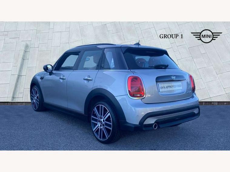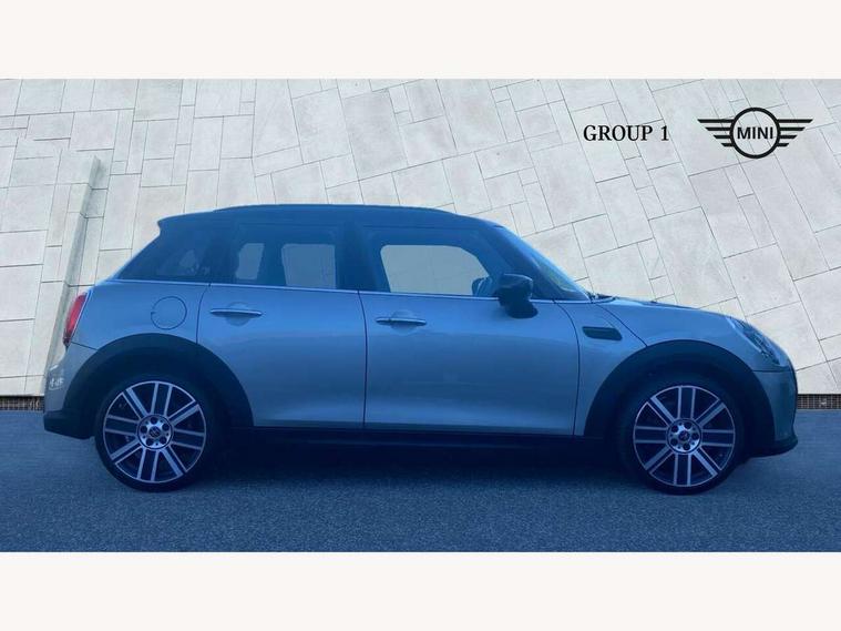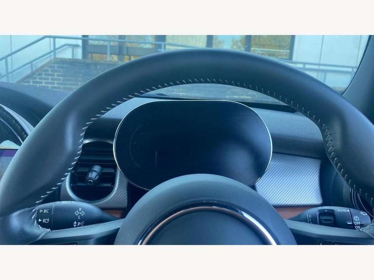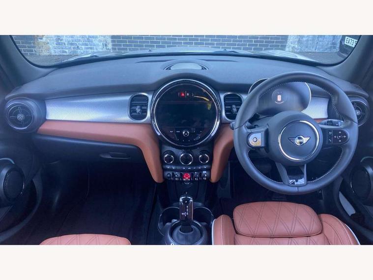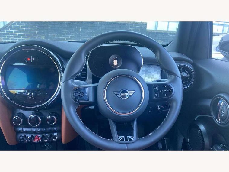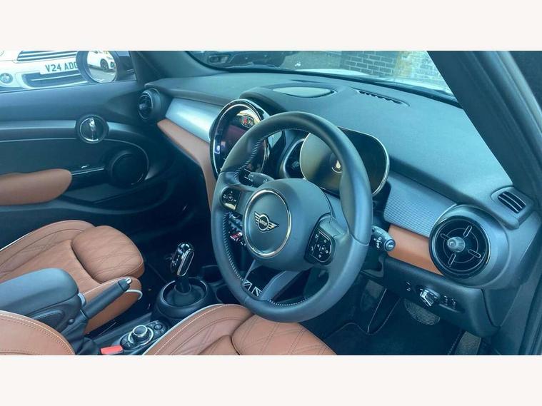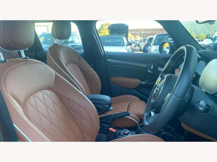 Apple CarPlay, Automatic start/stop function with brake energy recuperation, Compatible mobile phone bluetooth with audio streaming, Electro-mechanical speed dependant steering assistance, Flexible car sharing preparation, MINI Driving Modes - centre toggle switch to control driving setting (sport, mid and green), Mini E-call, MINI TeleServices, On board computer, Rear park distance control, Service interval indicator, Double Vanos system, Fully variable valve control, Gear change indicator display, High precision injection, Performance Control, Steptronic transmission with double clutch, 8.8" touchscreen with LED ring, FM tuner and DAB digital radio, 3rd brake light, Automatic headlight activation switch, Body colour fuel filler cap, Chrome line exterior - radiator grille bars, tailgate handle, lower front grille grating and rear central fog-light, Dynamic brake lights, Electric front+rear windows, Heated rear window, Heated windscreen washer jets, Metal door sill strips with MINI imprint, Model logo Cooper on right of tailgate, Rain sensor window wipers, Rear fog lights, Rear LED lights with union jack design, Rear side wing doors, Rear window wiper, Side scuttle panel with integrated indicator, Sun/heat protection glass, White indicator lenses, 12V Accessory socket in centre console, 3 seat bench in 2nd row, 4 lashing eyes in luggage compartment, 60/40 split folding rear seat, Anthracite headliner including grab handles and clothes hooks, Carbon black colour line - Knee roll and door armrest, Chrome interior highlights, Chrome line interior - air vents, gear lever base, door handles and speakers in doors, Cupholders, Front and rear head restraints, Front and rear isofix with front passenger airbag deactivation, Front and rear velour floor mats, Glove compartment, Height and length steering column adjustment, Interior lighting with 12 different colours across the dashboard, underneath door bezel with illuminated laser-engraved design on central display, Leatherette gearshift lever and handbrake gaiters, LED reading lights, vanity mirror lights, front foot well light and spotlight on front seats, Mechanical seat adjustment - forward/back & backrest for front seats and driver seat height adjust, MINI yours badge on exterior pillar, Multifunction steering wheel, Single front passenger seat, Storage compartments in doors, Sunvisors with vanity mirrors, Walknappa leather steering wheel with grey seam and MINI Yours badge on Piano Black lower steering wheel spoke, 3 point seatbelts on all five seats, 6 Airbags - front, side, head and seat belt tensioners, Anti-lock braking system (ABS), Child locks on rear doors, DSC - Dynamic Stability Control, Front and rear disc brakes, Hill start assist, Single tone fanfare horn, Tyre pressure monitoring system, Alarm system with tilt sensor, monitoring doors, bonnet interior and tailgate, Electronic vehicle immobiliser, Start/stop toggle with keyless go, Tool kit,