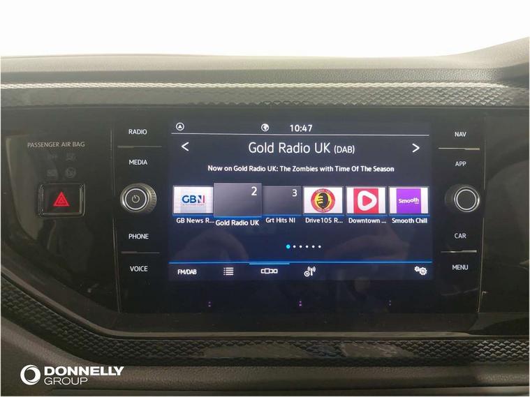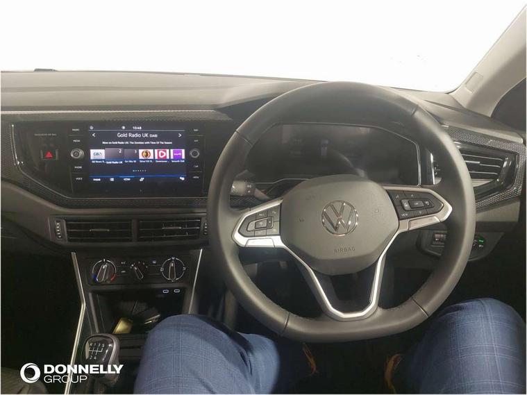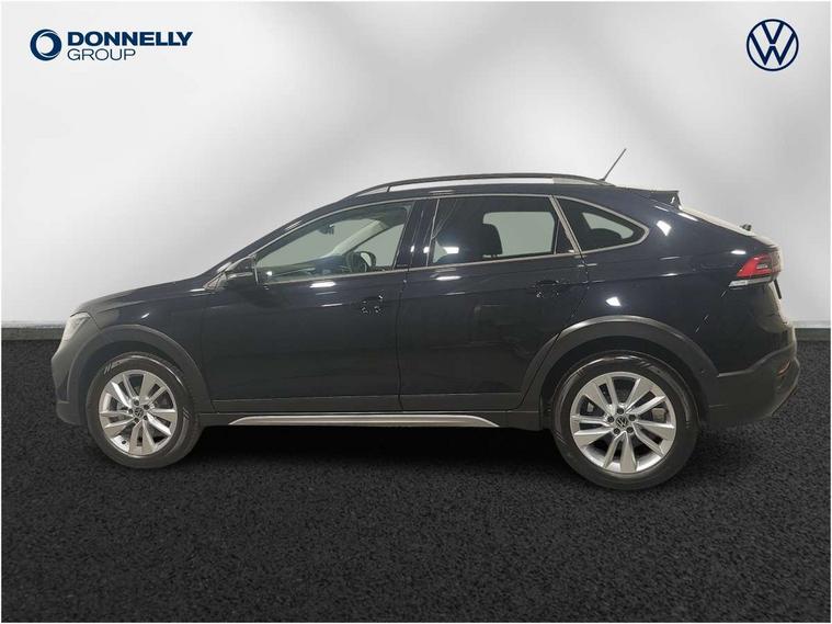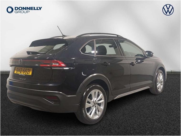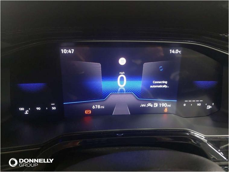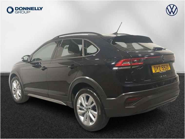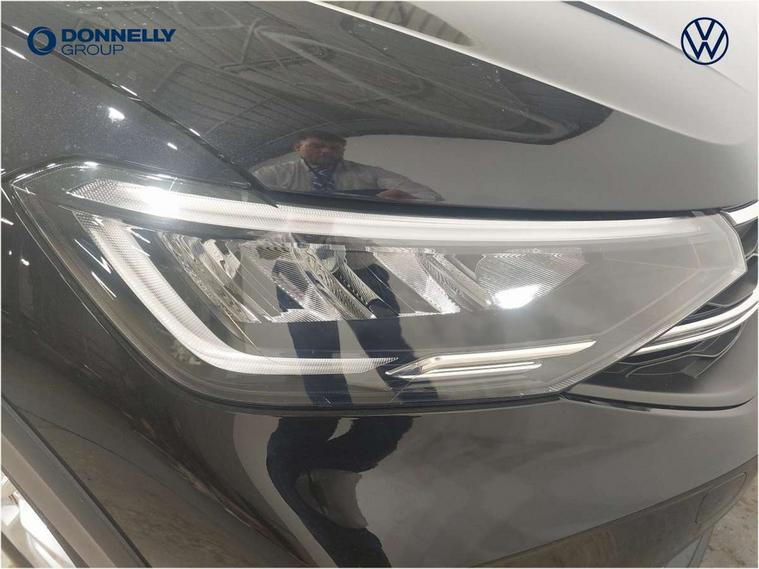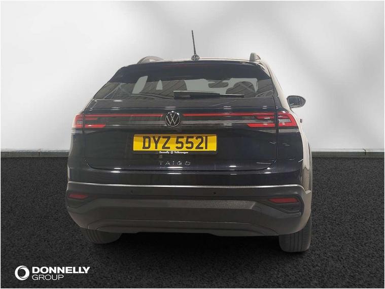 8" Digital cockpit basic display, Advanced driver attention and drowsiness monitor, Dynamic road sign display, e-Call (emergency call), Power Steering, Predictive adaptive cruise control, Rear view camera, Travel assist including emergency assist, Washer fluid level indicator, Wireless Charging including Bluetooth, Start-stop system with battery regeneration (recuperation - energy recovery during braking), Digital radio reception (DAB+), WeConnect plus, Ambient lighting with logo projection, Aspherical driver's exterior mirror, Body coloured bumpers, Body coloured exterior mirror housings and door handles, Electric windows, External USB type C socket and charging sockets, Heat insulating glass windscreen, LED rear combination lamp, LED third brake light, Left convex exterior mirror, Power folding adjustable/heated exterior mirrors and front passenger exterior mirror lowering function, Rear fog light on one side, reversing light on both sides, Rear side wing doors, Rear wash/wipe with intermittent wipe setting, Side windows in heat-insulating glass, from B-pillar and rear window dark tinted, 'Slash/ Austin' Cloth upholstery, 12V socket in centre console, 2 front reading lights, 3 rear head restraints, 3 seat bench in 2nd row, Black carpets, Ceramique headliner, Child seat anchor for child seat system i-Size, 2x top tether and child seat anchor in front on front passenger side, Door and side trim panels in titan black, Driver and front passenger seat height adjustment, Front centre armrest, Handbrake lever handle in leather, Height and reach adjustable steering wheel, Leather trimmed gear knob, Leather wrapped multifunction steering wheel, Luggage compartment floor, Luggage compartment light, Lumbar support for driver's and front passengers seat, Seat covers in titanium black, Single front passenger seat, Split folding backrest with centre armrest and unsplit rear seat bench, Storage compartment under front seats, Sun visors with illuminated vanity mirrors, Titanium black instrument panel, Chrome Package - Taigo, Drivers assistance package - Taigo, Light and sight pack - Taigo, 2 x 3-point seatbelts/outer rear seats with ECE label, 3-point seat belts in front with pretensioner and height adjustment, 3-point seatbelt for centre rear seat, Driver and front passenger airbag with front passenger airbag deactivation, Driver and front passenger safety-optimised head restraints, Electronic stability control, Extended and predictive pedestrian/ cyclist protection, Front and rear disc brakes, Front curtain and side airbags with center airbag, Hill start assist, Manual rear child locks, Single tone horn, Tyre pressure loss indicator, Anti-theft alarm system with interior monitoring, backup horn, and towing protection, Keyless locking and starting system keyless access with safelock, Black (slush) Dashboard, Lava stone black gloss/matt decorative inserts in dash and front door panels, Low rolling resistance tyres,