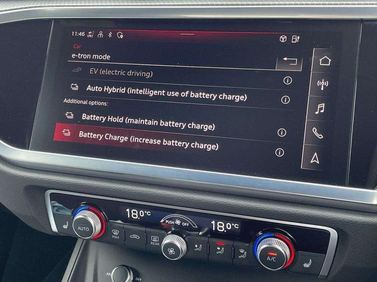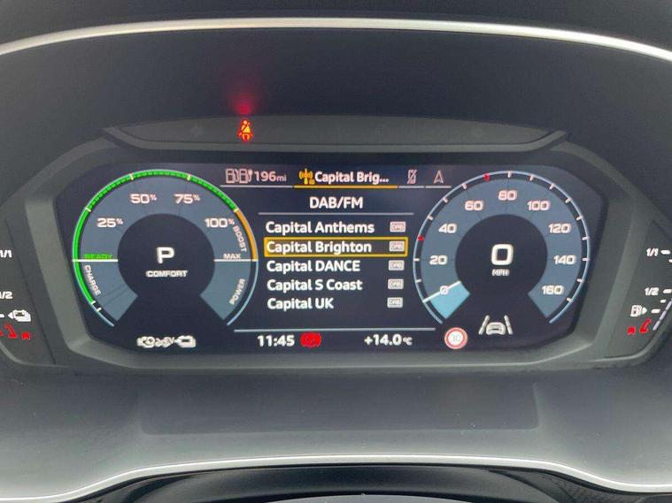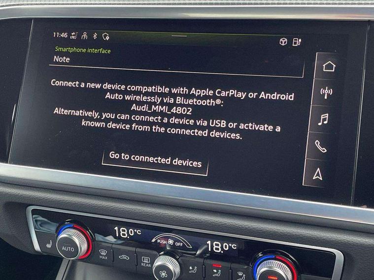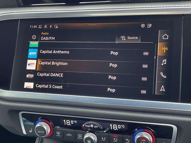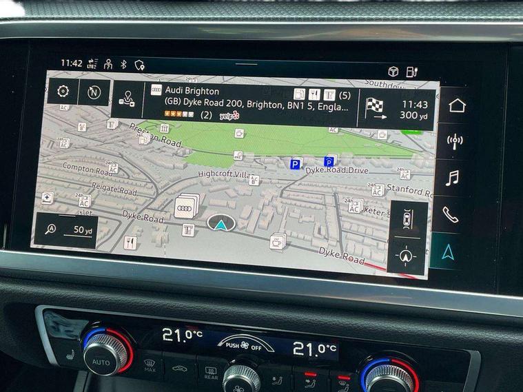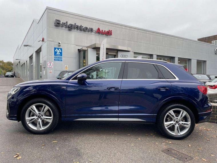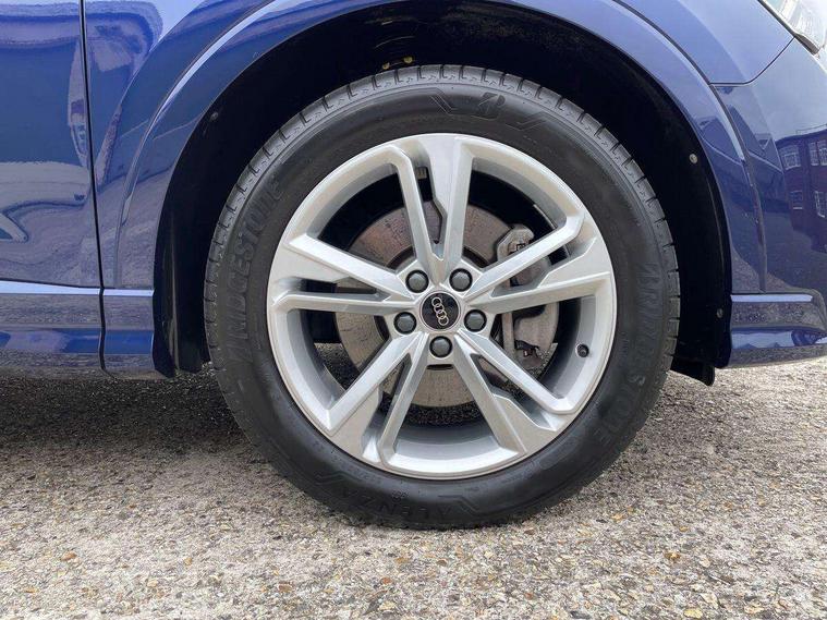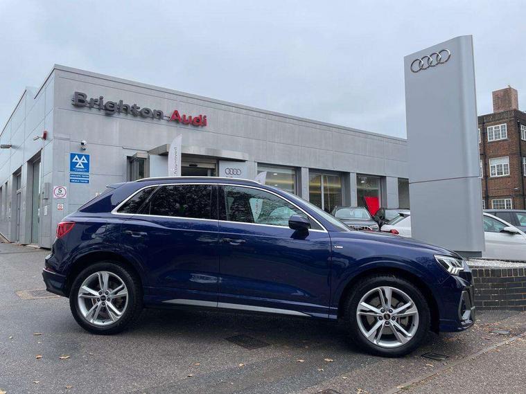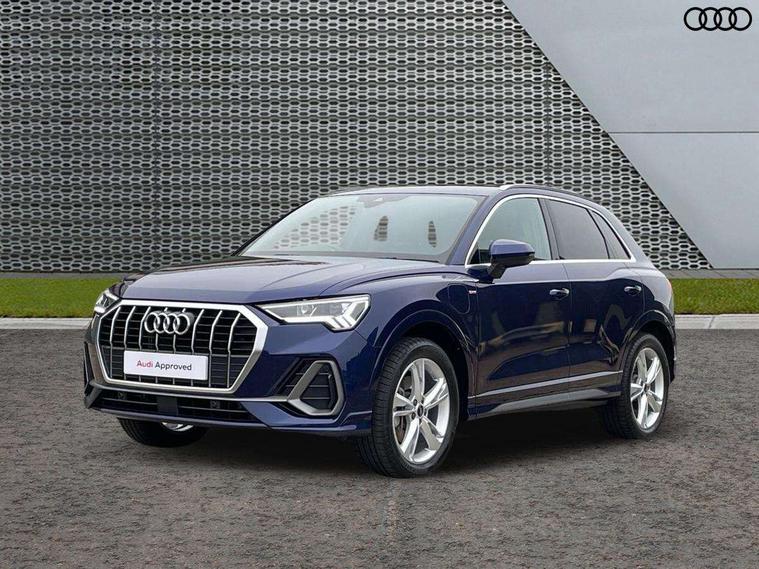 Amazon alexa Integration, Audi drive select, Audi lane departure warning, Audi Virtual Cockpit - 10.25" display, Bluetooth interface, Camera based traffic sign recognition, Legal emergency call, MMI Navigation Plus with high resolution 10.1 inch touchscreen colour display, Power operated tailgate, Progressive steering, Service interval indicator, Smartphone interface includes wireless Apple carplay/Android Auto, Start stop system with recuperation, Voice control system with natural language interaction, 3 pin 10 amp domestic charging cable, 3.6 kw On-board charger, Type 2 mode 3 32 amp charging cable, Type 2 socket for AC charging, 2 USB-C ports with charge and data functions, 6 passive loudspeakers, DAB digital radio module, Acoustic windscreen, Aluminium roof rails, Aluminium window trim, Anthracite black radiator grille, Auto dimming frameless rear view mirror, Body colour front spoiler blade, Body coloured bumpers, Electrically folding, adjustable and heated door mirrors with integrated LED side indicators and kerb view function for passenger side, Front and rear electric windows, Front fog lights, Front side air inlets in matt platinum grey, Grille vertical bars in aluminium silver/Matt, High gloss black finish B and C pillars, LED Dynamic rear indicators, LED headlights with LED daytime running lights, LED rear lights, LED third brake light, Privacy glass dark tinted rear and rear-side windows (from B-pillar backwards), Rain and light sensors, Rear diffuser grille in grained matt black, Rear diffuser strip in matt anthracite black, Rear side wing doors, Rear wiper, S line badges on front wings, S Line front and rear bumpers, Side skirt insert in matt Platinium grey, Variable front intermittent wipers, 12V socket in rear centre console, 3 seat bench in 2nd row, 3 spoke leather multifunction steering wheel features S badging and grips in perforated leather with contrast stitching, 40:20:40 folding with manual adjustment for 60:40 forwards/backwards position and backrest angle, Adjustable rear seat bench/backrest with centre armrest and cupholder, Black cloth headlining, Dual zone electronic climate control, Front and rear black floor mats with contrast stitching in rock grey, Front and rear headrests, Front and rear roof module including reading lights, Front centre armrest, Glove compartment lighting, Height and reach adjustable steering wheel, Illuminated door sill trims with S logo, ISOFIX child seat mounting for front passenger with airbag deactivation and outer rear seat including top tether attachment point for outer rear seats, Luggage compartment light, Manual front seats with height adjustment, Perforated leather gearknob, Single front passenger seat, Stainless steel luggage compartment sill finisher, Stainless steel pedals, Ambient lighting pack - Q3, Non smoking pack - Q3, 3x3 point rear seatbelts, 6 airbags - Driver, front passenger, curtain and side windows, Audi pre-sense front with pedestrain and cyclist recognition, Electrically operated child locks on rear doors, Electromechanical parking brake, Electronic stabilisation control including ABS, ASR and EDL, Front seatbelt reminder, Hill descent control, Hill hold assist, Pre sense basic, Seatbelt monitoring, Tyre pressure warning, Warning triangle and first aid kit, Anti theft alarm, Anti theft wheel bolts, Immobiliser, Remote central locking, Aluminium look interior elements, Dark matt brushed aluminium inlay, Detail dashboard around MMI touch colour display in glass look, black with surround in aluminium look, Leatherette door armrest, Tool kit, Tyre repair kit,