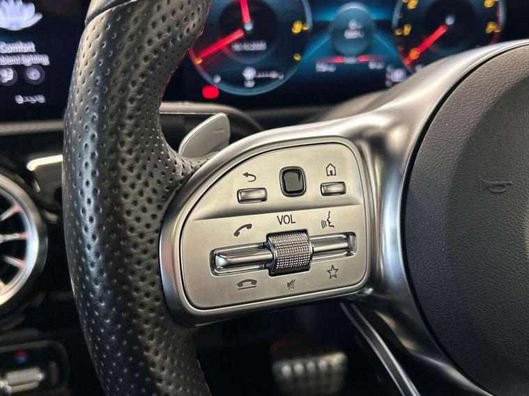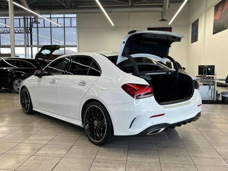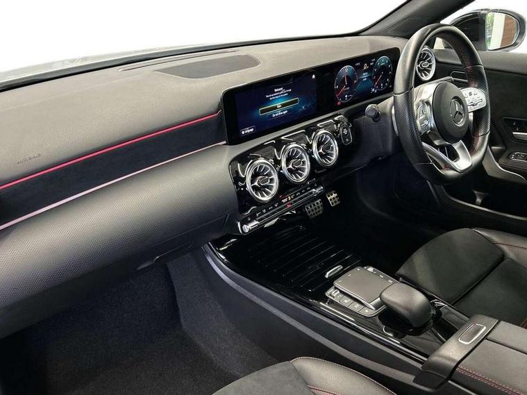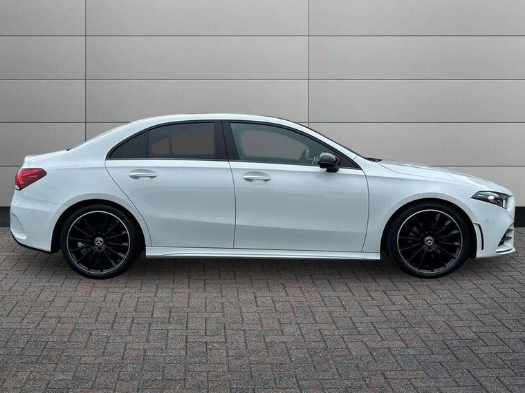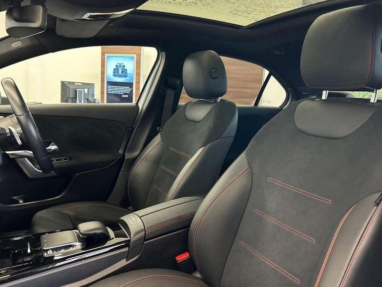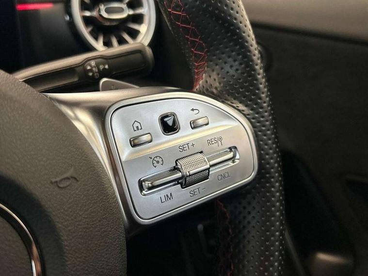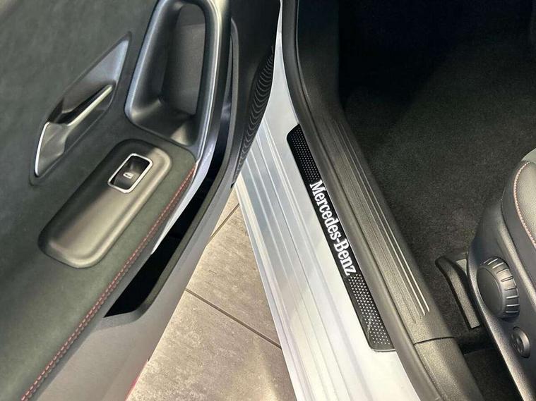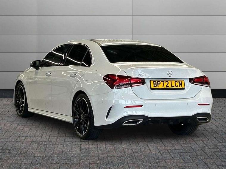 Ultrasonic sensors positioned in the front and rear bumpers, 10.25" Digital instrument cluster display screen, 10.25" media display, 180 degree rear view camera with parking guidelines, Active parking assist with visual and audible warning of detected obstacles, Attention assist, Brake pad wear indicator warning light, Car wash mode, Cruise control + speed limiter, Direct steering, Dual bluetooth interfaces, DYNAMIC SELECT with a choice of driving modes (ECO, Comfort, Sport and Individual), ECO start/stop function, Fluid level warning indicator for fuel, oil, coolant and washer fluid, Hard-disk navigation, Hey Mercedes Voice activation, Lamp failure indicator, Lane keeping system, Mercedes me connect including emergency call system, accident recovery, breakdown management and maintenance, Mercedes me remote services, Outside temperature gauge, Owners manual in English, Pre-installation for car sharing, Preinstallation for Mercedes Benz link, Service indicator (ASSYST), Smartphone integration with Apple CarPlay and Android auto, Speed limit assist, Speed sensitive power steering, Traffic sign assist, Trip computer, Lowered comfort suspension, Rear axle torsion beam, 2 USB ports (type C) in rear stowage compartment and one in front of center console, 6 speakers, DAB Digital radio, MBUX multimedia system with DAB digital radio and touchpad including satellite navigation, Mercedes-Benz sound system - 100W, 4 Electric Front and Rear windows, Adaptive brake lights, AMG bodystyling - Front apron with splitter in chrome, rear apron with chrome trim and chrome visible trim elements in tailpipe, Automatic headlights, Black weather strip, Body colour bumpers, Body colour door handles with chrome inserts, Body colour side skirt, Electric adjustable and heated door mirrors with integrated LED side indicators, Exclusive diamond radiator grille, Exhaust system - Twin visible tailpipes in polished stainless steel, Headlamp assist automatic headlamp activation, Heated glass rear windscreen + timer control, LED daytime running lights, LED tail lamp, Multibeam LED headlights with adaptive highbeam assist plus, Panoramic sliding sunroof, Privacy glass, Radio aerial, Rain sensing windscreen wipers with two sensitivity settings, Rear boot, Rear fog lights, Rear side wing doors, Third brake light featuring LED technology, 3 seat bench in 2nd row, 3 Spoke flat bottom leather multi function steering wheel with perforated leather in grip area, 40:20:40 split folding rear seats, Artico man-made leather/Microfibre Dinamica upholstery with red contrast stitching, Auto Mercedes-Benz child seat recognition sensor, Black air vents with surround in silver chrome, Black roof lining, Brushed stainless steel sports pedals with rubber studs, Controller on centre console with chrome surround, Floor mats with AMG lettering, Front centre armrest with storage compartment, Front seat backs luggage nets, Galvanished gear shift paddles on steering wheel, Heated front seats, Height/reach adjustable steering column, Illuminated Mercedes Benz lettering front door sills with changeable cover, Interior lighting - 64 colour Ambient lighting, Interior mirror with reading lamps in black and frameless, ISOFIX and top tether child seat fixing points in two outer rear seats, Rear armrest with 2 cupholders, Rear head restraints, Seat occupancy sensor for front passenger seat, Single front passenger seat, Sports seats with adjustable head restraints, Stowage compartment in centre console with retractable cover, Sunvisors with illuminated vanity mirrors, Touchpad on center console, Twin front cupholders, Two zone thermotronic luxury automatic climate control, Light and sight pack - A Class, Mirror package - A Class, Night pack - A Class Saloon/Hatchback, Seat comfort pack - A Class, 3 rear 3 point seatbelts, ABS with Brake Assist, Active bonnet, Active brake assist includes forward collision warning system with autonomous braking, Adaptive brake assist with hold function and hill start assist, Black seatbelts, Childproof locks manually operated for rear doors and electrically operated for rear power windows, Crash responsive emergency lighting, Driver and passenger head and side airbags, Drivers knee airbag, Dual stage driver/passenger airbags, Electronic parking brake, ESP curve dynamic assist, ESP with ASR, Front and rear seatbelt reminder, Front brake callipers with Mercedes Benz lettering, Tyre pressure monitoring system, Warning triangle and first aid kit, Window airbags, Alarm system/interior protection/immobiliser, Keyless entry lock/unlock, Keyless Go, Remote central locking and crash sensor with emergency opening function, Urban guard vehicle protection system with immobiliser and interior protection, Matrix look light longitudinal grain aluminium trim element, 19" multi spoke light alloy wheels painted in black with a high sheen rim flange, Summer tyres, Tirefit sealant kit,