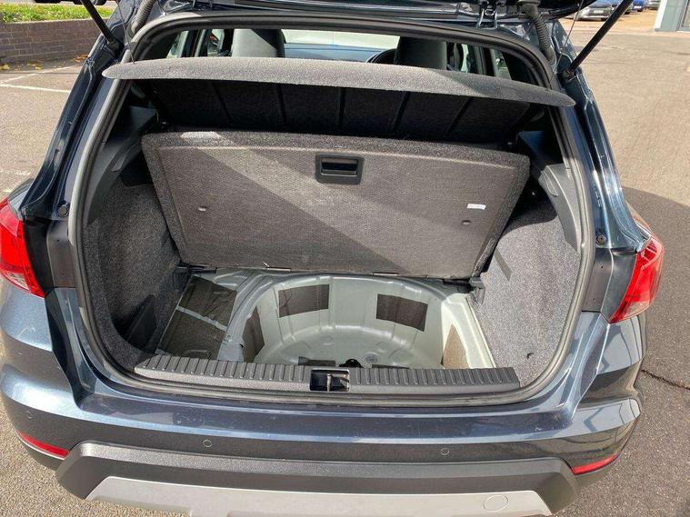 Interior chrome line trim, Connectivity pack plus - Arona, Storage pack - Arona, Winter pack - Arona, 18" Performance alloy wheels, 2 folding remote keys with window open/close function, Alarm with interior monitoring, Immobiliser, Keyless entry and start, Locking wheel bolts, Remote central locking + deadlocks, 6 speakers, Beats audio system, Bluetooth interface for hands free and audio streaming, DAB Digital radio, Steering wheel mounted audio controls, 3 point seatbelts on all rear seats, ABS+EBA, Child locks on rear doors, Driver/Front Passenger airbags, Electronic stability control, Front and rear seatbelt reminder, Front side/curtain airbags, Height adjustable active front headrests, Hill hold control + Tyre Pressure monitor, Multi-Collision braking, Passenger airbag deactivate switch, Tiredness recognition system, Traction control, Auto dimming interior mirror, Automatic activation of hazard warning lights, Automatic headlights, Body coloured bumpers, Body coloured door handle inserts, Chrome grille bars, Chrome grille surround, Chrome roof rails, Chrome window surround, Coming/leaving home lighting function, Electric front/rear windows with one touch/auto up/down, Electrically adjustable and heated door mirrors, Electrically folding wing mirrors, Front fog lights with static cornering function, Full LED headlights, LED daytime running lights, LED tail lights, Rain sensor windscreen wipers, Rear window wash/wipe, Roof colour door mirrors, 2 cupholders, 3 rear height adjustable headrests, 60/40 split folding rear seat, Ambient interior lighting, Cloth upholstery, Double boot floor, Driver and passenger sunvisors, Driver/front passenger seat height adjustment, Dual zone climate control, Dust/pollen filter, Footwell ambient lighting, Front courtesy lights, Front reading light, Front seat and rear pockets, Height/reach adjustable steering column, Illuminated boot, Isofix attachments on rear seats, Leather handbrake, Leather steering wheel and gear knob, Multi-colour ambient interior lighting, 'Lights On' Reminder warning buzzer, Adaptive cruise control, Blind spot monitor, Electric speed sensitive power steering, Front assistant collision mitigation, Front parking sensor, Outside temperature display, Park assist system, Rear cross traffic alert, Rear parking sensor, Rear view camera, SEAT Drive profile, Trip computer, Comfort suspension,