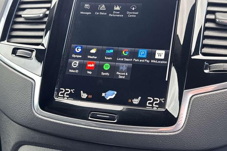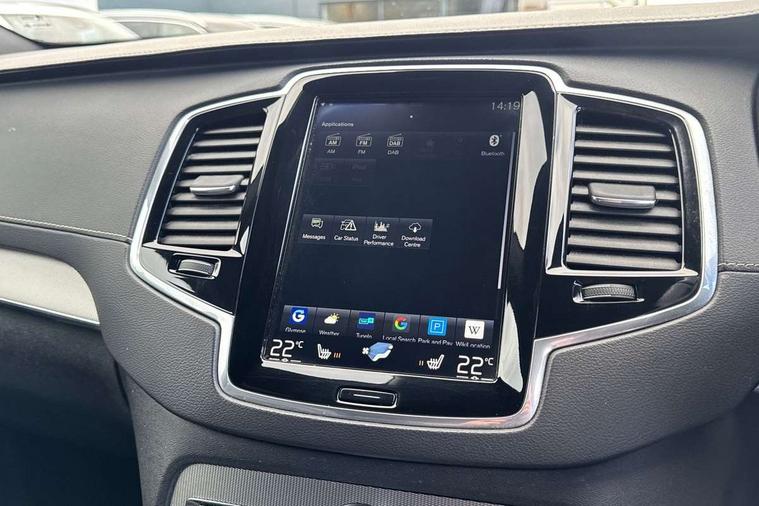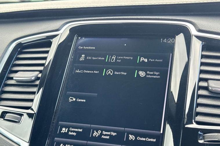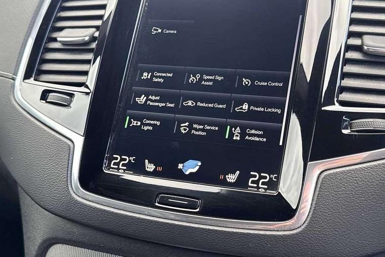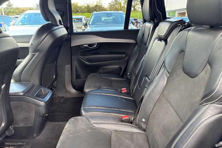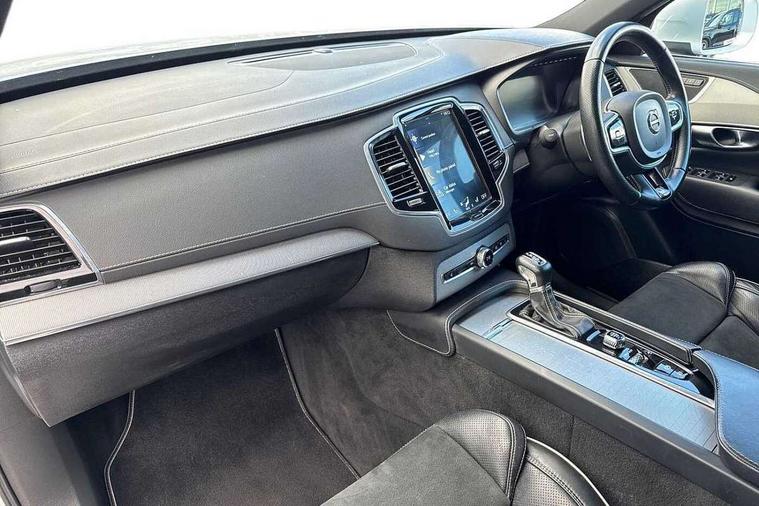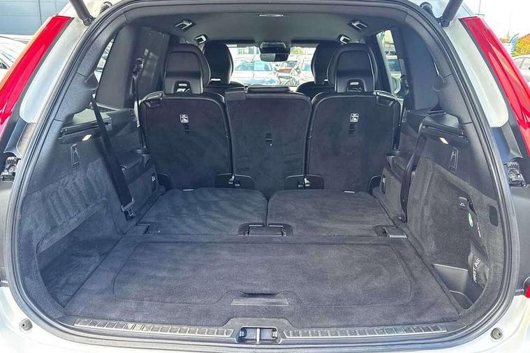 Tailored Instrument Panel and Door Tops with Contrast Stitching, Tempa spare wheel and jack, Anti-theft alarm including immobiliser/volume sensor + level sensor, Deadlocking system, Keyless drive, Keyless Start, Locking wheel nuts, Private locking, Remote central locking - doors and fuel cap, DAB Digital radio, Steering wheel remote infotainment controls, 7 three point seatbelts, ABS/EBD, City safety braking system, Drivers knee airbag, Dual stage driver/passenger airbags, EBA, Electronic parking brake with auto hold, Front and rear curtain airbags, Front seat side impact airbags, Front seats SIPS airbags, Hill start assist, Inflatable curtain, Passenger airbag cut-off device, Pedestrian and Cyclist Detection, Road sign information display, Run off Road Mitigation, Run off Road Protection, Seatbelt pre-tensioners, Seatbelt warning, SIPS (Side Impact Protection System), Stability and Traction Control with Spin control, Engine Drag Control and Corner Traction Control, Tyre pressure monitoring system, Warning triangle and first aid kit, WHIPS whiplash protection system - front, Adaptive brake lights, Auto dimming exterior mirrors, Auto dimming interior mirror, Body colour bumpers, Cornering light, Dark tinted windows for rear side windows and cargo area, Day running lights, Dual integrated exhaust pipes with high gloss black surround, Electric adjustable/heated/folding door mirrors, Front and rear electric windows, Headlamp levelling, High beam assist, High gloss black lower front bumper, High gloss black mesh grille, High level LED brake light, Home safe and approach lighting, Illuminated side steps, LED front fog lights, LED Headlights, Matt silver finish door mirrors, Puddle lights, Rain sensor windscreen wipers, Rear wash/wipe with intermittent wipe setting, Roof antenna, Roof spoiler, Silk metal grille surround, Silk metal window trim, Silver roof rails, Visible VIN plate, 12V power point in luggage area, 12V socket in rear tunnel console, 2 individual folding 3rd row seats, 2nd Row centre armrest with storage and cupholders, 3 individual folding 2nd row seats, A-pillar parking ticket holder, Ambient lighting in door panels, B Pillar ventilation, Bright metal luggage threshold, Centre armrest storage illumination, Centre console cupholders, Centre console storage box, Drivers side dashboard storage, Electric front cushion extensions, Electric memory driver's seat + door mirror memory, Front footwell illumination, Front headrests, Front/rear reading lights, Gearshift paddles, Grocery bag holder, Heated front seats, Height/reach adjustable steering column, Illuminated front and rear tread plates, Illuminated front cupholder, Illuminated front/rear door pockets, Illuminated glovebox with lock, Illuminated luggage compartment, Illuminated tailgate, Illuminated vanity mirrors + ticket holder, Instrument panel illumination control, Integrated sun curtains in rear doors, Isofix rear child seat preparation in 2nd row, Load cover, Multi directional lumbar support, Multicolour theatre lights, Outboard armrest with cupholder and storage for 3rd row, Passenger seat electric height adjuster, Perforated leather gearknob, Perforated Leather Key Integrated Remote, Perforated leather steering wheel, Pollen filter, Power passenger seat with memory, Rear footwell illumination, Rear headrests, Sports floor mats, Sports pedals, Steering wheel audio controls, Underfloor stowage compartment, 12.3" Active TFT crystal driver's instrument display, 9" centre console touch screen, Adaptive cruise control with pilot assist, Bluetooth hands free telephone connection, Distance alert system, Drive mode settings, adjustable steering wheel force + hill descent control, Forward collision warning, Handsfree power boot opening and closing, Lane departure warning with driver alert control, Oncoming Lane Mitigation, Power tailgate, Service interval indicator, Speed dependant power steering system, Speed limiter, Touch screen centre multi info display, Trip computer, Voice control system, Volvo on call, Wireless internet connection, 8 speed automatic transmission with start/stop + manual change functions, Touring chassis,