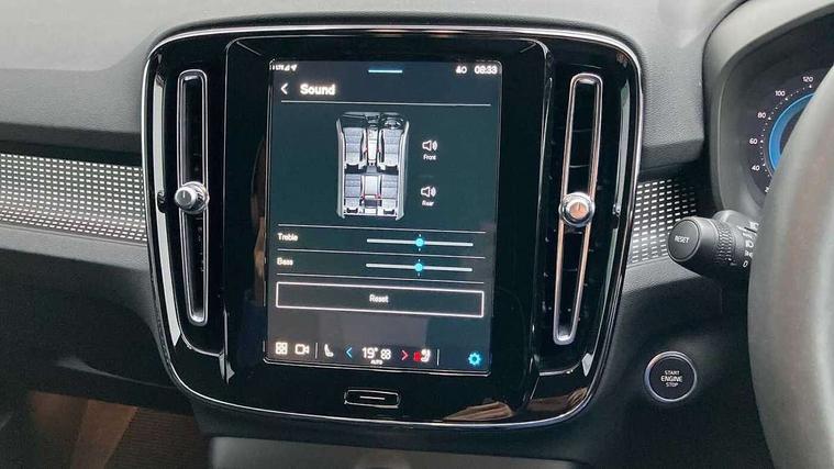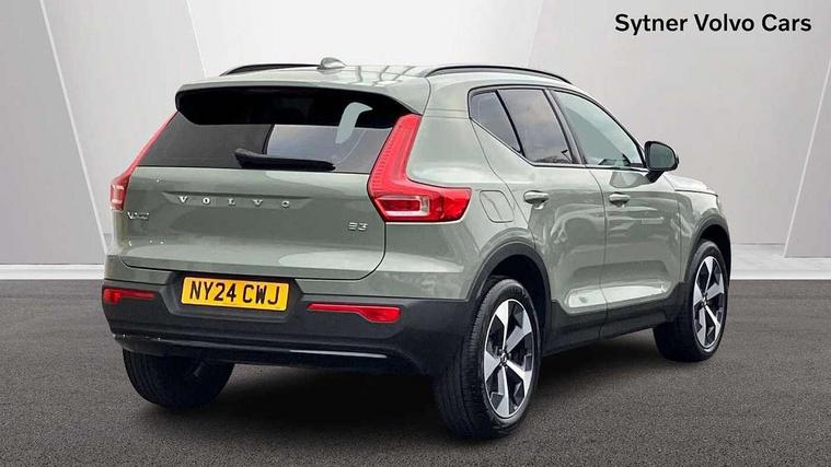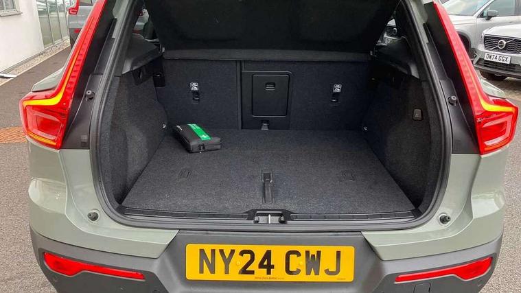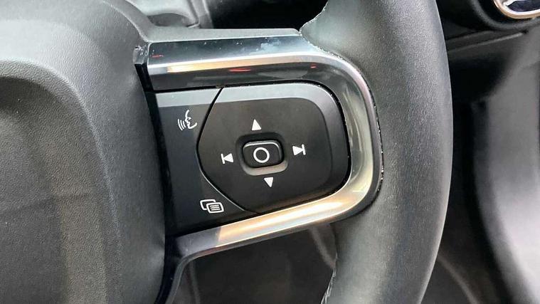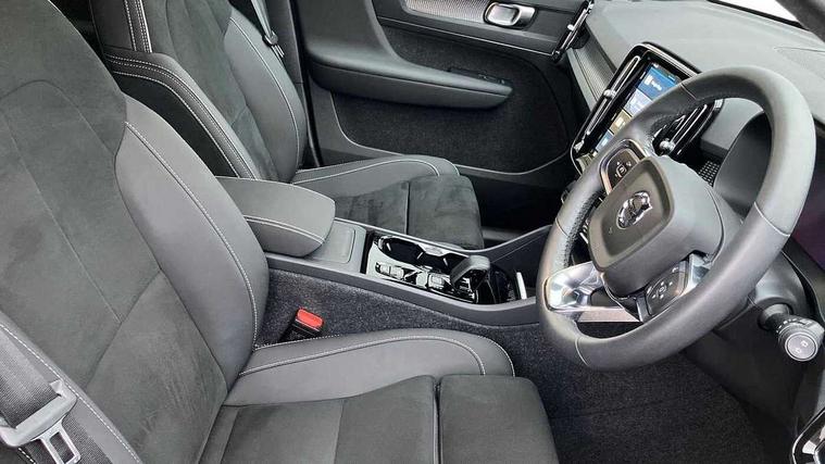 12.3" Progressive Driver Display, 9" centre console portrait touch screen, Adjustable steering wheel force, Apple carplay (wired), Bluetooth handsfree system, Cruise control, Driver alert control, Driver awareness - Blind spot information system with steer assist, cross traffic alert with autobrake and rear collision warning and mitigation, E-call, Front park assist, Google automotive services - Enabled entertainment apps, navigation with google maps, voice recognition with google assistant, Hands free power tailgate, Intelligent speed assistance, Lane keeping aid, Oncoming Lane Mitigation, Rear park assist, Rear park assist camera, Speed sensitive steering, Volvo cars services with app - Driving journal, emergency and breakdown call, engine remote start, remote door locking/unlocking and vehicle dashboard, Wireless/Inductive Mobile Phone Charging, Automatic transmission with start/stop and manual change functions, Dynamic chassis, DAB Digital radio, High performance sound, 8 speakers/250W, 2 front type C and 2 rear type C USB, Steering wheel mounted remote controls, Adaptive brake lights with high level LED brake lights, Auto dimming feature for exterior door mirrors, Auto dimming interior mirror, Automatic headlamp levelling, Automatic LED Headlights + Active high beam incorporating daytime running lights, Front aluminium tread plates, Front and rear electric windows, High gloss black front and rear skid plate, High gloss black front bumper deco, High gloss black mesh front grille with high gloss black surround, High gloss black window trim, Home safe and approach lighting, Integrated roof rails in high gloss black, LED front fog lights, Puddle lights, Rain sensor with automatic windscreen wiper activation, Rear side wing doors, Rear wiper, Roof antenna, Roof spoiler, Visible VIN plate, 12V socket in front tunnel console and luggage compartment, 2-Zone electronic climate control with CleanZone air quality system and pollen filter, 3 seat bench in 2nd row, 3 Spoke tailored steering wheel with chrome trim, 60/40 versatile split folding rear seat, A-pillar parking ticket holder, Centre console cupholders and storage, Charcoal headlining, Connect textile/microtech upholstery, Flexible load floor and grocery bag holder, Floor mats, Front cabin courtesy lights, Front door pocket, front cupholder, ambient front door, rear reading, rear courtesy, instrument panel and tailgate lighting, Front footwell illumination, Front headrests, Front reading lights, Front seat cushion extensions, Front side step illumination (under door), Glovebox bag hook, Heated front seats, Height adjustable passenger seat, Height/reach adjustable steering column, High gloss centre tunnel deco, Illuminated glovebox, Illuminated luggage compartment, Illuminated vanity mirrors + ticket holder, Integrated waste bin, Isofix attachments on outer rear seats, Load cover, Load protection net, Multi directional lumbar support for driver and passenger seat, Power driver seat with memory + exterior mirrors memory, Rear armrest with cupholders, Rear headrests, Single front passenger seat, Underfloor cargo storage, Climate pack without heated front seats - XC40, 3x3 point rear seatbelts, City safety with steering support with Pedestrian + cyclist + front collision warning with full auto brake and rear auto brake, Driver and passenger airbags, Drivers knee airbag, Electronic parking brake with auto hold, First aid kit, Front and outer rear seatbelt reminder and pretensioners, Front seats SIPS airbags, Hill descent control, Hill start assist, Inflatable curtain, Passenger airbag cut-off device, Power child locks on rear doors, Road sign information display, Run off Road Protection, SIPS (Side Impact Protection System), Slippery road and hazard light alert, Stability and Traction Control with Spin control, Engine Drag Control and Corner Traction Control, Tyre pressure monitoring system, Vehicle deceleration control with Anti-lock Brake System, Electronic Brake Distribution and Emergency Brake Assist, Warning triangle, WHIPS whiplash protection system - front, 2 x Key integrated remote control central locking including with deadlocking system and auto open/close windows, Anti-theft alarm including immobiliser/volume sensor + level sensor, Keyless drive includes keyless entry and keyless start, Locking wheel nuts,