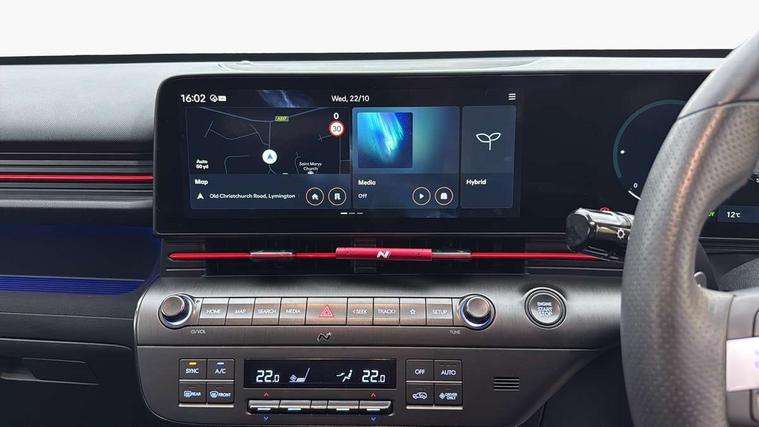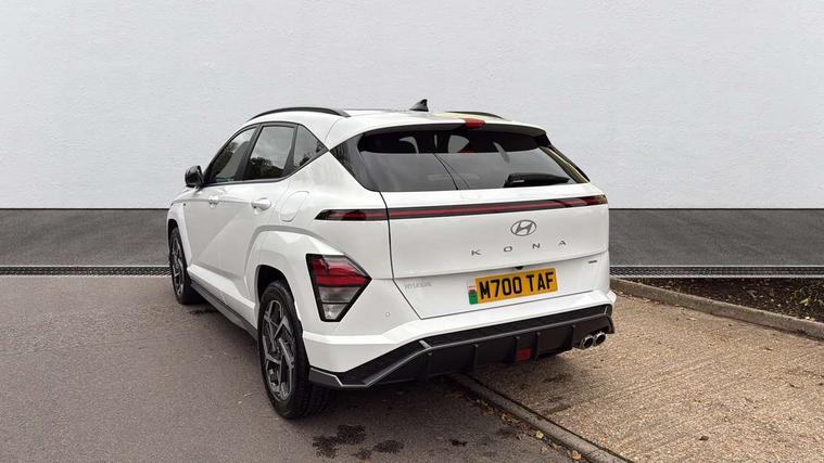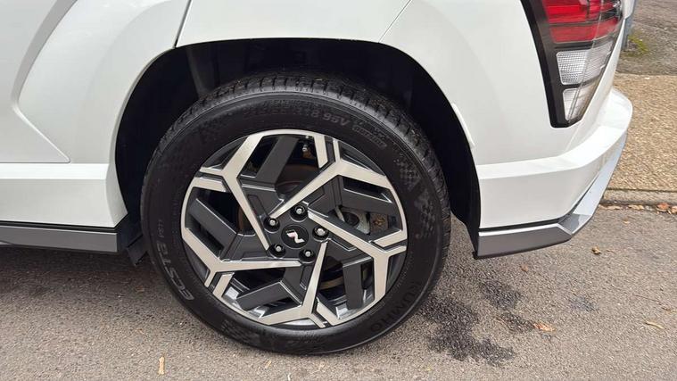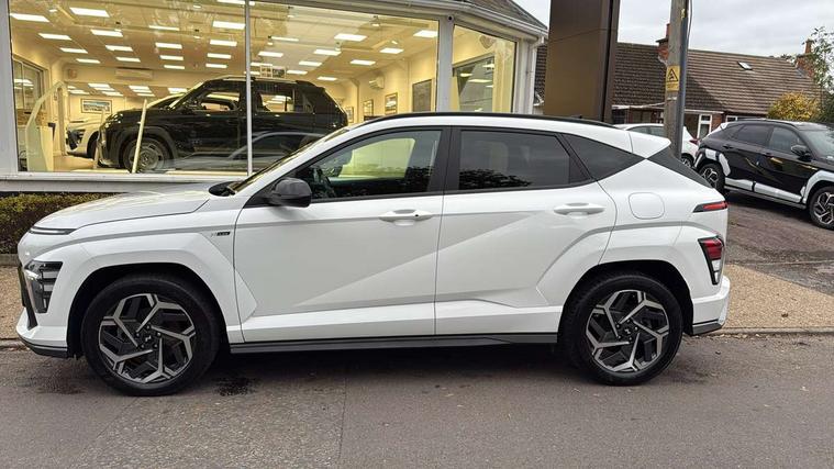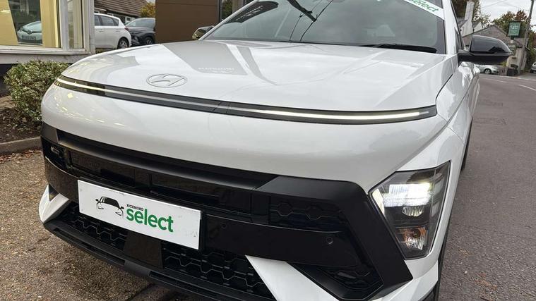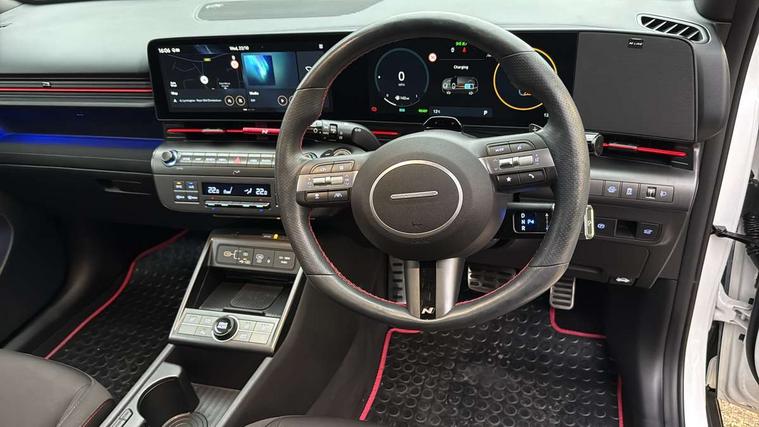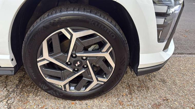 12.3" touchscreen centre console display satellite navigation with bluelink, live services and mapcare, Bluetooth connectivity with voice recognition, Digital clock, Driver status monitor (DSM), Driver supervision instrument cluster with 12.3" LCD display, eCall emergency call system, Feature on demand - Enabled, Forward collision avoidance assist (FCA 1.5) - Car, pededstrian, cycle and junction turning, Front parking sensor, HDA - Highway Drive Assist Level 1.5, Height adjustable power tailgate, Intelligent speed limit assist, Lane follow assist, Lane keep assist, Leading vehicle departure alert (LVDA), Parking system with rear camera and guidance system, PAS, Rear parking sensor, Roadside assistance, Smart cruise control with stop and go functionality, Smartphone integration compatible with Apple CarPlay and Android Auto, Windscreen washer fluid sensor and warning indicator, Wireless phone charging pad, 2 front USB C and 2 rear USB C charging points, DAB Digital radio, Speakers - Front, rear and tweeters, Steering wheel audio, phone and cruise controls, Auto dimming rear view mirror, Automatic headlights with dusk sensor, Automatic windscreen wipers with rain sensor, Body colour bumpers, Body colour exterior door handles, Body coloured wheel arch inserts, Door mirror LED indicator lights, Electric front windows with anti-trap mechanism and one touch control, Electric rear windows, Electrically adjustable and heated door mirrors, Full LED MFR headlights, Gloss black door mirrors, LED daytime running lights, LED upper and lower rear lights, Power folding door mirrors, Privacy glass - Rear windows and tailgate, Rear roof spoiler with integrated LED brake light, Rear side wing doors, Rear wiper, Roof rails, Solar glass with front door glass and windscreen, Tinted glass in front and rear doors, Windscreen auto defog function, 12V power outlet in front console, 2 zone climate control, 3 seat bench in 2nd row, 40/20/40 split folding rear seat, Adjustable head restraints, Aluminium pedals, Ambient lighting, Driver and passenger front seat pockets, Driver's seat lumbar support, Driver/passenger manual seat height adjustment, Driver/passenger sunvisors and illuminated vanity mirrors, Floor mats, Heated front seats, Heated rear seats, Heated steering wheel, Height/reach adjustable steering column, Isofix rear child seat fastenings, Leather wrapped steering wheel, LED centre interior light, LED front interior light, Luggage compartment LED lighting, Luggage shelf, Metal paint effect interior door handles, N Line cloth upholstery, Parcel shelf, Rear centre armrest, Rear centre console with air vents, Shift by wire SBW, Single front passenger seat, Vertical adjustment rear head restraints, N Line exterior design pack - Kona, Trailer wiring package - Kona, Airbag - front, front side, curtain and centre front airbag, Anti-lock brake system (ABS), Childproof rear door locks, Downhill brake control, EBD + Brake Assist, Electric parking brake, Electronic stability control, Fasten seatbelt reminder, Fixed 3 point for second row centre passenger seatbelt, Front seatbelt pretensioners, Height adjustable front seatbelts, Hill start assist control (HAC), Passenger airbag deactivate switch, Rear seat alert, Traction control, Tyre pressure monitoring system, Alarm/immobiliser, Deadlocks, Folding key, Locking wheel nuts, Remote central locking, Smart key with keyless entry and engine start/stop button, Five year annual vehicle health checks, Temporary mobility kit (TMK),