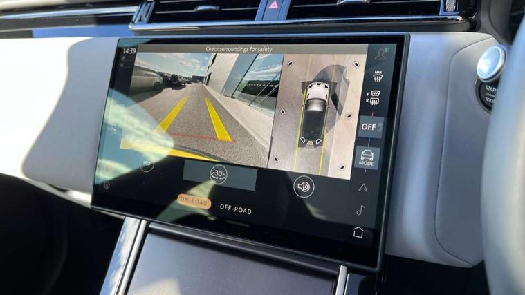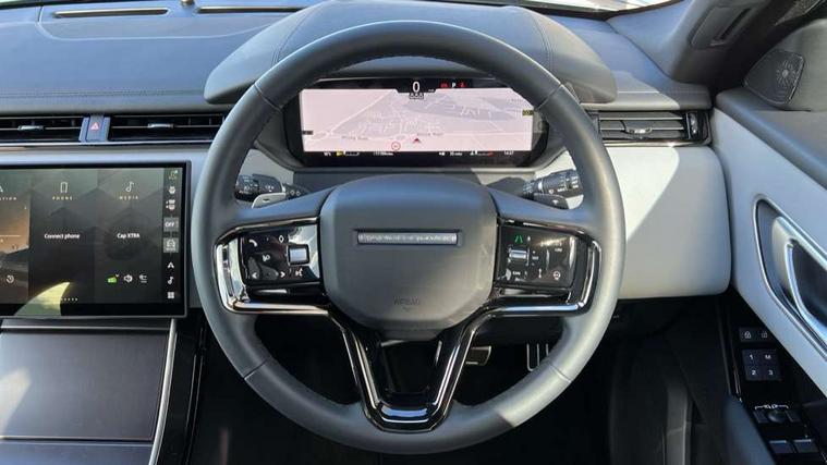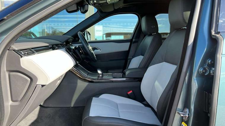 3D surround camera includes forward traffic detection and vehicle guidance, Android Auto, Apple CarPlay, Blind spot assist, Bluetooth connectivity, Brake pad wear indicator warning light, Driver condition monitor, eCall emergency call system, Front and rear parking aid, InControl remote, Land Rover InControl apps, Lane keep assist, Pivi pro with connected navigation, Rear traffic monitor, Service indicator, Speed proportional electronic power assisted steering (EPAS), Traffic sign recognition with adaptive speed limiter, Trip computer, Voice control system, Wade Sensing, Wireless device charging, 8 speed automatic transmission, All terrain progress control, Coil suspension system, Open differential with torque vectoring by braking, Single speed transfer box, DAB radio, Steering wheel mounted controls, 3rd brake light, Acoustic laminated windscreen, Auto dimming interior rear view mirror, Auto high beam assist, Automatic headlamp levelling, Automatic headlights, Body coloured bumpers, Boot protection plate, Electric windows with one touch open/close and anti trap, Flush deployable exterior door handles, Follow me home headlights, Heated rear window with timer, Heated washer jets, Heated windscreen, LED headlights with signature DRL, Metal front tread plates, Metal load space scuff plates, Power fold, auto-dimming, heated door mirrors with memory and approach lights, Rain sensor windscreen wipers, Rear animated directional indicators, Rear fog lights, Rear side wing doors, Rear wash/wipe, Tailgate/boot lid spoiler, Trailer stability assist, Velar badge, 14 way electrically adjustable front seats with driver's memory function, 3 seat bench in 2nd row, Ambient lighting, Bright metal pedals, Carpet mats, Driver/passenger sunvisors with illuminated vanity mirrors, Ebony morzine headlining, Electrically adjustable steering column, Heated steering wheel, Isofix system on outer rear seats, Loadspace cover, Overhead lighting console, Overhead stowage for sunglasses, Passive front headrests, Rear air vents, Rear centre headrest, Single front passenger seat, Twin front cupholders, Twin sliding front centre armrest, Online pack with data plan - Velar, Power socket pack 2 - Velar, 355mm Front and 325mm Rear brakes, 3x3 point rear seatbelts, Anti-lock braking system (ABS), Cornering brake control, Curtain airbags, Customer configurable autolock, Door side intrusion beams, Driver airbag, DSC - Dynamic Stability Control, Electronic brake force distribution, Electronic parking brake, Electronic traction control, Emergency braking, Front and rear seatbelt reminder, Hill descent control, Hill launch assist, Low traction launch, Passenger airbag, Power operated child locks, Rear airbags, Roll stability control, Side airbags, Tyre pressure monitoring system (TPMS), Global lock and unlock switch on driver door, Immobiliser, Intrusion sensor, Keyless entry, Lock only switch on front passenger door, Locking wheel nuts, Perimetric alarm, Remote central locking, All season tyres,