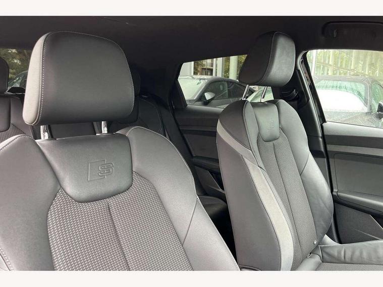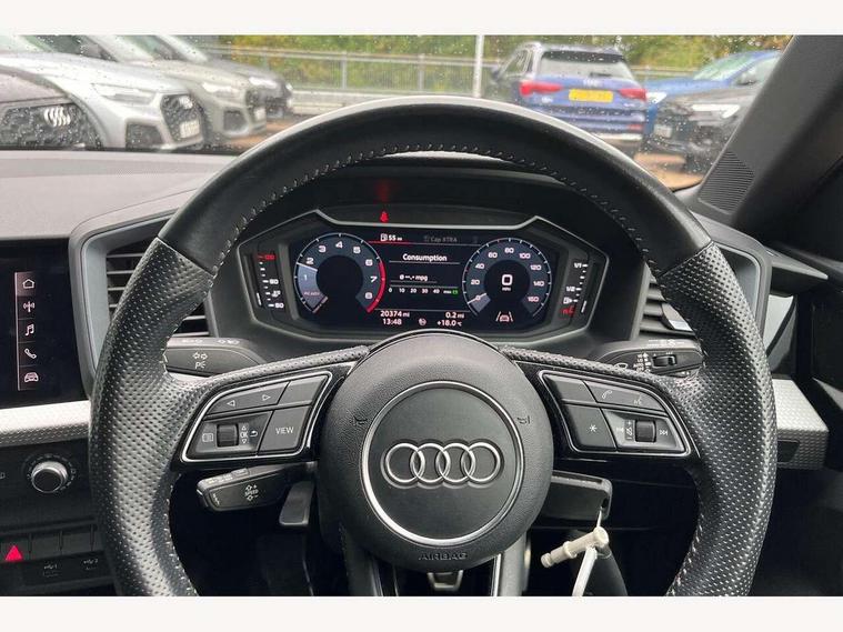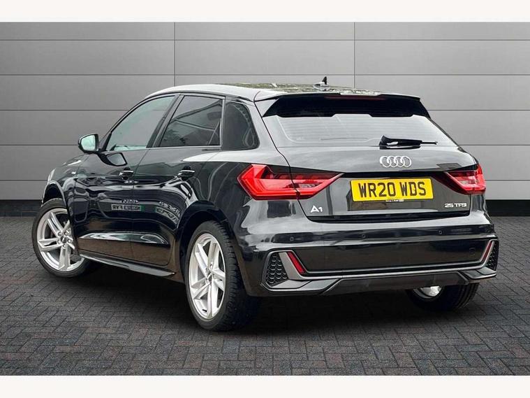 10.25" Digital instrument cluster display classis style instrument dials + speed, odometer, time, outside temperature, telephone menu + fuel level warning, Audi connect safety emergency and service including E-call, Audi smartphone interface with connect compatible smartphone via USB directly MMI display + Nav, music, third party apps controlled via MMI controller, Automatic start/stop system, Bluetooth interface, Cruise control, Driver's information system, Electromechanical power steering, Lane departure warning system, Rear parking sensor, Service interval indicator, Speed limiter, Voice control system, Washer fluid level indicator, Sports suspension, 1 x SDXC card reader, 1 x USB type C and 1 USB type A charging points, DAB Digital radio, MMI radio plus with 8.8" colour MMI display screen and MMI touch, Auto dimming rear view mirror, Body coloured door mirrors, Door sills with aluminium inlays and S Line logo, Electric front and rear windows, Electrically adjustable, heated, folding door mirrors with integrated LED side indicator, Front side air inlets in grained matt black and C frame in titanium black, Heat insulating glass windscreen and side windows, Heated rear windscreen, LED headlights with LED rear lights + dynamic rear indicators + headlight adjustment and high beam, turning light + LED daytime running lights, Radiator grille and rear diffuser in matt titanium black, Radiator protective grille frame in matt aluminium silver, Rain and light sensors, Rear fog lights, Rear wiper, S line badges on front wings, Side front spoiler lips in grained matt black, 12V socket in centre console with two cup holders, 3 rear seats with headrests, 40:60 Split folding rear seat or folded fully, Black cloth headlining, Driver and passenger seat with manual height adjust with forward and backwards adjustment, Front and rear black floor mats with contrast stitching in fine silver, Front head restraints, Height and reach adjustable steering wheel, ISOFIX child seat mounting for front passenger and outer rear seats including top tether attachment point of outer rear seats, Leather gear knob with aluminium trim, Luggage compartment light with front and rear reading lights, Manually adjustable lumbar support in front seats, Stainless steel pedals, LED interior lighting pack - A1, Luggage compartment pack - A1, S line exterior styling pack - A1 Sportback, 3x3 point rear seatbelts, Audi pre-sense front with pedestrain and cyclist recognition, Brake assist function, Driver and front passenger airbag with front side and head airbags, Electronic Stability Control including ABS, EBD, ASR and EDL, Front and rear seatbelt reminder, Front passenger airbag deactivation switch, Hill hold assist, Seatbelt height adjustment for front seats, Seatbelt monitoring, Tyre pressure warning light, Warning triangle and first aid kit, Anti theft alarm, Anti theft wheel bolts and loose wheel warning, Immobiliser, Remote central locking with 2 foldaway keys, Aluminium trim for control switches, air vents and digital instrument cluster, Silver grey inlays polygon structure in diamond paint finish, Structured grey accent areas including air vents, door handle recesses and centre console in quartz paint finish,