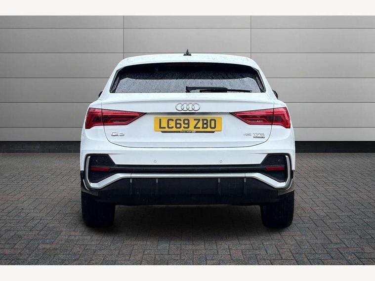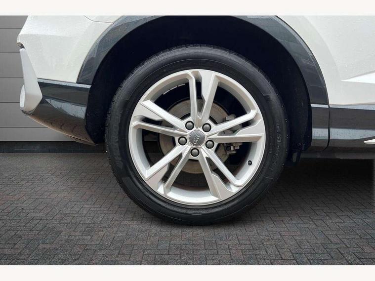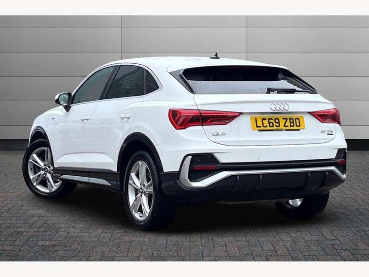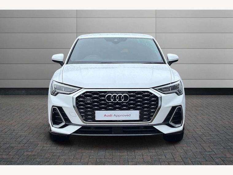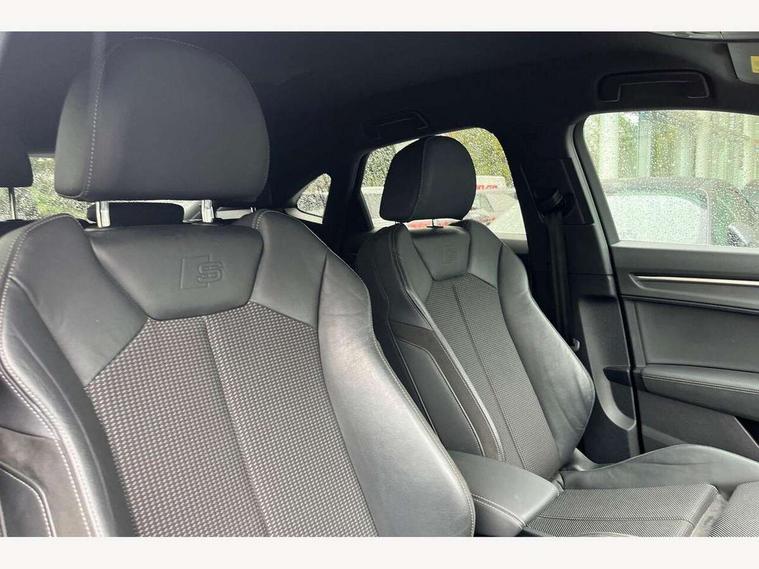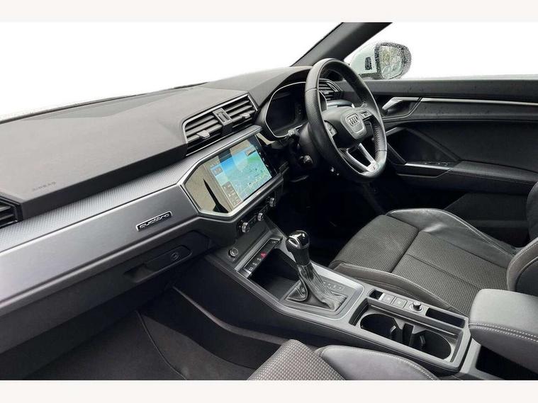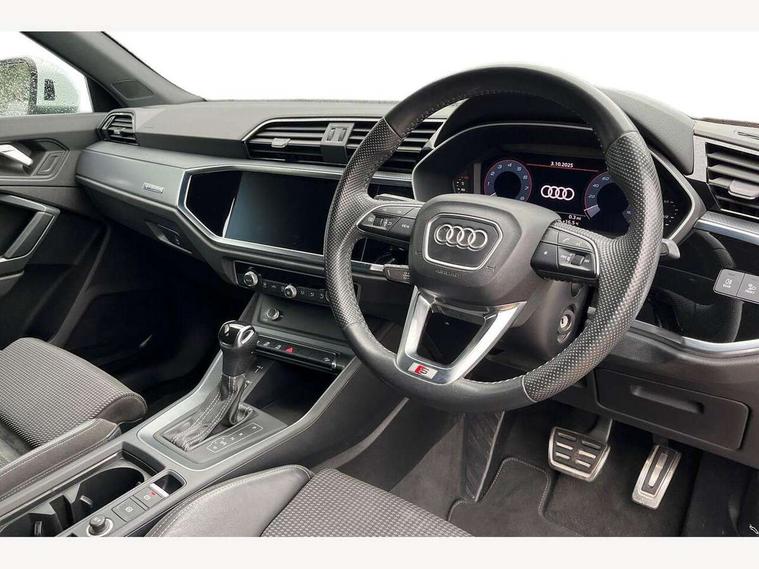 Audi connect safety and service (e-call), Audi drive select, Audi lane departure warning, Audi side assist, Audi smartphone interface, Audi Virtual Cockpit - 10.25" display, Bluetooth interface, Camera based traffic sign recognition, MMI Navigation Plus with high resolution 10.1 inch touchscreen colour display, Power operated tailgate, Progressive steering, Service interval indicator, Start stop system with recuperation, Voice control system with natural language interaction, Sports suspension, 1 x USB type C and 1 USB type A charging points, 6 passive loudspeakers, DAB digital radio module, Acoustic windscreen, Aluminium window trim, Auto dimming frameless rear view mirror, Diffuser grille in grained matt black, Diffuser trim in selenite silver, Electrically folding, adjustable and heated door mirrors with integrated LED side indicators and kerb view function for passenger side, Front and rear electric windows, Front fog lights, Front side air inlets in selenite silver, Front underbody protection in manhattan grey paint finish, Grille surround in aluminium silver matt, High gloss black finish B and C pillars, LED headlights with LED daytime running lights and dynamic rear indicator, LED rear lights, Privacy glass dark tinted rear and rear-side windows (from B-pillar backwards), Radiator grille in titanium black with inlay in matt aluminium silver, Rain and light sensors, Rear underbody protection in matt black, S line badges on front wings, Side skirt insert in matt Platinium grey, 12V socket in rear centre console, 40:20:40 folding with manual adjustment for 60:40 forwards/backwards position and backrest angle, Adjustable rear seat bench/backrest with centre armrest and cupholder, Black cloth headlining, Dual zone climate control, Front and rear black floor mats with contrast stitching, Front and rear headrests, Front and rear roof module including reading lights, Front centre armrest, Glove compartment lighting, Illuminated door sill trims with S logo, ISOFIX child seat mounting and Top Tether with front passenger airbag deactivation, Luggage compartment light, Manual front seats with height adjustment, Perforated leather gearknob, Stainless steel luggage compartment sill finisher, Stainless steel pedals, Non smoking pack - Q3, 3x3 point rear seatbelts, 6 airbags - Driver, front passenger, curtain and side windows, Electrically operated child locks on rear doors, Electromechanical parking brake, Electronic stabilisation control including ABS, ASR and EDL, Hill descent control, Hill hold assist, Pre sense basic, Seatbelt monitoring, Tyre pressure warning, Warning triangle and first aid kit, Anti theft alarm, Anti theft wheel bolts, Audi pre-sense front with pedestrain and cyclist recognition, Remote central locking, Dark matt brushed aluminium inlay, Leatherette door armrest, MMI touch colour display in glass look, black with surround in aluminium look,