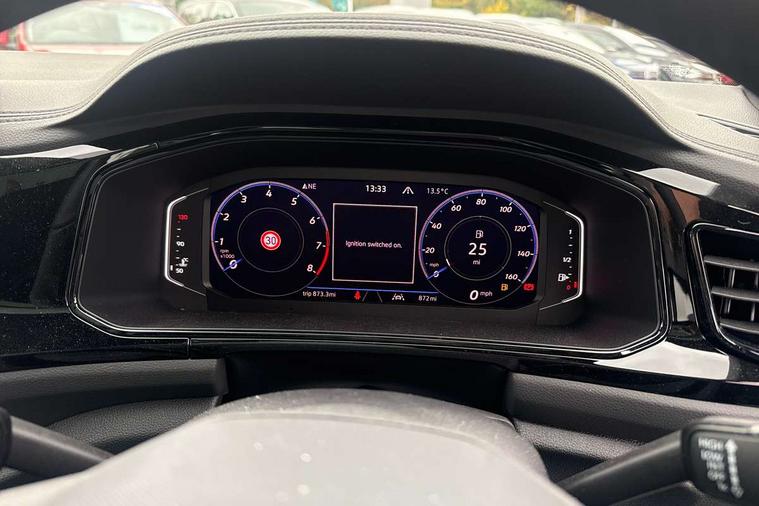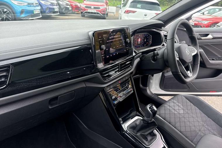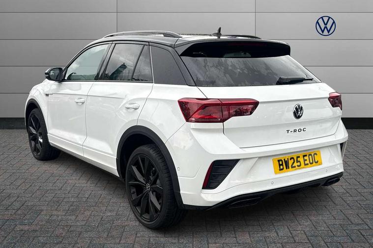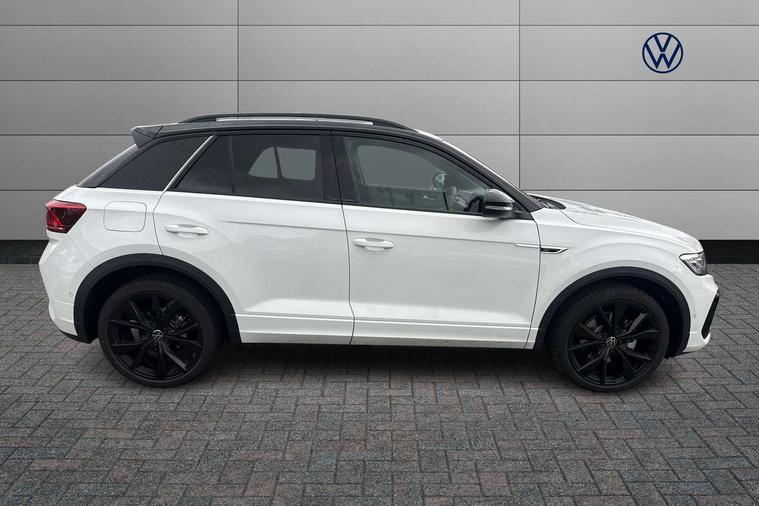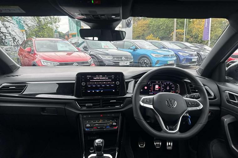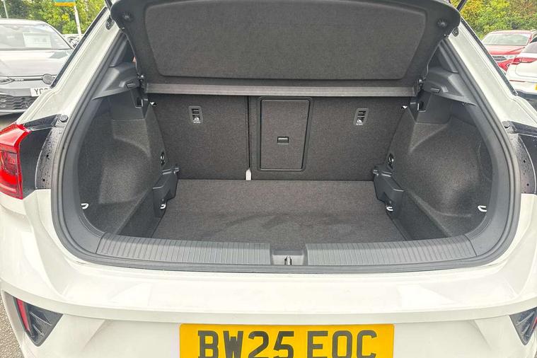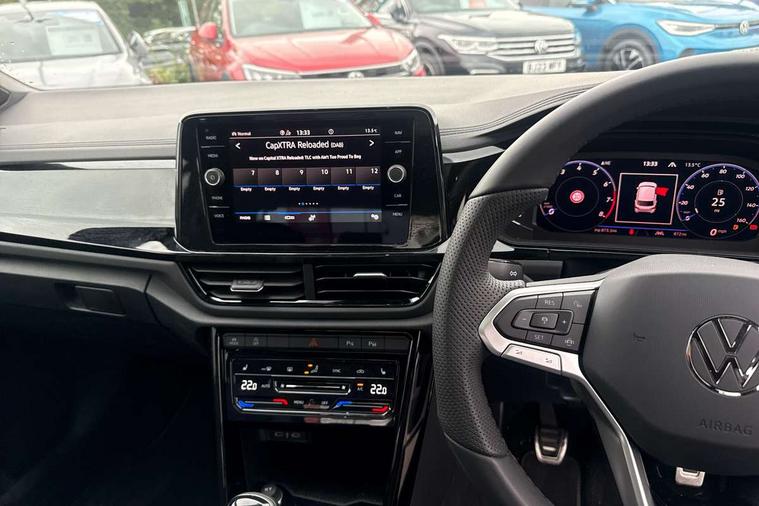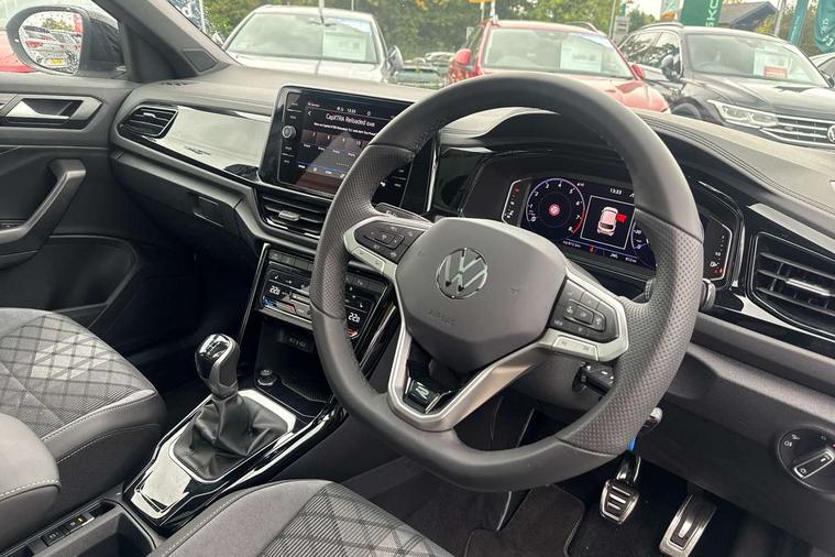 10.25" Digital cockpit pro, Advanced driver attention and drowsiness monitor, Emergency call service, Lane keeping system Lane Assist, Mobile phone interface, Modified key software - reduce switch off time for key status change to Long no motion, Online services, Park assist including front and rear parking sensors, Power assisted speed sensitive steering, Service interval indicator, Tailgate/trunk lid release from outside, Think blue trainer driver tips and journey analysis, Warning sound and light for front seatbelts unfastened, Wireless app connect, Battery regeneration during braking, Rear shock absorption chassis with increased ride height, Start/stop function with battery regeneration, DAB Digital radio, Diversity antenna for FM reception, Front and rear 6 speakers, Music playback - MP3, WMA and AAC files, Premium USB cable in choice of either Apple or Android smartphone compatibility, SD card slot, Simultaneous pairing of 2 compatible mobile devices, Title and cover art display, We Connect and We Connect Plus functionality, Auto dimming interior rear view mirror, Automatic hazard lights activation under emergency braking, Automatic headlight control with LED separate daytime running lights with coming/leaving home function, Dynamic cornering light, Electrically adjustable and heated door mirrors, Extended roof spoiler, Exterior mirrors aspherical on driver side, convex on front passenger side, External USB type C socket and charging sockets, Front windscreen wiper with intermittent wipe and 4 position delay, Heated rear window, Illuminated front grille, IQ LED matrix headlights, LED 3rd brake light, LED rear number plate lights, LED rear tail lights with dynamic turn signal, Light mode for poor weather, rain, fog or snow, Power windows with comfort operation and circuit breaker, R-Line design body coloured bumpers, Rain sensor, Rear exhaust tailpipe, Rear fog light on one side and reversing lights on both sides, Rear side wing doors, Rear wash/wipe with intermittent wipe setting, Remote electrically foldable door mirrors, puddle lights and reverse activated passenger's door mirror, 12V power socket in centre console, 3 rear head restraints, 3 seat bench in 2nd row, 4 load lashing points in luggage compartment, Air care climatronic air conditoning system with active combination filter and 2-zone temperature control, Artvelours cloth upholstery, Black roof lining, Chrome plated radiator grille inserts, air vent surrounds and light switch surrounds, Door and side trim panel with leatherette insert, Drawer under drivers seat, Driver seat height adjust, Driver's seat lumbar support, Front + rear carpet mats, Front centre armrest, Front comfort sports seats, Front cupholders x 2, Front footwell illumination, Front reading light, Front scuff plates with R Line logo, Front seat back storage pockets, Glove compartment door with light, Instrument lighting, white adjustable panel illumination, Interior ambient lighting and surround lighting, Interior light delay, Isofix child seat preparation, Leather gearshift handle, Load-through provision with cup holder when folded down ('Unsplit rear seat bench, split folding backrest, with centre armrest), Luggage compartment lighting, Non-folding front passenger seat backrest, Passenger seat height adjuster, Passenger seat lumbar support, Single front passenger seat, Stainless steel pedals, Storage compartment in left and right luggage area, Storage compartment in rear doors, Storage compartments in driver and front passenger doors, Sunvisors with illuminated vanity mirrors, Variable boot floor, height adjustable and removable, Winter pack without heated windscreen washer jets - T-Roc, 3 point height adj front seatbelts + pretensioners, 3 point seatbelts in outer rear with ECE label, ABS, Child locks on rear doors, City emergency braking and pedestrian monitoring, Driver and front passenger airbag with front passenger airbag deactivation, Driver and front passenger safety-optimised head restraints, Drivers seatbelt reminder, Electronic parking brake, Electronic Stability Control (ESC) inc EDL (Electronic Differential Lock) and ASR (Traction Control), Front and rear passengers curtain airbag system including front side airbags, Front disc brakes, Hill start assist, Predictive pedestrian protection, Rear disc brakes, Two tone horn, Tyre pressure loss indicator, Volkswagen roadside assistance, Tool kit, Trims for alloy wheels, Tyre mobility kit including compressor and sealing foam,