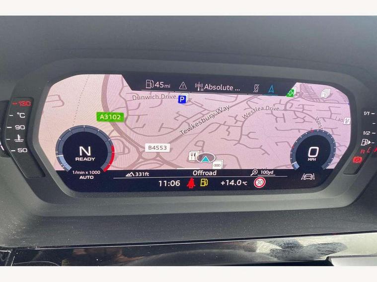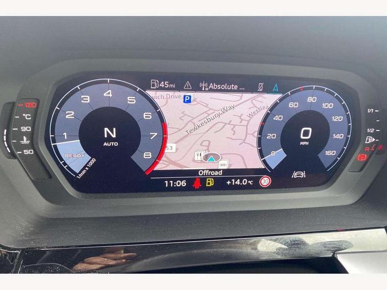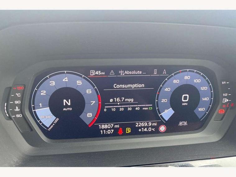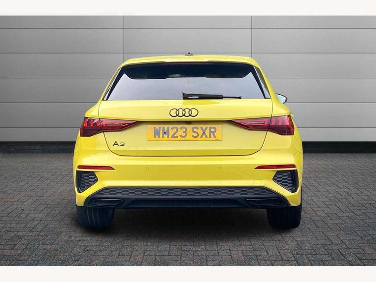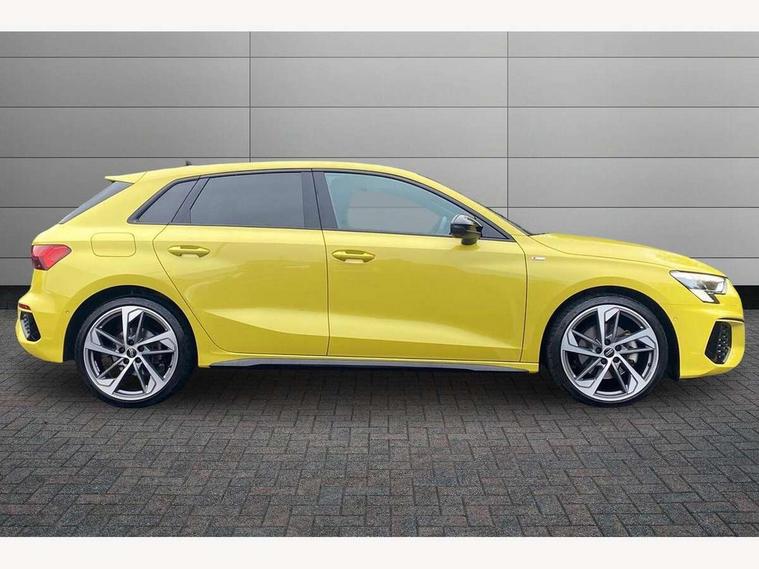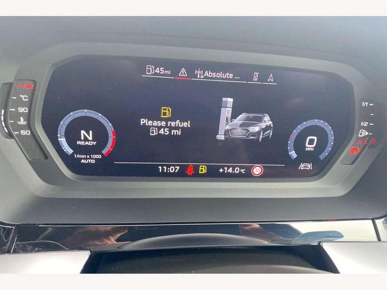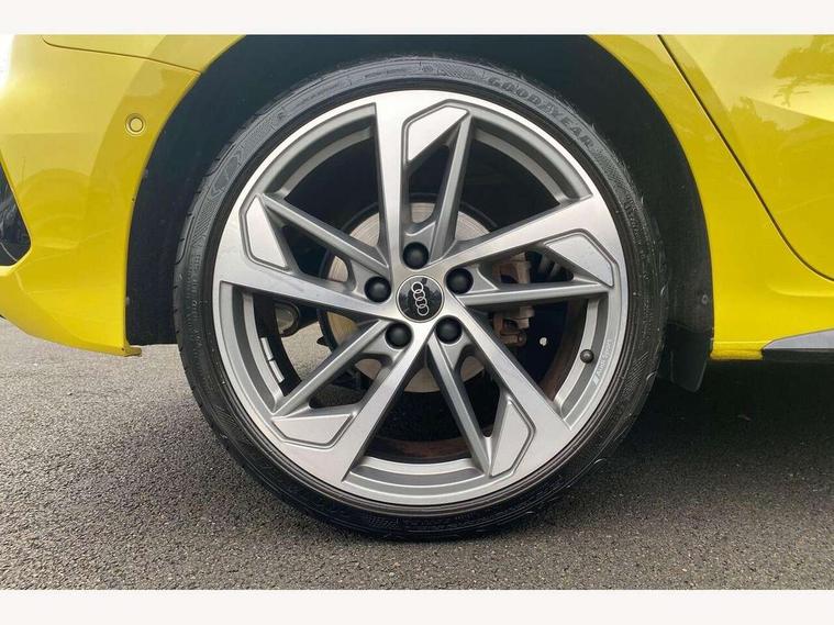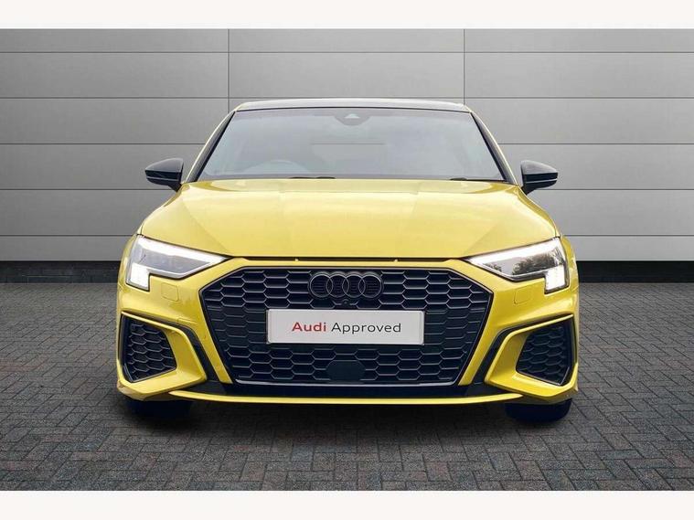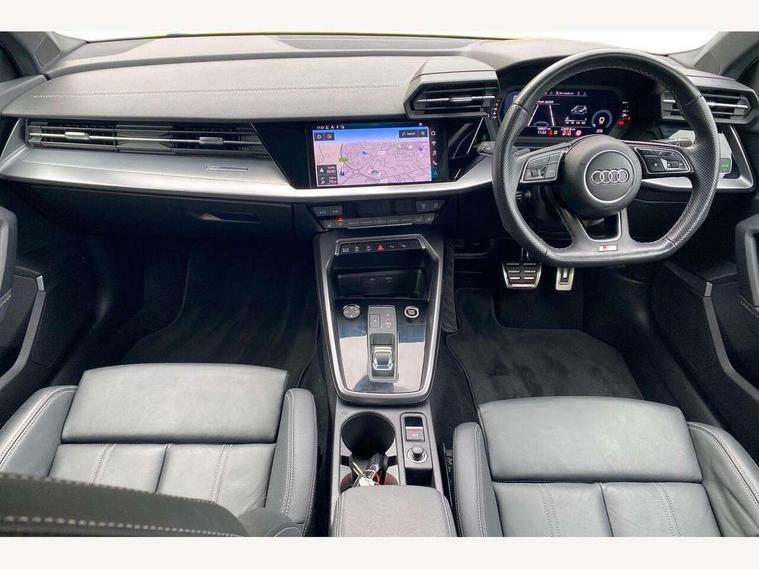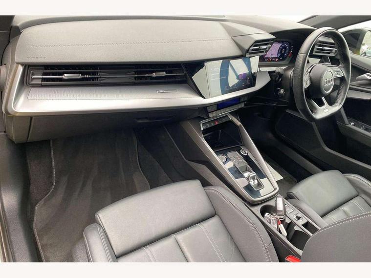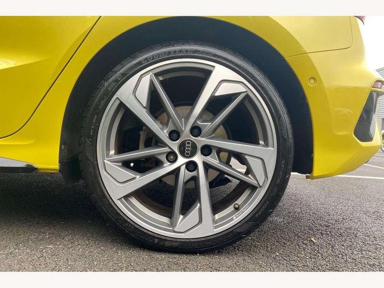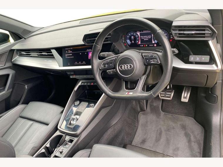 Audi drive select (Auto, Comfort, Dynamic, Efficiency and Individual), Audi smartphone interface, Audi Virtual Cockpit - 10.25" digital and colour instrument cluster, Automatic start/stop system with recuperation, Bluetooth interface, Camera based traffic sign recognition, Collision avoidance assistant, e-Call (emergency call), Electromechanical power speed sensitive steering, Lane departure warning system, MMI Navigation Plus with high resolution 10.1" colour touch screen display, Service indicator, Trip computer, Voice control system with natural language interaction, Sports suspension, 2xUSB-C connection with data and charging functions, 6 passive loudspeakers, DAB Digital radio, 3rd brake light, Acoustic glass windscreen, Audi beam uses LEDs to project the Audi logo onto the ground as you exit your A3, Auto dimming frameless rear view mirror, Electrically adjustable/heated/folding/auto dimming door mirrors with integrated LED indications + kerb view function for passenger side, Front electric windows, Illuminated door sills with aluminium inserts at the front with S logo, LED daytime running lights, LED headlights with LED rear lights and dynamic rear indicators, Light and rain sensors, Privacy glass - dark tinted rear window, rear door and side windows, Rear electric windows, Rear side air outlets in grained matt black, Rear side wing doors, Rear wiper, S roof spoiler, 12V socket and storage compartment in front centre console, 3 seat bench in 2nd row, 4 way electrically adjustable lumbar support for driver and front passenger, 60/40 split folding rear seat bench, Black cloth headlining, Dual zone electronic climate control, Front and rear centre armrest in artificial leather, Front and rear headrests, Front/rear floor mats, Height and reach adjustable steering wheel, Interior lighting - glove compartment light and right hand side, Luggage compartment floor covering, Manual boot compartment lid, Seat side bolsters, Single front passenger seat, Stainless steel pedals and front footrest in black, Twin leather upholstery with front sports seats S embossed logo, Aluminium interior elements pack - A3 Sportback, Black styling pack - A3 Sportback/Black edition, LED interior lighting pack - A3 Sportback, 3x3 point rear seat belts, Driver and front passenger airbag with passenger airbag deactivation, Electronic Stabilisation Control (ESC) including ABS, ASR and EDL, First aid kit with warning triangle and 2 safety vests, Front side airbags with head airbags and interaction airbag, Pre-sense front with pedestrian and cyclist detection, Seatbelt monitoring, Tyre pressure loss indicator, Anti theft alarm, Anti-theft wheel bolts, Electronically operated child locks, Immobiliser, Remote control central locking, Dark spectrum aluminium inlays, accent surfaces in the dashboard and centre console in platinum grey silk effect paint finish, 19" 5 arm trapezoid design alloy wheels in matt grey with diamond cut finish,
