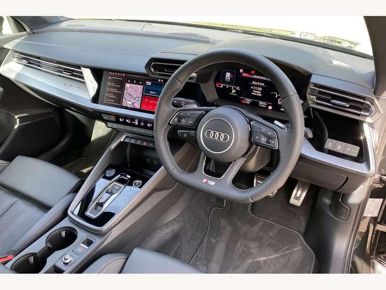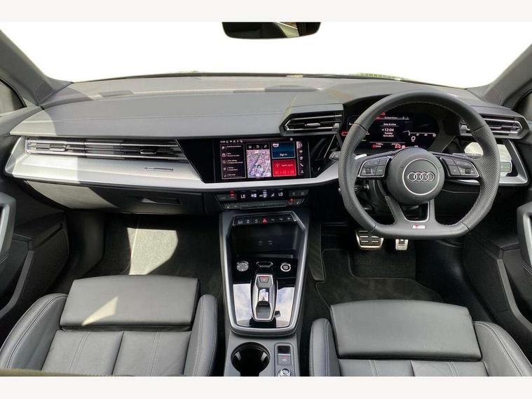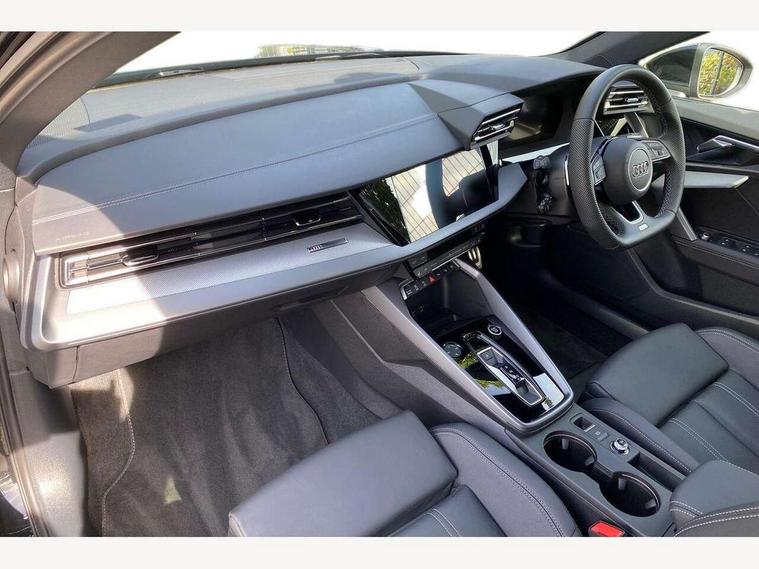 Adjustable speed limiter, Audi drive select, Audi smartphone interface with app store includes wireless Apple carplay, Android auto and Amazon alexa integration, Audi virtual cockpit plus - 12.3" full HD resolution dynamic digital instrument cluster, Automatic start/stop system with recuperation, Bluetooth interface, Camera based traffic sign recognition, Collision avoidance assistant, Cruise control, Distraction and Fatigue warning, e-Call (emergency call), Electromechanical power speed sensitive steering, Emergency assist, Lane departure warning system, MMI Navigation Plus with high resolution 10.1" colour touch screen display, Park Assist with parking system Plus, Service indicator, Tailgate, Trip computer, Voice control system with natural language interaction, Sports suspension, Audi Phonebox light with wireless charging, Audi sound system - 10 loudspeakers including centre loudspeaker and subwoofer, DAB Digital radio, USB ports with charging function in the rear, Acoustic glass windscreen, All weather light, Aluminium window trim, Auto dimming frameless rear view mirror, Automatic dynamic range control, Body colour exterior mirrors, Chrome exhaust tailpipes, Dipped beam, main beam, position light and turning light, Electrically adjustable/heated/folding/auto dimming door mirrors with integrated LED indications + kerb view function for passenger side, Exterior model badging, Front and rear side air inlets in grained matt black with dark liquid chrome frame, Front electric windows, Front radiator grill in high gloss dark chrome, Heat insulating glass windscreen, Illuminated door sills with aluminium inserts at the front with S logo, Intersection light, LED 3rd brake light, LED brake lights, LED daytime running x3, LED headlights with LED rear lights and dynamic rear indicators, LED rear number plate lights, LED reverse light, LED tail lights, Light and rain sensors, Manoeuvring light, Motorway light, Privacy glass - dark tinted rear window, rear door and side windows, Rear diffuser and grill in grained matt black with inlay in dark liquid chrome, Rear electric windows, Rear side wing doors, Rear wiper, S line bumpers, S roof spoiler, Side S line emblems on front wings, Side sill trim in dark liquid chrome, Static Cornering lights, 12V socket and storage compartment in front centre console, 3 seat bench in 2nd row, 3 spoke flat bottomed leather multifunction sport steering wheel with gear shift paddles, 3-zone deluxe automatic air conditioning, 4 way electrically adjustable lumbar support for driver and front passenger, 40/20/40 split folding rear seat bench, Black cloth headlining, Black front and rear floor mats, Front and rear centre armrest in artificial leather with contrasting stitching on armrests and instrument panel, Front and rear headrests, Heated front seats, Height and reach adjustable steering wheel, Manual boot compartment lid, Manually adjustable front seats, Rear centre armrest with cupholder, S badging on the steering wheel, Seat side bolsters, Single front passenger seat, Stainless steel pedals and front footrest in black, Twin leather upholstery with front sports seats S embossed logo, Aluminium interior elements pack - A3, Multi-coloured LED interior lighting package with Multi-coloured contour lighting of instrument panel - A3, 3x3 point rear seat belts, Driver and front passenger airbag with passenger airbag deactivation, Electronic Stabilisation Control (ESC) including ABS, ASR and EDL, First aid kit with warning triangle and 2 safety vests, Front side airbags with head airbags and interaction airbag, Hill hold assist, Pre-sense front with pedestrian and cyclist detection, Seatbelt monitoring, Tyre pressure loss indicator, Anti theft alarm, Anti-theft wheel bolts, Electronically operated child locks, Immobiliser, Remote central locking with safelock, Black dashboard, Inlay in dark aluminium spectrum,