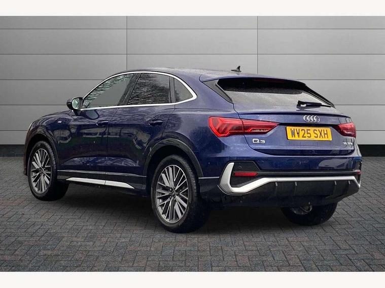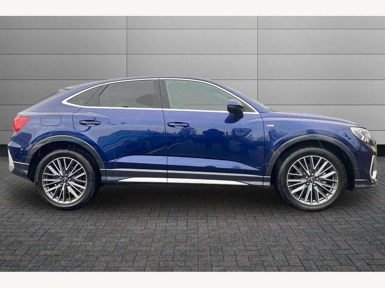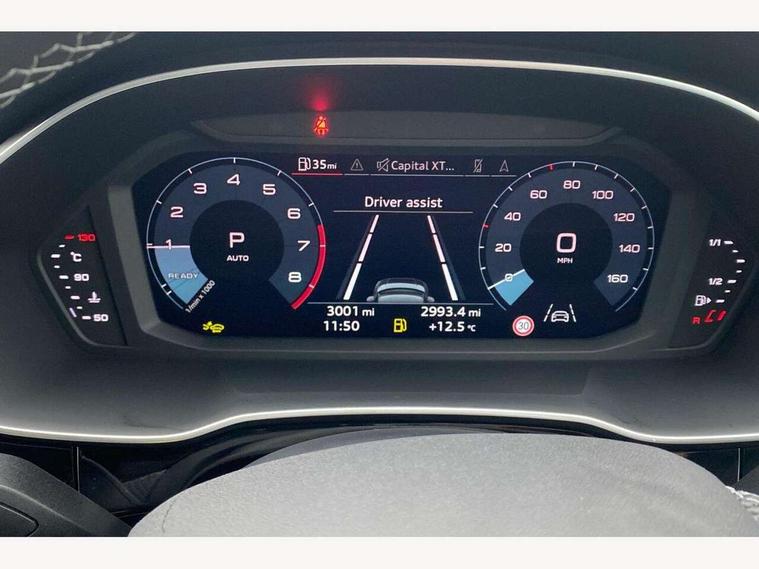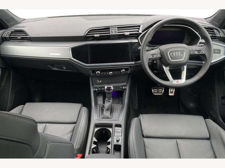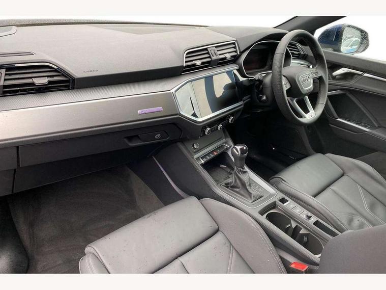Audi connect safety and service, Audi drive select, Audi lane departure warning, Audi Virtual Cockpit - 10.25" display, Bluetooth interface, Camera based traffic sign recognition, Distraction and Fatigue warning, Legal emergency call, MMI Navigation Plus with high resolution 10.1 inch touchscreen colour display, Power operated tailgate, Progressive steering, Service interval indicator, Smartphone interface includes wireless Apple carplay/Android Auto, Start stop system with recuperation, Voice control system with natural language interaction, Sports suspension, 2 USB-C ports with charge and data functions, 6 passive loudspeakers, DAB digital radio module, Acoustic windscreen, Aluminium window trim, Auto dimming door mirrors, Auto dimming frameless rear view mirror, Diffuser grille in grained matt black, Diffuser trim in selenite silver, Electrically folding, adjustable and heated door mirrors with integrated LED side indicators and kerb view function for passenger side, Front and rear electric windows, Front fog lights, Front side air inlets in selenite silver, Front underbody protection in manhattan grey paint finish, Grille surround in aluminium silver matt, High gloss black finish B and C pillars, LED Dynamic rear indicators, LED headlights with LED daytime running lights, LED rear lights, LED third brake light, Privacy glass dark tinted rear and rear-side windows (from B-pillar backwards), Radiator grille in anthracite black with inlay in matt aluminium silver, Rain and light sensors, Rear side wing doors, Rear underbody protection in matt black, Rear wiper, S line badges on front wings, S line front and rear bumpers and side skirts in contrasting Manhattan grey paint finish, Side skirt insert in matt Platinium grey, Variable front intermittent wipers, 12V socket in rear centre console, 3 seat bench in 2nd row, 3 spoke leather multifunction steering wheel features S badging and grips in perforated leather with contrast stitching, 40:20:40 folding with manual adjustment for 60:40 forwards/backwards position and backrest angle, Adjustable rear seat bench/backrest with centre armrest and cupholder, Black cloth headlining, Dual zone electronic climate control, Electric lumbar support, Front and rear black floor mats with contrast stitching, Front and rear headrests, Front centre armrest, Height and reach adjustable steering wheel, Illuminated door sill trims with S logo, ISOFIX child seat mounting for front passenger with airbag deactivation and outer rear seat including top tether attachment point for outer rear seats, Luggage compartment sill protection in stainless steel, Manual front seats with height adjustment, Perforated leather gearknob, Single front passenger seat, Stainless steel pedals, Twin leather upholstery with front sport seats + S embossing, Non smoking pack - Q3, 3x3 point rear seatbelts, 6 airbags - Driver, front passenger, curtain and side windows, Audi pre-sense front with pedestrain and cyclist recognition, Electrically operated child locks on rear doors, Electromechanical parking brake, Electronic stabilisation control including ABS, ASR and EDL, Front seatbelt reminder, Hill descent control, Hill hold assist, Pre sense basic, Seatbelt monitoring, Tyre pressure warning, Warning triangle and first aid kit, Anti theft wheel bolts, Immobiliser, Remote central locking, Thatcham approved category 1 anti theft alarm, Aluminium look interior elements, Dark matt brushed aluminium inlay, Detail dashboard around MMI touch colour display in glass look, black with surround in aluminium look, Leatherette door armrest,