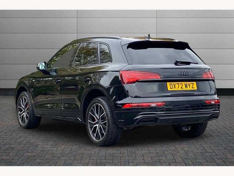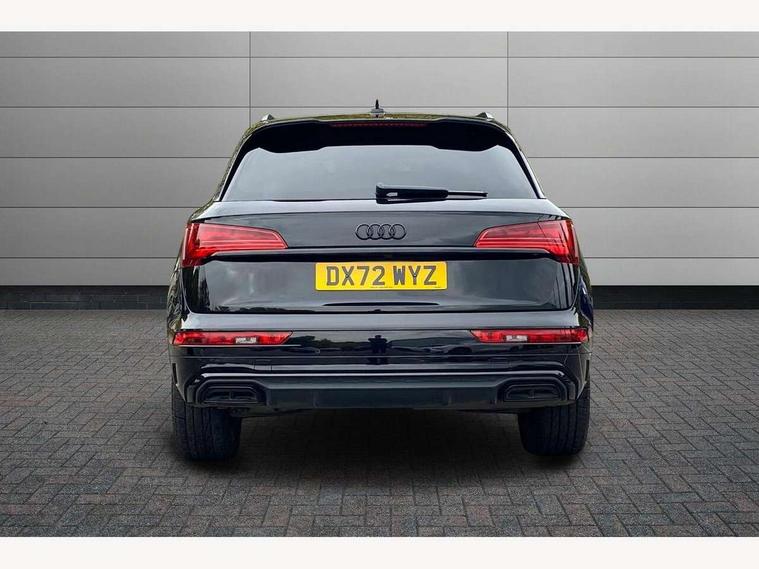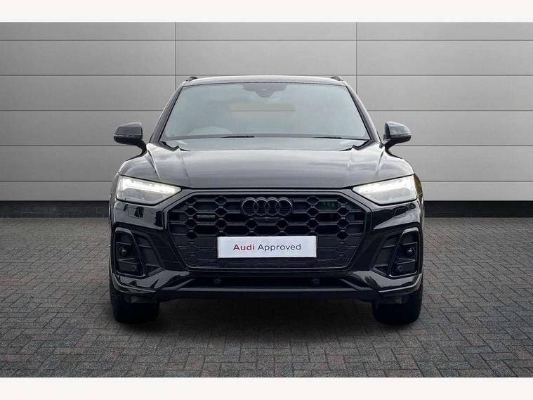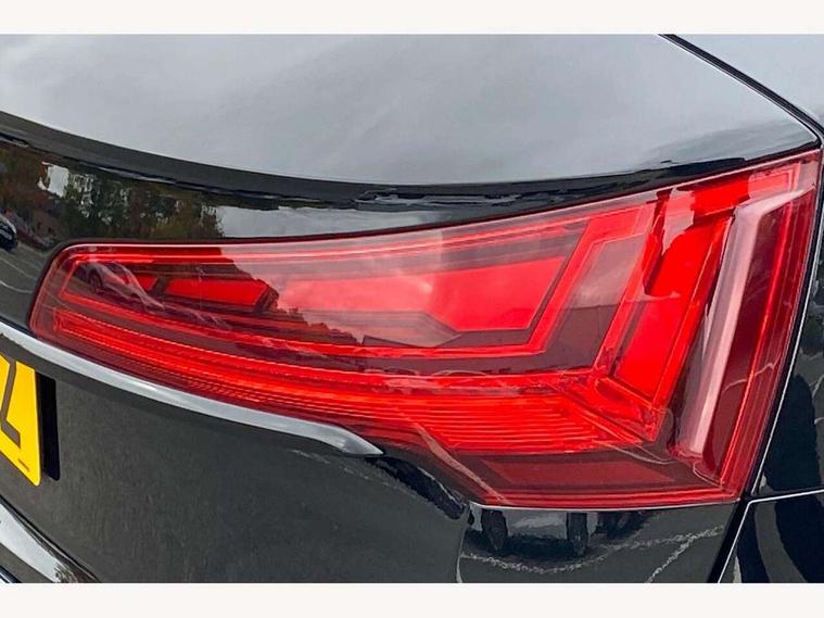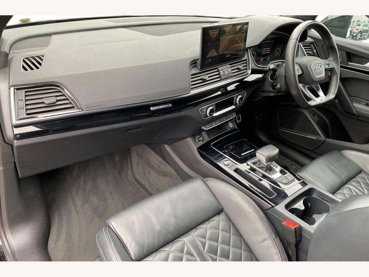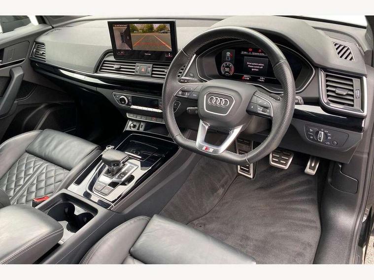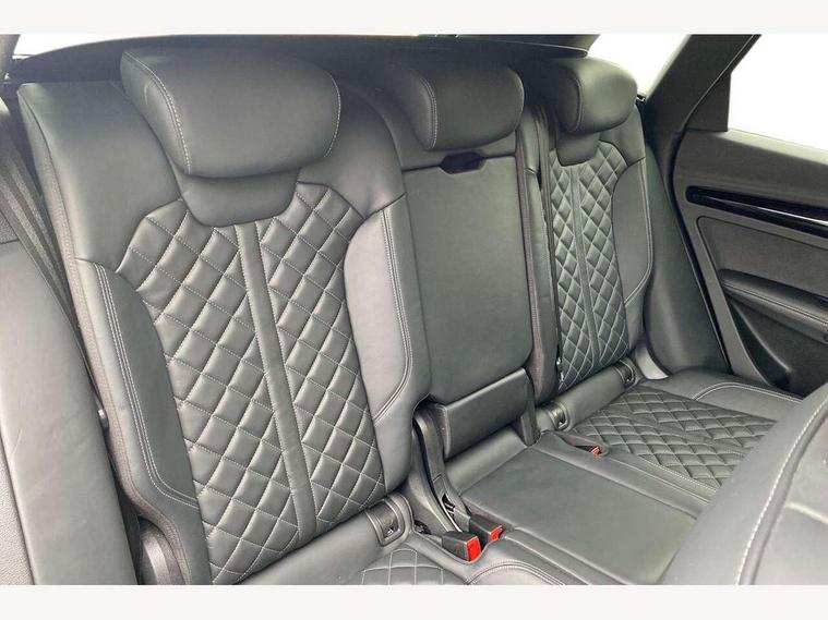 Audi connect safety and service (e-call), Audi connect with Amazon Alexa Integration, Audi drive select, Audi virtual cockpit plus with 12.3" screen and three different layout designs, Audi wireless smartphone interface, Automatic start-stop system with coasting functionality and efficiency programme, Bluetooth interface, Electro - mechanical power assisted steering, MMI navigation plus with 10.1" touch screen, Power tailgate, Reversing camera, Service interval indicator, Voice control system with Audi hotword activation "Hey Audi", Diesel particulate filter, Quattro on demand, S line sports suspension, 2 x USB charging port with aux input socket, DAB Digital radio, Acoustic windscreen, Audi matrix LED headlights with dynamic front and rear indicators, Audi rings at front and rear in black, Audi rings decal on rear doors, Auto dimming door mirrors, Auto dimming rear view mirror, Automatic headlights and windscreen wipers, Black door mirrors, Black roof rails, Body colour bumpers, Body colour underbody protection, Chrome plated exhaust trims, Daytime running lights, Door sills in Selenite silver, Electric adjustable/heated/folding door mirrors, Front air inlet surrounds in titanium black, Front and rear electric windows, Headlight washers, High gloss black B pillar trims and triangular rear door trim, High level LED brake light, Rear chrome trim strip below lights, Rear privacy glass and rear side windows, Rear side wing doors, Rear wiper, Roof bars, S Line rear spoiler, 3 rear headrests, 4 way electric lumbar support for driver and front passenger, 40:20:40 split folding 3 rear bench seat in 2nd row with rear centre armrest, Black cloth headlining, Comfort front centre armrest, Contrast stitching on seats, steering wheel and gear lever gaiter, Deluxe 3 zone electronic climate control, Electrically adjustable front seats, Fine Nappa leather upholstery with diamond pattern contrast stitching + front sport seats with S embossed logo, Front/rear floor mats, Gear lever in black leather, Heated front seats, Height adjustable front head restraints, Height/reach adjustable steering column, Illuminated door sill trims with S logo, ISOFIX child seat mounting and top tether, Rear seat bench plus, Removable luggage compartment floor, Single front passenger seat, Stainless steel pedals, Sunvisors with vanity mirrors, Black styling package - Q5 Edition 1, Extended interior upholstery pack - Q5, Extended LED Interior multi coloured Lighting Pack - Q5, 3 point seatbelts on all seats, 6 airbags - Driver, front passenger, curtain and side airbags, Electrically operated child locks on rear doors, Electromechanical parking brake, Electronic stabilisation control including ABS, ASR and EDL, Front and rear brake calipers painted in red, Front passenger airbag deactivation, Hill descent control, Hill hold assist, Multi collision brake assist, Pop-up bonnet for pedestrian protection, Pre sense city, Seat belt force limiter, Seatbelt monitoring, Tyre pressure warning, Warning triangle and first aid kit, Anti theft alarm, Anti-theft wheel bolts, Keyless Go access/ignition system, Remote central locking, Piano black finish inlay,