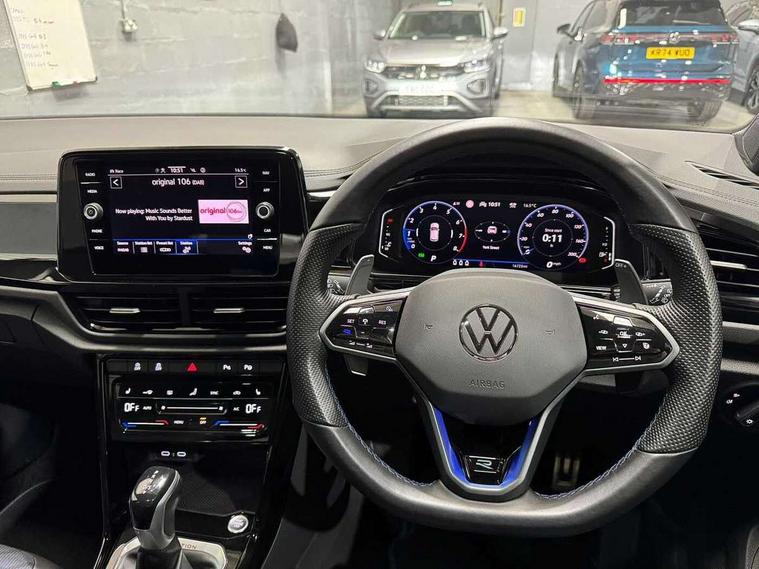 10.25" Digital cockpit pro, Bluetooth mobile phone interface, Driver alert system with fatigue detection, Driver tips and journey analysis, Emergency call service, Lane keeping system Lane Assist, Modified key software - reduce switch off time for key status change to Long no motion, Online services, Park assist including front and rear parking sensors, Service interval indicator, Tailgate/trunk lid release from outside, Think blue trainer driver tips and journey analysis, Warning sound and light for front seatbelts unfastened, Wireless app connect, Battery regeneration during braking, Four wheel drive, Start/stop function with battery regeneration, Diversity antenna for FM reception, Front and rear 6 speakers, Music playback - MP3, WMA and AAC files, Premium USB cable in choice of either Apple or Android smartphone compatibility, SD card slot, Simultaneous pairing of 2 compatible mobile devices, Title and cover art display, We Connect and We Connect Plus functionality, 3rd brake light, Auto dimming interior rear view mirror, Automatic hazard lights activation under emergency braking, Automatic headlight control with LED separate daytime running lights with coming/leaving home function, Extended roof spoiler, Exterior mirrors aspherical on driver side, convex on front passenger side, External USB type C socket and charging sockets, Front windscreen wiper with intermittent wipe and 4 position delay, Heated rear window, LED Plus headlamps, LED rear combination lamps, LED rear number plate lights, LED tail lamp rear comination lamps, Power windows with comfort operation and circuit breaker, Privacy glass for rear side windows and rear window, R-Line design body coloured bumpers, Rain sensor, Rear fog light on one side and reversing lights on both sides, Rear side wing doors, Rear wash/wipe with intermittent wipe setting, Remote electrically foldable door mirrors, puddle lights and reverse activated passenger's door mirror, 12V power socket in centre console, 3 rear head restraints, 3 seat bench in 2nd row, 4 load lashing points in luggage compartment, Air care climatronic air conditoning system with active combination filter and 2-zone temperature control, Ambient lighting - 10 colour (blue), Black roof lining, Chrome plated radiator grille inserts, air vent surrounds and light switch surrounds, Door and side trim panel with leatherette insert, Drawer under drivers seat, Driver/front passenger seat height adjustment, Front + rear carpet mats, Front centre armrest, Front cupholders x 2, Front footwell illumination, Front scuff plates with R logo in door apertures, Front sport seats, Heated leather wrapped multi function sports steering wheel with tiptronic, Instrument lighting, white adjustable panel illumination, Interior light delay, Isofix child seat preparation, Leather gearshift handle, LED interior light with switch off delay/dimmer and 2 front/rear LED reading lights, Load-through provision with cup holder when folded down ('Unsplit rear seat bench, split folding backrest, with centre armrest), Luggage compartment lighting, Lumbar support for driver's and front passengers seat, Non-folding front passenger seat backrest, R-logo stitching in floor mats, Single front passenger seat, Stainless steel pedals, Storage compartment in left and right luggage area, Storage compartment in rear doors, Storage compartments in driver and front passenger doors, Sunvisors with illuminated vanity mirrors, Variable boot floor, height adjustable and removable, Driver assistance pack without proactive passenger protection - T-Roc, R styling pack - T-Roc, 3 point height adj front seatbelts + pretensioners, 3 point seatbelts in outer rear with ECE label, ABS, Child locks on rear doors, Driver and front passenger airbag with front passenger airbag deactivation, Driver and front passenger safety-optimised head restraints, Drivers seatbelt reminder, Electronic parking brake, Electronic Stability Control (ESC) inc EDL (Electronic Differential Lock) and ASR (Traction Control), Front and rear passengers curtain airbag system including front side airbags, Front assist with city emergency braking and pedestrian monitoring, Front seat side impact airbags, Hill descent control, Hill start assist, Predictive pedestrian protection, Rear disc brakes, Single tone horn, Tyre pressure loss indicator, Volkswagen roadside assistance, Alarm with interior protection, Anti-theft alarm system with interior monitoring, backup horn, and towing protection, Keyless entry and start, Remote central locking with SAFELOCK, radio remote control with 2 remote control folding keys, Trims for alloy wheels,