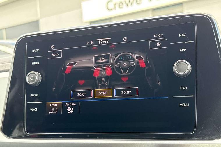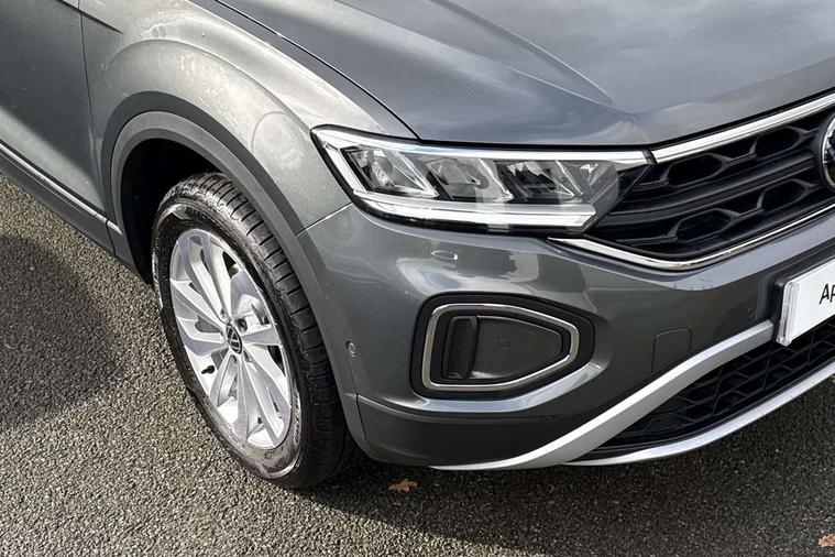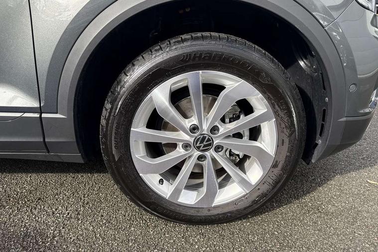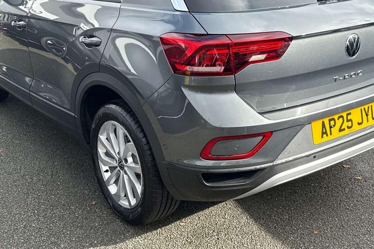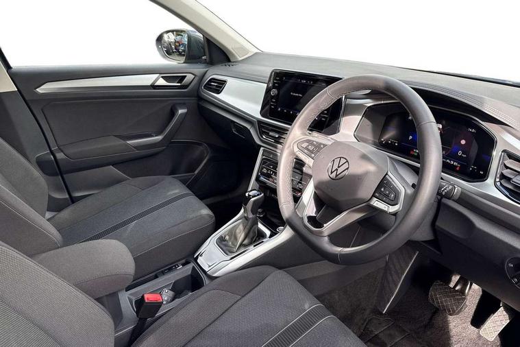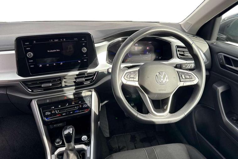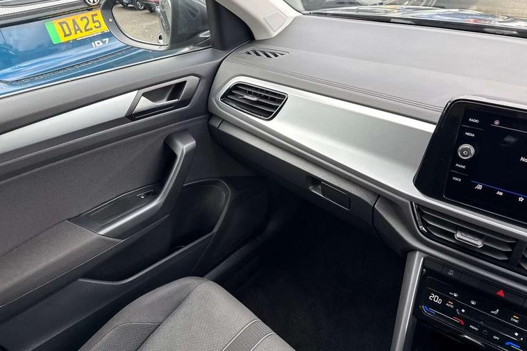 Advanced driver attention and drowsiness monitor, Dynamic road sign display, Emergency call service, Lane keeping system Lane Assist, Mobile phone interface, Modified key software - reduce switch off time for key status change to Long no motion, Online services, Park assist including front and rear parking sensors, Power assisted speed sensitive steering, Rear view camera, Service interval indicator, Tailgate/trunk lid release from outside, Think blue trainer driver tips and journey analysis, Warning sound and light for front seatbelts unfastened, Wireless app connect, Battery regeneration during braking, Front shock absorption, Rear shock absorption chassis with increased ride height, Start/stop function with battery regeneration, DAB Digital radio, Diversity antenna for FM reception, Music playback - MP3, WMA and AAC files, Premium USB cable in choice of either Apple or Android smartphone compatibility, SD card slot, Simultaneous pairing of 2 compatible mobile devices, Title and cover art display, We Connect and We Connect Plus functionality, Auto dimming interior rear view mirror, Automatic hazard lights activation under emergency braking, Automatic headlight control with LED separate daytime running lights with coming/leaving home function, Black roof rails, Body coloured bumpers and radiator grille with chrome trim and front fog lamps with chrome bezel, Body coloured exterior mirror housings and door handles, Electrically adjustable and heated door mirrors, Extended roof spoiler, Exterior mirrors aspherical on driver side, convex on front passenger side, External USB type C socket and charging sockets, Front windscreen wiper with intermittent wipe and 4 position delay, Heated rear window, LED 3rd brake light, LED rear combination lamps, LED rear number plate lights, Power windows with comfort operation and circuit breaker, Privacy glass for rear side windows and rear window, Rain sensor, Rear exhaust tailpipe, Rear fog light on one side and reversing lights on both sides, Rear side wing doors, Rear wash/wipe with intermittent wipe setting, Remote electrically foldable door mirrors, puddle lights and reverse activated passenger's door mirror, 12V power socket in centre console, 3 rear head restraints, 3 seat bench in 2nd row, 4 load lashing points in luggage compartment, Air care climatronic air conditoning system with active combination filter and 2-zone temperature control, Black stitching for floor mats, Ceramique roof liner, Cloth upholstery, Door and side trim panel in cloth, Drawer under drivers seat, Driver/front passenger seat height adjustment, Front centre armrest, Front comfort sports seats, Front cupholders x 2, Front reading light, Front seat back storage pockets, Glove compartment door with light, Instrument lighting, white adjustable panel illumination, Interior ambient lighting and surround lighting, Interior light delay, Isofix child seat preparation, Leather gearshift handle, Load-through provision with cup holder when folded down ('Unsplit rear seat bench, split folding backrest, with centre armrest), Luggage compartment lighting, Lumbar support for driver's and front passengers seat, Non-folding front passenger seat backrest, Single front passenger seat, Storage compartment in left and right luggage area, Storage compartment in rear doors, Storage compartments in driver and front passenger doors, Sunvisors with illuminated vanity mirrors, Variable boot floor, height adjustable and removable, Driver assistance pack without proactive passenger protection - T-Roc Life/Match, 3 point height adj front seatbelts + pretensioners, 3 point seatbelts in outer rear with ECE label, ABS, Child locks on rear doors, City emergency braking and pedestrian monitoring, Driver and front passenger airbag with front passenger airbag deactivation, Driver and front passenger safety-optimised head restraints, Drivers seatbelt reminder, Electronic parking brake, Electronic Stability Control (ESC) inc EDL (Electronic Differential Lock) and ASR (Traction Control), Front and rear passengers curtain airbag system including front side airbags, Front disc brakes, Hill start assist, Predictive pedestrian protection, Rear disc brakes, Two tone horn, Tyre pressure loss indicator, Volkswagen roadside assistance, Alarm with interior protection, Keyless locking and starting system keyless access with safelock, Pewter matt decorative inserts for intrument panel, centre console and door panels at the front, Trims for alloy wheels,