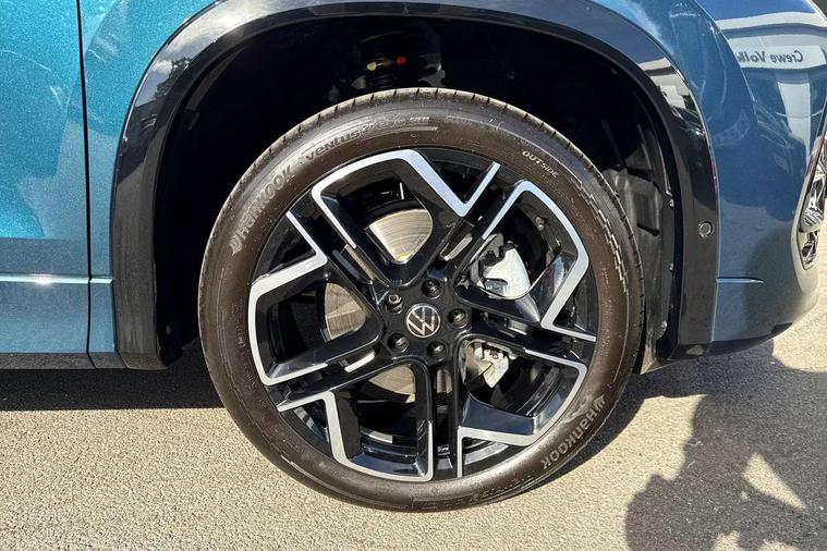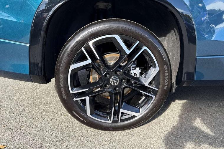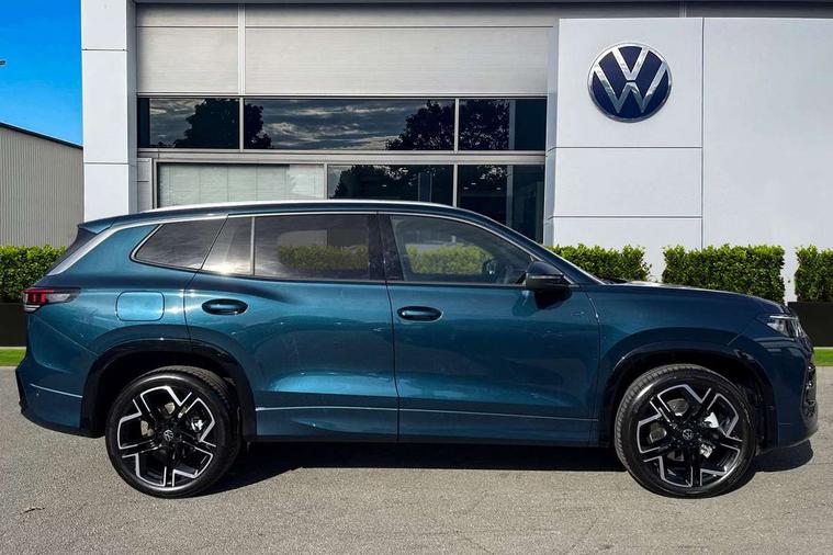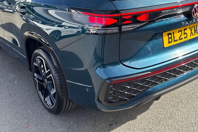Adaptive cruise control (ACC), Digital Cockpit Pro - 10.25" high resolution dash display screen with customisable menus and information, Driver alert system, Driver attention monitoring system, Dynamic road sign display, E-Sim card for online connectivity, eCall emergency call system, Lane change system, Side assist, Rear traffic alert and Exit warning system, Multifunction front facing camera, Oncoming vehicle braking when turning including swerve support, Progressive steering, Start/stop system with regenerative braking, Voice activation spoken voice commands for telephone and navigation system, Warning signal and warning light for front and rear seatbelts not fastened, Wireless App-Connect, Adaptive chassis control DCC pro includes driving mode selection, Charging cable Mode 2 Type 2 / G (10A), Charging cable Mode 3 Type 2 / 3 (16A), Front shock absorption G08, Front wheel drive, Rear shock absorption, Digital radio reception (DAB), Diversity antenna for FM reception, Air intake with Chrome trim, Auto dimming interior rear view mirror, Automatic headlight control system, Body colour door handles, Chrome moldings on the side windows, Coming/leaving home lighting function, Dynamic headlight range control with dynamic cornering light, Exterior mirrors convex on the left and aspherical on the right, Heat insulating glass in side and rear windows, Illuminated Volkswagen logo rear with animation, Laminated safety glass winshield, heat insulating, LED 3rd brake light, LED separate signature day time running light, Puddle lights, Rain sensor windscreen wipers, Rear fog light on one side, reversing light on both sides, Rear side wing doors, Rear wiper, Reverse activated passenger's door mirror, Surround lighting with welcome light, Tilting and sliding panoramic sunroof with rear panoramic sunroof, Volkswagen logo in front, illuminated lighting animation with wake up/goodbye scenario and illuminated door handles, 10 colour interior ambient lighting, 12V outlet in center console rear and in luggage compartment, 3 rear headrests, 3 rear seat bench in 2nd row, split folding, longitudinally movable and folding with load-through hatch, Black roof lining, Brushed stainless steel pedals, Carpet mats, front and rear, Centre console with illuminated storage compartment with sliding cover and two drinks holders, Chrome elements on the mirror switch and power window switches and door pulls, Door and side trim panel insert in Art velour, Flat luggage compartment floor, Front centre armrest, Front scuff plates in alumium, ISOFIX anchors for child seats on outer rear seats and front passenger seat compatible with i-Size, Mechanical rear seat release, Power adjustable lumbar support in front, Single front passenger seat, Sports comfort seats in front, Sun visors with illuminated vanity mirrors, Comfort package with park assist pro - Tayron, 3 Point seat belts in front with pretensioners, 3 point seatbelts in outer rear with ECE label, Autonomous emergency braking front assist with pedestrian and cyclist monitoring, Driver and front passenger airbag with front passenger airbag deactivation, Electronic parking brake with auto hold, First aid kit with warning triangle and safety vest, Front and rear curtain airbags, Front and rear side airbags, Front centre airbag, Front disc brakes, Hill start assist, Rear disc brakes, Two tone horn, Decorative material set R-Line, Interior door handle in matte chrome, Tool kit for tyre mobility set, Tyre mobility kit including compressor and sealing foam. In lieu of spare wheel,