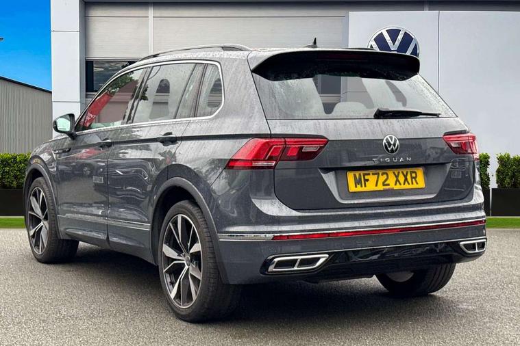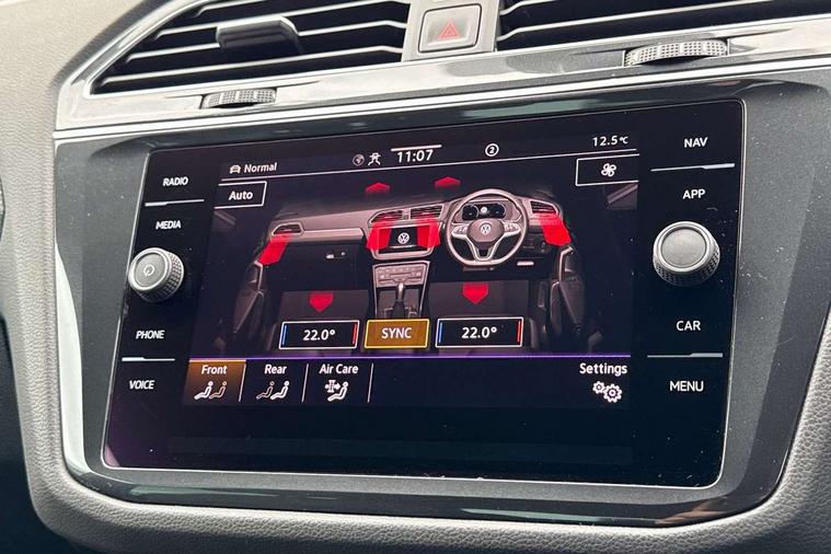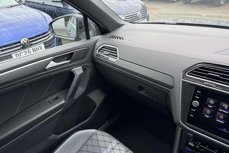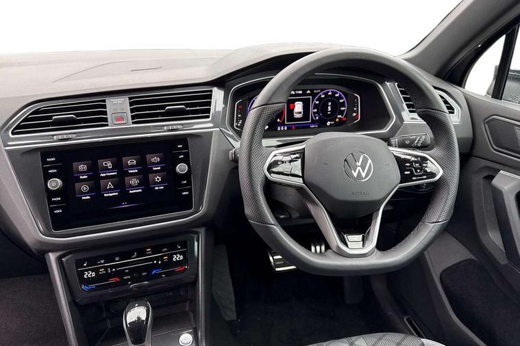 Adaptive cruise control ACC stop and go including speed limiter, App-Connect incl. App-Connect Wireless for Apple CarPlay and Android Auto, Bluetooth phone integration system, Distance control assist, Driver alert system, Driver profile selection, Dynamic road sign display, eCall emergency call system, Electromechanical speed sensitive power steering, Engine start/stop button, Lane keeping system Lane Assist, Lights on warning, Multifunction front facing camera, Outside temperature display, Premium multifunction display with multi colour display, Remote control boot opening, Rev counter, Revision / skills operating concept travel assistant, Service interval indicator, Speed limit display, Start/stop system with regenerative braking, Trip computer, Warning sound and light for doors and tailgate open, Battery regeneration during braking, Diesel particulate filter, Misfuel prevention device for diesel engine, Selective Catalytic Reduction, XDS electronic differential lock for improved traction and handling, 4 X 20 watt output, 8 Speakers, Diversity antenna for FM reception, Radio, SD card slot, Simultaneous pairing of 2 compatible mobile devices, SMS functionality - read, compose and send SMS messages using touch-screen display, Title and cover art display, USB C ports, Auto dimming interior rear view mirror, Automatic headlight control system, Body colour door handles, Chrome moldings on the side windows, Coming/leaving home lighting function, Dynamic headlight range control, Front and rear electric windows, Heated rear window, High level 3rd brake light, Laminated safety glass windshield, heat and sound insulating, LED headlamps with LED separate daytime running light and dynamic cornering light, LED rear combination lamps, LED rear number plate lights, License plate carrier in front and rear, Poor weather light and cornering light, R Line body kit, R Line side sills, Rain sensor windscreen wipers, Rear exhaust tailpipe, Rear fog lamp, Rear side wing doors, Rear spoiler in R style, Rear windscreen washer and wiper with interval delay, Side and rear windows in heat insulating glass, Trailer Stability Programme, Unique R Line badging, Windscreen wipers/ intermittent wipe + 4 position delay, 12V outlet in center console rear and in luggage compartment, 12V outlet in front and tray, 2 cup holders in front, 2 LED front reading lights, 2 LED rear reading lights, 3 bench rear seats in 2nd row, 3 rear headrests, 4 load lashing points, 40:20:40 split folding rear seats, Air Care Climatronic 3 zone automatic climate control with enhanced air filter and controls in the rear, Backrest release for left front seat, Black headlining, Brushed stainless steel pedals and footrest, Carpet mats in front and rear with decorative stitching in Gray, Climate control unit rear with touch function, Door and side trim panel in foam film, insert in leatherette, Front centre armrest, Front footwell illumination, Front seats head restraints (x-adjustment), Height adjustable front seats, Height/reach adjust steering wheel, Instrument lighting white adjustable panel illumination, Interior light with delay, Isofix Preparation 2 Rear child seats, Leather gear knob, Lockable cooled glovebox, Luggage compartment lighting, Luggage net, Rear bench seat asymetrically split folding, longitudinally movable and folding with load-through hatch and center armrest, Remote unlocking for rear seat backrest, Removable luggage cover, Removable rear headrests, Safety optimised front head restraints, Single front passenger seat, Sliding/reclining rear seats, Standard rear seat release, Storage compartment in driver's door, Storage compartment in passenger's door, Storage compartment in rear doors, Storage compartments in luggage area left and right, Storage tray on dashboard, Sun visors with illuminated vanity mirrors, Top front comfort seats, Variable boot floor, height adjustable and removable, Driver assistance pack plus - Tiguan DSG, 3 point seat belt for centre rear seats, 3 point seat belts with seat belt pretensioners for the outer rear seats, Active bonnet, Curtain airbags for front and rear passengers, Driver/Front Passenger airbags, Drivers knee airbag, Electronic parking brake with auto hold, Electronic Stability Control with driver steering recommendation, ABS, ASR, EDL, EDTC and trailer stabilization, Front assist with autonomous emergency braking (for Adaptive Cruise Control ACC up to 130 mph), Front disc brakes, Front passenger airbag deactivation, Front side airbags, Height adjustable front 3 point seatbelts + pretensioners, Hill hold control, Manual child proof rear door locks, Pedestrian monitoring system, Power assisted brakes, Proactive passenger protection system in combination with front assist, Rear disc brakes, Rigid safety cell with front and rear crumple zones, Two tone horn, Warning sound and light for front seat belts if unfastened, Anti theft alarm system with interior monitoring, backup horn and towing protection, Anti theft wheel bolts, Electronic engine immobiliser, Tool kit,
