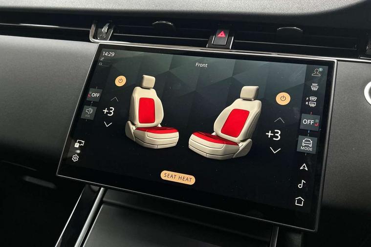 11.4" touch screen, Adaptive cruise control, Android Auto, Apple car play, Blind spot assist, Bluetooth connectivity, Brake pad wear indicator warning light, Driver condition monitor, eCall emergency system, Eco mode, Electronic power assisted steering (EPAS), Front and rear parking aid, InControl remote, Interactive driver display, Land Rover InControl apps, Lane keep assist, Pivi pro connected includes diamond pivi variant, smart settings, connected navigation pro, nuance speech licence, Powered tailgate/boot lid, Rear collision monitor, Rear traffic monitor, Traffic sign recognition with adaptive speed limiter, Voice control system, Wireless device charging, All terrain progress control, Electric rear axle drive, Home charging cable, Large fuel tank, Passive suspension, Public charging cable, Terrain Response 2, Digital Audio Broadcast radio-DAB, Steering wheel mounted controls, Acoustic laminated windscreen, Auto headlights, Auto high beam assist, Automatic headlight levelling, Electric windows with one touch open/close and anti trap, Flush deployable exterior door handles, Front and rear recovery eyes, Heated rear window with timer, Heated washer jets, Heated windscreen, LED headlights with signature DRL and LED tail Lights, Power fold, auto-dimming, heated door mirrors with approach lights and auto dimming driver side, Rain sensing windscreen wipers, Rear animated directional indicators, Rear fog lights, Rear side wing doors, Rear wiper, Side repeater indicators in mirror, Tailgate spoiler, Third brake light, Winter wiper park position, 12 way driver memory and 10 way passenger electric front seats with 2 way manual headrest + 4 way lumbar support, 40:20:40 split folding rear seats with centre headrest and armrest, Ambient interior lighting, Bright metal pedals, Carpet mats, Chrome tread plates with range rover branding Includes stainless steel loadspace scuff plate with etched graphic, Customer configurable single point entry, Front and rear cupholders, Heated front seats, Heated steering wheel, Isofix system on outer rear seats, Manually adjustable steering column, Overhead lighting console, Overhead stowage for sunglasses, Passive front head restraints, Rear air vents, Rear head restraints, Satin chrome gearshift paddles, SE Grained leather upholstery, Single passenger seat, Standard steering wheel with Moonlight Bezel, Sunvisors with illuminated vanity mirrors, Twin sliding front centre armrest, Online pack with data plan - Evoque, Power socket pack 2 - Evoque, 3 rear 3 point seatbelts, Anti-lock braking system (ABS), Brake hold function, Customer configurable autolock, DSC - Dynamic Stability Control, Electronic brake force distribution, Electronic parking brake, Electronic traction control, Emergency braking, Front and rear seatbelt reminder, Hill descent control, Hill launch assist, Low traction launch, Occupant protection assist, Passenger seat occupant detector, Power operated child locks, Roll stability control, Six airbags - Driver and passenger airbags/driver knee airbag/front side airbag and curtain airbags, Torque vectoring brake, Tyre pressure monitoring system, Alarm, Immobiliser, Intrusion sensor, Keyless entry, Locking wheel nuts,
