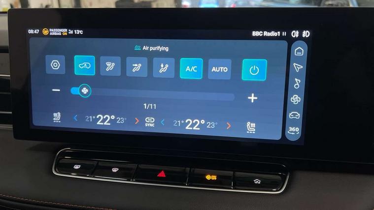 Driver attention alert, 12.3" colour touchscreen, 12.3" Virtual driver information display, 360 degree parking camera, Adaptive cruise control, Android Auto, Apple CarPlay, Blind spot detection, Bluetooth connectivity, Driving modes, Emergency call service, Forward collision warning, Front parking sensors, Intelligent speed limit assist, iSmart, Lane change assist, Lane keep assist system (LAS) with Lane departure warning system (LDWS), Live services, PAS, Rear cross traffic alert, Rear parking sensors, Satellite navigation system, Smart power tailgate, Traffic jam assist, Trip computer, Wireless charging, 4 USB ports 2 front and 2 rear, 8 Speaker audio system, DAB audio, Auto dimming rear view mirror, Automatic headlights, Electric adjustable/heated/folding door mirrors with memory, Follow me home headlights, Front and rear aero wiper, Front and rear electric windows with one-touch up/down, Front fog lights, Intelligent high beam, LED 3rd brake light, LED daytime running lights, LED Headlights, LED rear lights, Rain sensing wipers, Rear privacy glass, Rear side wing doors, Side steps, Silver roof rails, Vehicle to Load, 12V power sockets, 2nd row 60/40 split fold seat, 3 rear headrests, 3 seat bench in 2nd row, 3 stage heated front seats, 4 way electric adjustable passenger seat, 6 way electric adjustable drivers seat with lumbar adjustment and memory function with easy access, Dual zone automatic air conditioning, Front and rear reading lights, Front centre sliding armrest with storage compartment, Front headrests, Height and reach adjustable steering wheel, ISOFIX restraints on outer rear seats x2, Metal sports pedals, Multi function steering wheel, Single passenger seat, 3x3 point rear seatbelts, ABS/EBD, Active emergency braking with pedestrian/Bicycle detection, Anti rolling protection, Door open warning, Drivers seatbelt reminder, Dual front airbags, Electric parking brake with auto hold function, ESP, Front and rear passenger seat belt reminder, Front centre airbag, Front passenger airbag deactivation switch, Front seat belt height adjuster, Front seatbelts (3-point + pretensioner + load limiter), Front side airbags, Hill descent control, Hill launch assist, Manual rear child locks, Rear outer seatbelt pretensioner and load limiter, Side curtain airbags, Tyre pressure monitoring system, Acoustic vehicle alert system (AVAS), Alarm system and engine immobiliser, Keyless entry and push button start system, Remote central locking, Speed sensing door locks, 19" Blade diamond cut alloy wheels, Tyre repair kit,