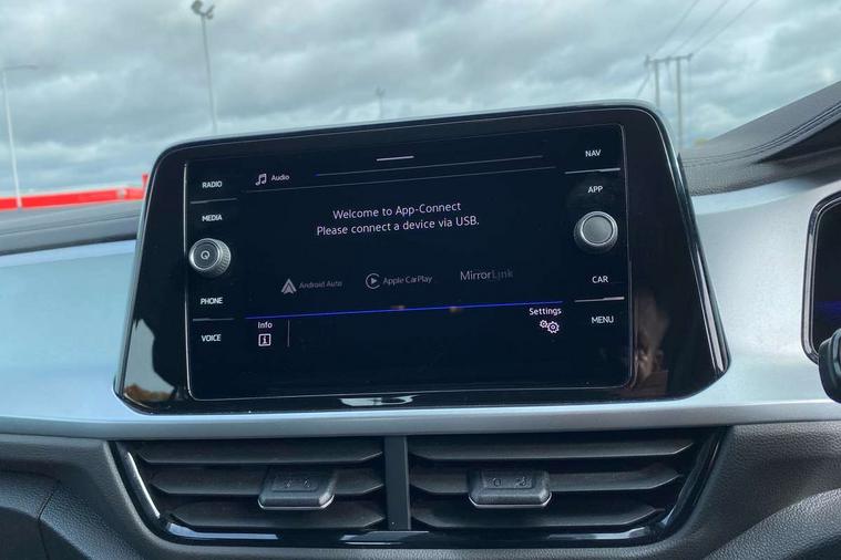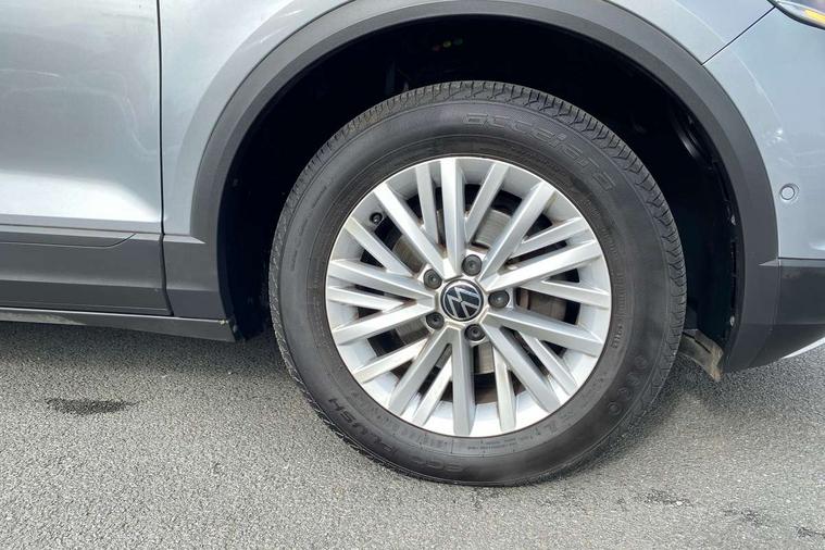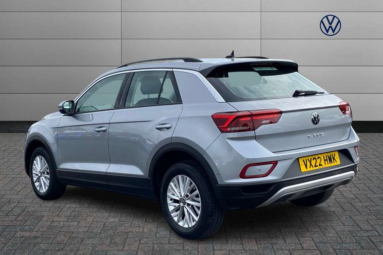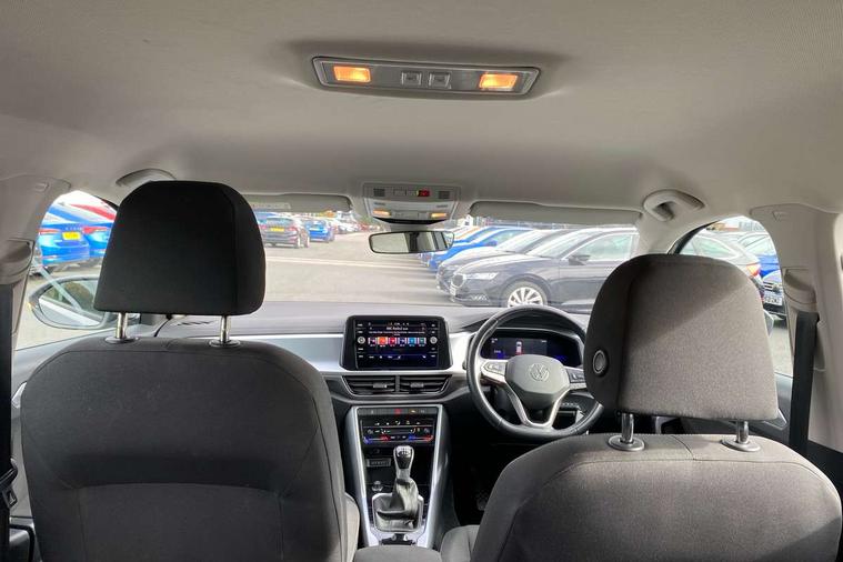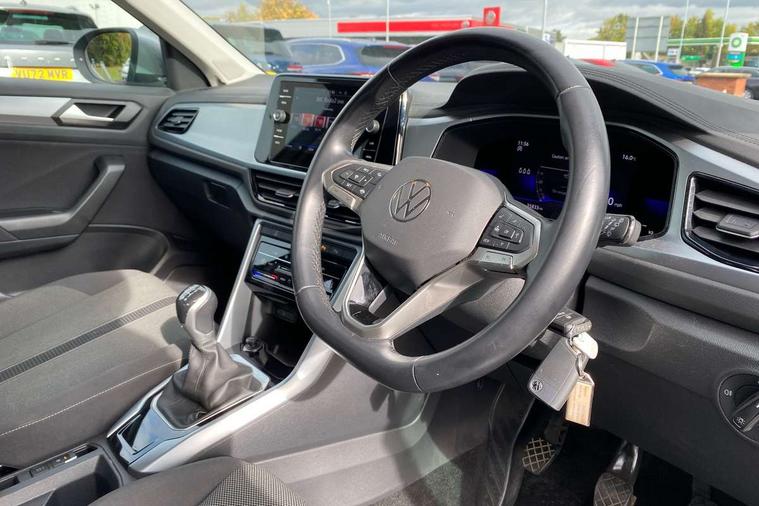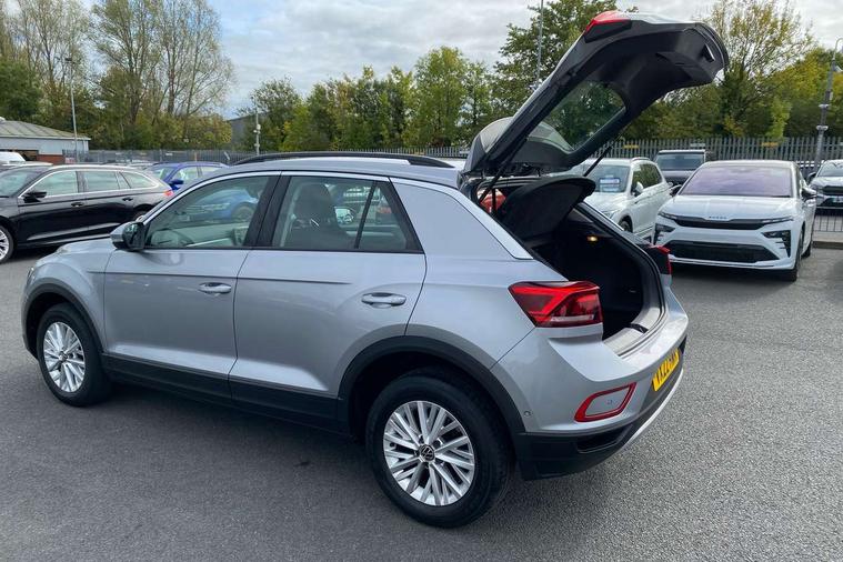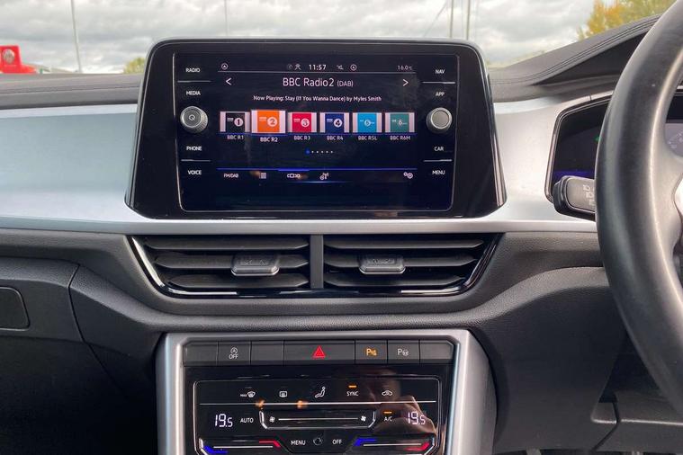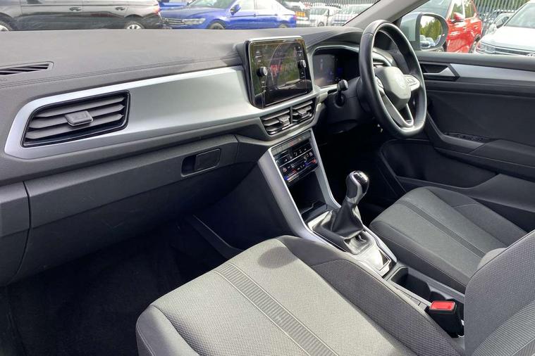 Bluetooth mobile phone interface, Driver alert system with fatigue detection, Driver tips and journey analysis, Emergency call service, Lane keeping system Lane Assist, Modified key software - reduce switch off time for key status change to Long no motion, Online services, Park assist including front and rear parking sensors, Power assisted speed sensitive steering, Service interval indicator, Tailgate/trunk lid release from outside, Think blue trainer driver tips and journey analysis, Warning sound and light for front seatbelts unfastened, Wireless app connect, Battery regeneration during braking, Front shock absorption, Rear shock absorption chassis with increased ride height, Start/stop function with battery regeneration, DAB Digital radio, Diversity antenna for FM reception, Front and rear 6 speakers, Music playback - MP3, WMA and AAC files, Premium USB cable in choice of either Apple or Android smartphone compatibility, SD card slot, Simultaneous pairing of 2 compatible mobile devices, Title and cover art display, We Connect and We Connect Plus functionality, 3rd brake light, Auto dimming interior rear view mirror, Automatic hazard lights activation under emergency braking, Automatic headlight control with LED separate daytime running lights with coming/leaving home function, Black roof rails, Body coloured bumpers and radiator grille with chrome trim and front fog lamps with chrome bezel, Body coloured exterior mirror housings and door handles, Extended roof spoiler, Exterior mirrors aspherical on driver side, convex on front passenger side, External USB type C socket and charging sockets, Front windscreen wiper with intermittent wipe and 4 position delay, Heated rear window, LED Headlights, LED rear combination lamps, LED rear number plate lights, LED tail lamp rear comination lamps, Power windows with comfort operation and circuit breaker, Rain sensor, Rear exhaust tailpipe, Rear fog light on one side and reversing lights on both sides, Rear side wing doors, Rear wash/wipe with intermittent wipe setting, Remote electrically foldable door mirrors, puddle lights and reverse activated passenger's door mirror, 12V power socket in centre console, 3 rear head restraints, 3 seat bench in 2nd row, 4 load lashing points in luggage compartment, Air care climatronic air conditoning system with active combination filter and 2-zone temperature control, Ambient lighting with mirror logo projection, Cloth upholstery, Door and side trim panel in cloth, Drawer under drivers seat, Driver/front passenger seat height adjustment, Front centre armrest, Front comfort sports seats, Front cupholders x 2, Front reading light, Instrument lighting, white adjustable panel illumination, Interior light delay, Isofix child seat preparation, Leather gearshift handle, Load-through provision with cup holder when folded down ('Unsplit rear seat bench, split folding backrest, with centre armrest), Luggage compartment lighting, Lumbar support for driver's and front passengers seat, Non-folding front passenger seat backrest, Single front passenger seat, Storage compartment in left and right luggage area, Storage compartment in rear doors, Storage compartments in driver and front passenger doors, Sunvisors with illuminated vanity mirrors, Variable boot floor, height adjustable and removable, Driver assistance pack without proactive passenger protection - T-Roc, 3 point height adj front seatbelts + pretensioners, 3 point seatbelts in outer rear with ECE label, ABS, Child locks on rear doors, Driver and front passenger airbag with front passenger airbag deactivation, Driver and front passenger safety-optimised head restraints, Drivers seatbelt reminder, Electronic parking brake, Electronic Stability Control (ESC) inc EDL (Electronic Differential Lock) and ASR (Traction Control), Front and rear passengers curtain airbag system including front side airbags, Front assist with city emergency braking and pedestrian monitoring, Front disc brakes, Front seat side impact airbags, Hill start assist, Predictive pedestrian protection, Rear disc brakes, Single tone horn, Tyre pressure loss indicator, Volkswagen roadside assistance, Alarm with interior protection, Anti-theft alarm system with interior monitoring, backup horn, and towing protection, Remote central locking with SAFELOCK, radio remote control with 2 remote control folding keys, Pewter matt decorative inserts for intrument panel, centre console and door panels at the front, Trims for alloy wheels,
