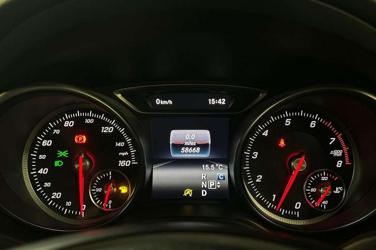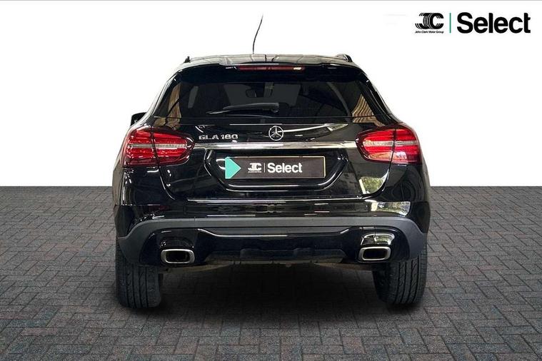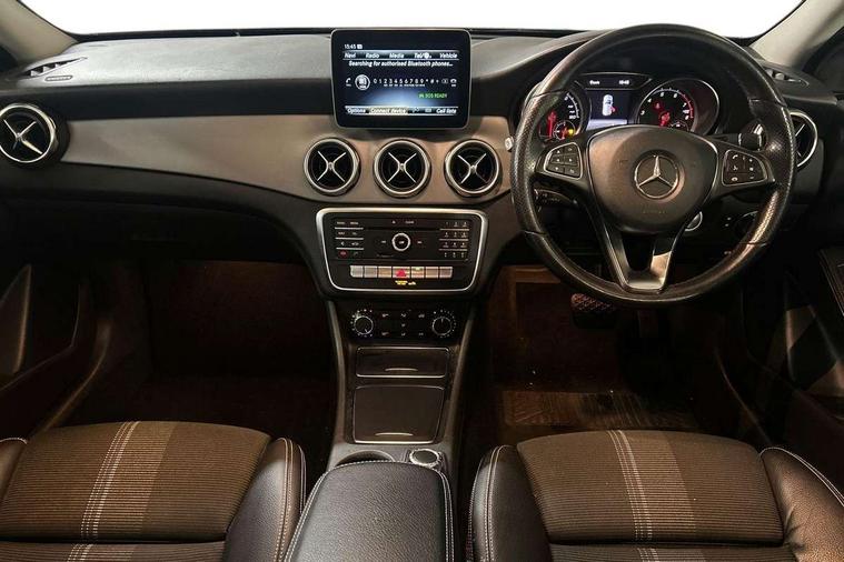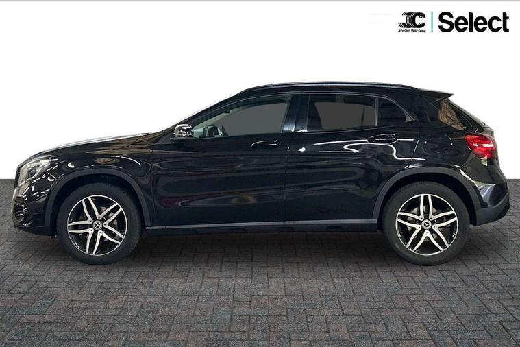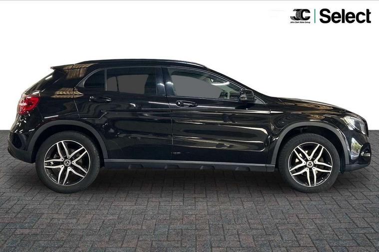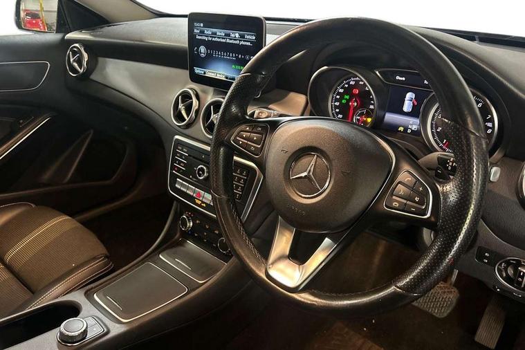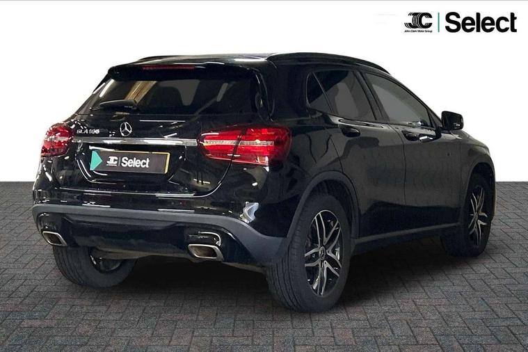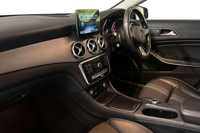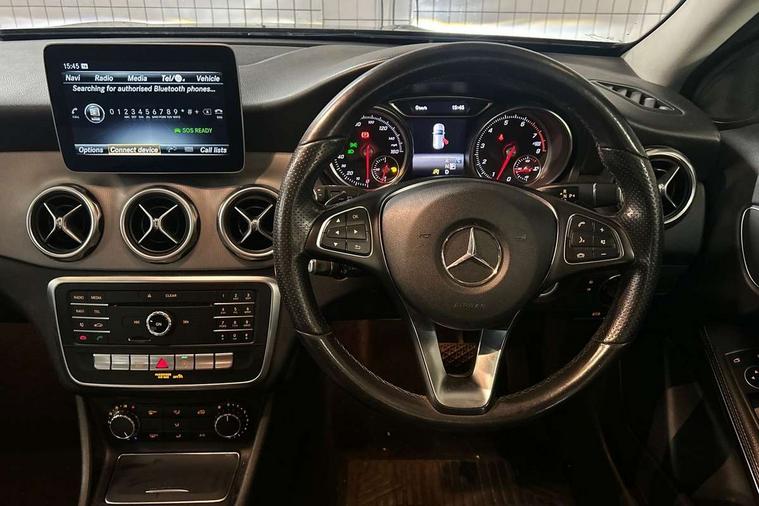 180 degree reversing camera with parking guidelines, 4 analogue dials and needles suspended in six o'clock position, Attention assist, Cruise control + speed limiter, DYNAMIC SELECT with a choice of driving modes (ECO, Comfort, Sport and Individual), ECO start/stop function, Fluid level warning indicator for fuel, oil, coolant and washer fluid, Instrument cluster, Mercedes me connect including emergency call system, accident recovery, breakdown and maintenance management, Multi function trip computer, Outside temperature gauge, Service indicator (ASSYST), Smartphone integration with Apple CarPlay and Android auto, Speed sensitive steering with servo assistance, Off road comfort suspension, 8" media display touchpad, Audio 20 radio/single CD/MP3, 6 speaker, telephone pad, twin radio tuner, Bluetooth, 2 USB, SD card slot, preparation for Garmin Map Pilot Nav System, Media interface, Adaptive brake lights, Automatic headlamp activation, Black beltline strips, Body colour door handles with chrome inserts, Electric front windows, Electrically adjustable and heated door mirrors, Front and rear bumper with simulated under guard in high gloss black, Front door sills with Mercedes-Benz lettering, Front fog lights, Full LED tail lamps, Heat insulating dark tinted privacy glass from the B-pillar backwards, Heated glass rear windscreen + timer control, LED high performance headlamps, LED third brake light, Rain sensor windscreen wipers with two sensitivity stages, Rear windscreen intermittent wiper with automatic activation when reversing, Roof mounted radio aerial, Two pipe visible exhaust system with chrome tailpipe tips, 1/3 to 2/3 split folding rear seats, 12V power socket in centre console, 12V socket in luggage compartment, 3 spoke and 12 button multifunction steering wheel trimmed in nappa leather with perforated grip area, Air conditioning thermatic, Air vents with chrome surround and cruciform nozzles, Ambient lighting in front headrests, Artico man-made leather/Maringa fabric upholstery, Auto Mercedes-Benz child seat recognition sensor, Front centre armrest with stowage, Front footwell lights, Front seat cushion length adjustment, Gearshift paddles, Grey roof lining, Illuminated door sills, Illuminated glove compartment stowage, Interior door handle illumination, Luggage compartment cover, Manually adjustable front seats, Manually height and reach adjustable steering column, Rear footwell lights, Rear Reading Lamps, Sports seats with integrated head restraints, Stowage compartment lighting, Sunvisors with illuminated vanity mirrors, Twin front cup holders, Two outer rear seat isofix and top tether child seat fixing points, White courtesy and red warning lights in front doors and boot lid, Comfort seat pack - GLA Class, Night pack - GLA Class Urban Edition, 3 rear three point seatbelts, Active bonnet pedestrain safety measure which detects an impact and raises bonnet by 65mm, Active brake assist, Adaptive brake assist with hold function and hill start assist, Anti-lock braking system (ABS), Black seat belts, Childproof locks manually operated for rear doors and electrically operated for rear power windows, Crash responsive emergency lighting, Drivers knee airbag, Dual stage driver and front passenger airbags, Electronic parking brake, Electronic stability programme with acceleration skid control, Front and rear seatbelt reminder, Front passenger seat occupancy sensor, Front side airbags, Tyre pressure monitoring system, Warning triangle and first aid kit, Window airbags, Anti-theft alarm system/interior protection with tow-away protection and interior monitoring systems, Chrome surround electric key, Keyless Go starting function, Remote central locking, Sail pattern dash trim, 18' 5 twin spoke light alloy wheels painted in black with a high sheen finish, Tirefit tyre sealant kit,