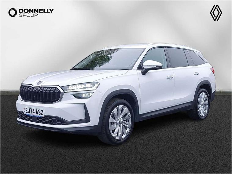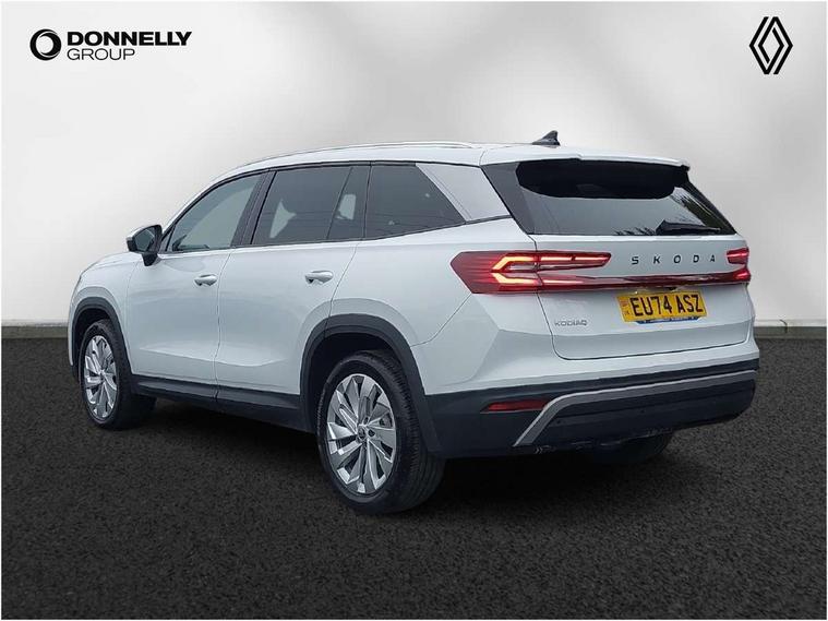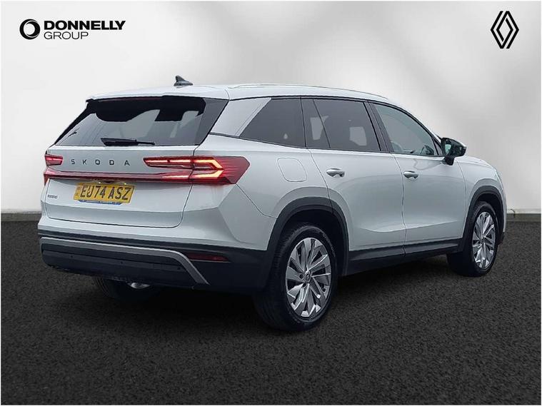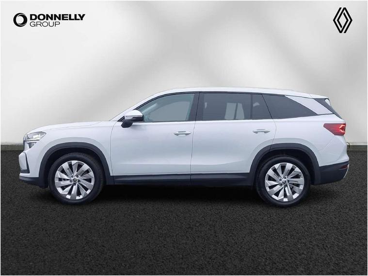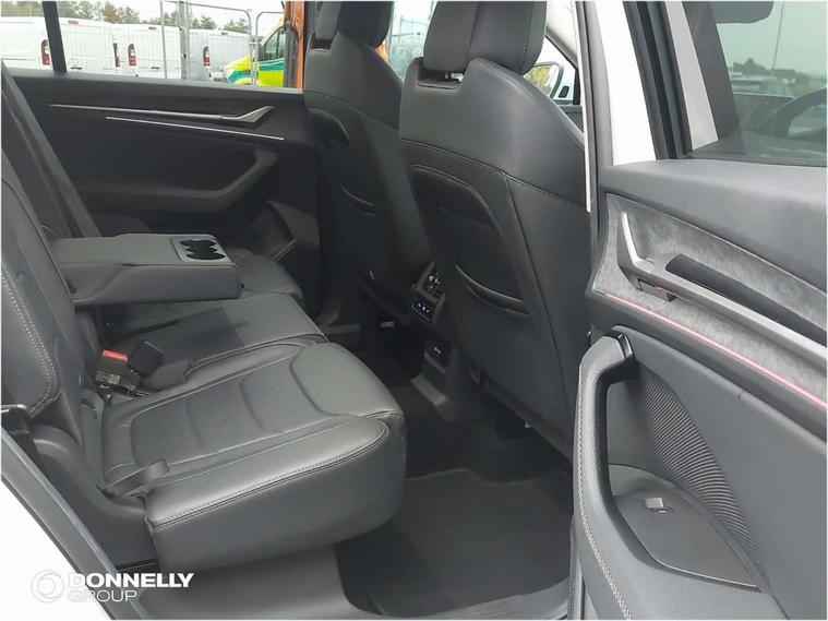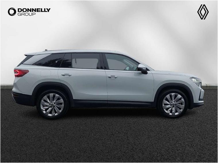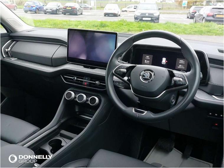 13" satellite navigation touchscreen display, Blind spot detection with door exit warning, Bluetooth system, ChatGPT functionality, Drive mode selector, Driver alert with fatigue sensor, Driver drowsiness alert system, Dry display cleaner, e call+, Front cross traffic assist, Lane assist, PAS, Rear traffic assist, Tailgate unlocking from outside, Traffic sign recognition, USB C Port x 2 in front centre console, Virtual Cockpit - 10.25" digital display, Voice control system, Wireless charging for two smartphones (15W) with cooling function, Wireless SmartLink for Apple CarPlay and Android Auto, Stop/start function, 2x USB-C in the rear, DAB Digital radio, Aero front windscreen wipers with intermittent function, Auto dimming rear view mirror, AWL (all weather lighting) and all weather light with cornering function, Black wheel arch surrounds, Body colour bumpers, Body colour door mirrors and handles, Cornering light and poor weather light, Electric folding /adjustable/separted heated/folding door mirrors, auto dimming with boarding sports and memory function, Electric front and rear windows, Exterior black decorative trims, Heat insulating glass in windshield, Heated rear window, Ice scraper in fuel tank cap, Invisible tailpipe, LED daytime running lights, LED rear fog light, LED third brake light in rear spoiler, Light assistant with automatic headlight control and coming home feature, Logo projection in door mirrors, Privacy glass, Rear side wing doors, Rear spoiler, Rear window wiper, Red decorative strip between rear LED lights, Safety reflectors on front and rear doors, Window control switches with black trim, Windscreen wipers with rain sensor, Without engine designation, 1.5l bottle holder points in all door, 12V socket in boot, 1x centre rear reading light, 2 seat bench in 3rd row, 3 configurable smart dials with 32mm coloured display, 3 seat bench in 2nd row, 4 foldable roof handles with rear coat hooks, Ambient interior lighting - Dashboard, front-door stowage compartments, front and rear door panels and footwell lighting, Automatic gear selector on steering wheel, Chrome interior door handles, Driver/front passenger reading lights, Fabric headlining, Fixed bench 40:60:40 split folding backrests, Front and rear floor mats, Front centre armrest with jumbo box storage compartment, cup holder and 12V socket, Front courtesy lights, Height adjustable front headrests, Isofix child seat fittings in outer middle row rear seats and front passenger with top tether, Manually adjustable steering column, Pollen filter, Rear centre armrest with cupholders, Rear seat boot backrest release, Retractable luggage compartment cover, Single front passenger seat, Sliding trunk cover, Small Bags on the inner sides of the front backrests, Storage pocket including mobile phone pockets on the backs of the front seats, Sunvisors with illuminated vanity mirrors, Three rear height adjustable headrests, Ticket holder on A Pillar, Tri zone climate control, Umbrella in door panel x1 made from sustainable materials, Upper and lower glovebox with card holder and coin compartment, USB C port by rear view mirror for charging only (15W), Exterior styling pack - Kodiaq, Auto door release and activation of warning lights in the event of an accident, Driver and front passenger airbag with knee airbag and front passenger airbag deactivation, Electric child locks, Electronic parking brake, ESC (incl. ABS+EMD+MSR+ASR+EDL+HBA+DSR+RBS+ESBS+MCB+TSA+XDS), Front assist with braking reaction to vehicles, pedestrians and cyclists, Front disc brakes, Fuel cut off safety device, Height adjustable front 3 point seatbelts + pretensioners, Hill hold control, Junction assist with automatic emergency braking, Rear disc brakes, Safety vest holder in door, Seat belt reminder for all seats, Three point rear seat belts, Two tone horn, Tyre pressure monitor, Anti-theft wheel bolts, Immobiliser, Remote central locking with 2 keys, Breakdown kit,