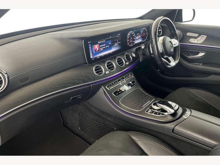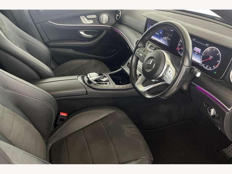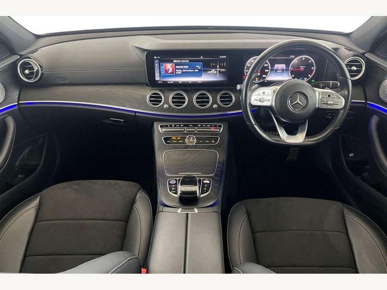 Active parking assist and 360 camera, Analogue clock, Attention assist, Blind spot assist, Boot release from drivers seat, Brake wear warning light, COMAND online HDD navigation with media interface with 12.3 inch colour display, WLAN/Wi-Fi hotspot, Car-to-X Communication, Direct steer speed sensitive steering, DYNAMIC SELECT with a choice of driving modes (ECO, Comfort, Sport, Sport+ and Individual), Easy-pack tailgate - Powered opening/closing automatically, Mercedes connect me, Multi function trip computer, Outside temperature display, Remote boot release, Service indicator (ASSYST), Smartphone integration via Android Auto/Apple CarPlay, Media Interface, USB and Bluetooth interface, Status display for rear seat belts in instrument cluster, Stop/start system, Touchpad with control wheel, Traffic sign assist, Wireless charging, 25 litre AdBlue tank, 66 litre fuel tank, Agility control sports suspension with selective damping system and lowered by 15mm, Diesel particulate filter, Incorrect fuelling protection, Rear air suspension with level control, 2 USB ports in centre console, 2 USB ports in the rear, Burmester surround sound system with 13 speakers, DAB Digital radio, Adaptive brake lights, Aerial integrated in rear window, AMG bodystyling front and rear aprons and side skirts in polished aluminium, Body colour door handles, Chrome roof rails, Chrome trim on the front bumper and high gloss black trim on the rear bumper, Electric panoramic glass sunroof, Electric windows with one touch opening/closing and obstruction sensors, Electrically adjustable and heated door mirrors, Front apron in high gloss black, Front LED fog lights with cornering function, High gloss black door mirrors, LED High Performance headlamps including integral LED daytime running lamps, LED rear lights, MULTIBEAM Intelligent Light System with Adaptive Highbeam Assist, Privacy glass (rear side windows and rear screen), Radiator grille with integral star and 2 louvres in high gloss black, Rain sensor windscreen wipers, Rear wiper, Top surround of side windows in polished aluminium, Visible twin exhaust tailpipe in bumper, Waistline trim strip in high gloss black, 3 spoke flat bottom AMG steering wheel with trimmed in black nappa leather, 40:20:40 split folding rear bench seat, Artico man-made leather/Microfibre Dinamica upholstery, Auto dual-zone climate control system, Auto Mercedes-Benz child seat recognition sensor, Black roof lining, Chrome door pins, Courtesy lights in rear grab handles with reading light functionality, Electric height/reach adjustable steering column, Floor mats with AMG lettering, Folding shopping box, Four way partially front electric seat adjustment, Front and rear door pockets, Front centre armrest with storage compartment, Front door sills with illuminated Mercedes lettering, Glasses compartment in overhead control panel, Head restraints for driver and front passenger (four-way adjustability) and in rear (two-way), Heated front seats, Interior lighting - 64 colour Ambient lighting, Interior rear light/integral reading lights, Lockable/illuminated air conditioned glovebox, Sports pedals in brushed stainless steel with black rubber studs, Steering column electrically adjustable for height and reach, Steering wheel multifunction with gearshift paddles, Steering wheel touch control buttons for audio and onboard settings, Storage compartment with 12V socket in centre console, Sunvisors with illuminated vanity mirrors, Keyless Go comfort pack - E Class, Memory pack - E Class, Mirror pack - E Class, Parking package including 360 degree camera - E Class, Seat comfort pack - E Class, Stowage pack - E Class Estate, 3x3 point rear seatbelts, Active bonnet, Active brake assist, Adaptive brake system with HOLD function and brake drying in the wet, Anti-lock braking system (ABS), Black seat belts, Childproof locks manually operated for rear doors and electrically operated for rear power windows, Driver and passenger side/thorax airbags, Driver/front passenger airbag, Drivers knee airbag, Electronic parking brake, Electronic Stability Programme, Hill hold assist, Hill start assist, ISOFIX child seat attachment points two outer rear seats, Perforated front brake discs with "Mercedes-Benz" lettering, Pre-Safe anticipatory safety system, Seat occupancy sensor, Seatbelt warning, Tyre pressure monitoring system, Warning triangle and first aid kit, Window airbags, Alarm system/interior protection/immobiliser, Central locking with interior switch, automatic locking and crash sensor with emergency opening function, Chrome surround electric key, Black open pore ash wood dashboard and door trim + Centre console in black open pored ash wood, Contrast stitching, 20" AMG multi spoke light alloy wheels painted in high gloss black sheen finish - RVR, Run flat tyres,