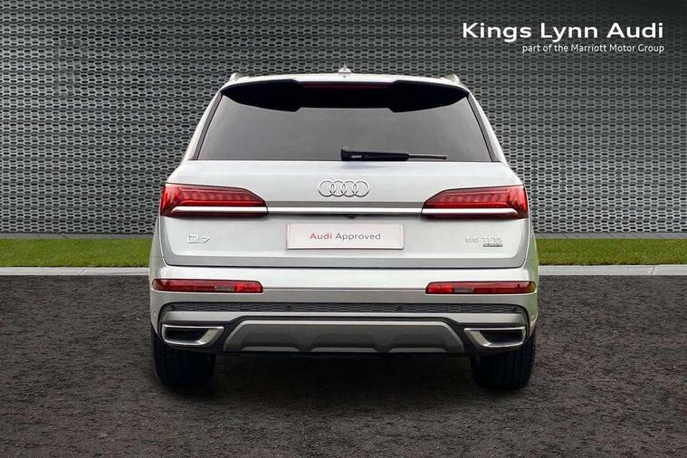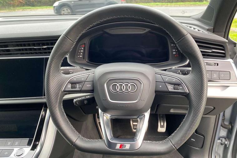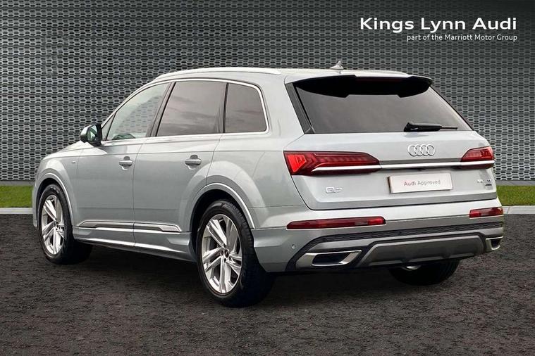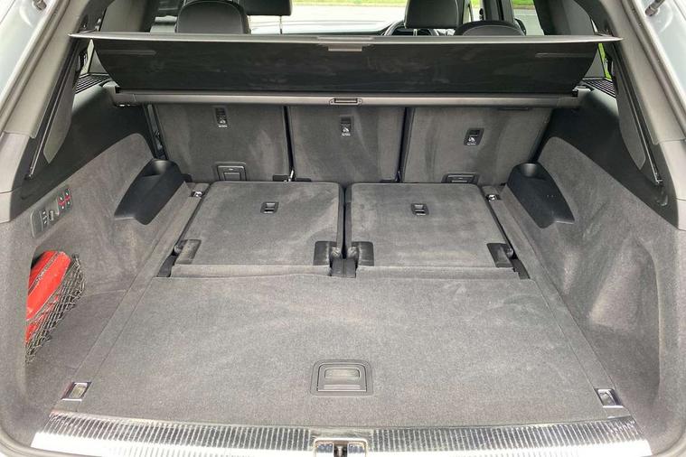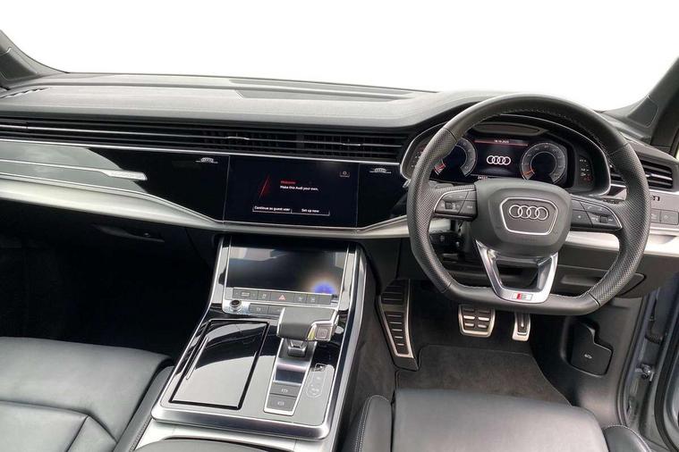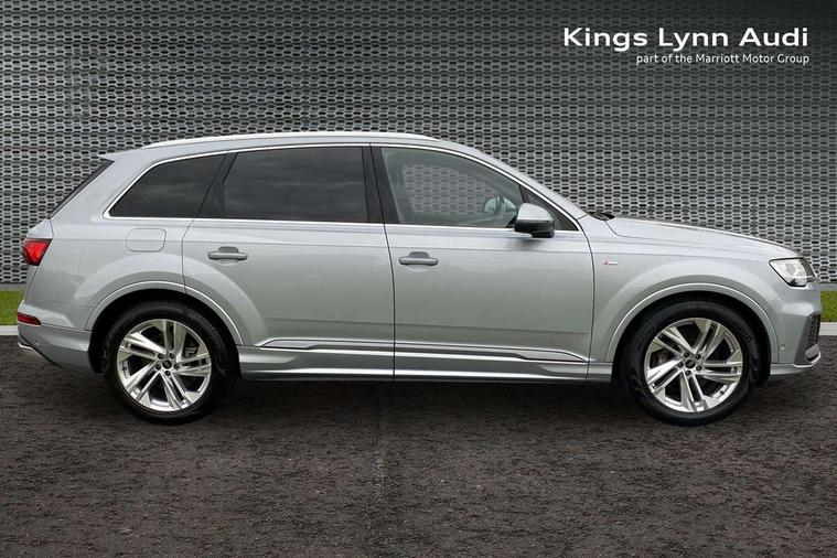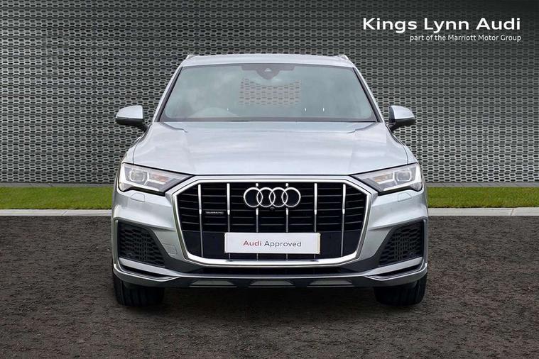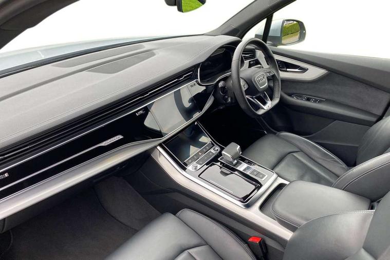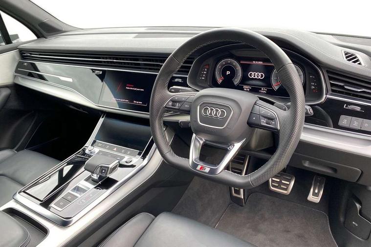 Audi connect safety and service (e-call), Audi connect with Amazon Alexa Integration, Audi drive select (Auto, Comfort, Dynamic, Efficiency, Individual, Off-road and All road), Bluetooth interface, Camera based traffic sign recognition, Electromechanical steering, MMI navigation plus with MMI touch screens includes 10.1" and 8.6" screens with haptic feedback, Natural voice recognition, Parking system plus with 360 degree display (front, rear and side sensors) - acoustic and visual park assist system, Power operated tailgate, Rear view camera, Smartphone interface includes wireless Apple carplay/Android Auto, Start/stop system, 48V Mild hybrid technology, 85 litre fuel tank, Adaptive air suspension, Quattro all wheel drive with self locking centre differential, Audi music interface - front 2 USB-C ports with charger and data functions, Audi sound system with 6 channel amplifier, 180 watt amplifying capacity and 10 loudspeakers including subwoofer, DAB digital radio module, 3rd brake light, Aluminium roof rails, Aluminium window trim, Auto dimming frameless rear view mirror, Body coloured door mirrors, Dark tinted Matrix LED headlights with dynamic front and rear indicators, Electrically adj heated/folding + automatically dimming exterior mirrors with memory + automatic kerb side function for passenger side exterior mirror, Heat insulating glass in windshield, Integrated LED indications in door mirrors, LED daytime running lights, LED rear tail lights, Privacy glass - dark tinted rear and rear side windows from B-pillar backwards, Rear side wing doors, Rear wiper, S Line badge on wings, S line bumpers in full body colour paint finish, S line roof spoiler, S line styling side ventilation grilles and side skirts, 2 seat bench in 3rd row, 2 zone automatic climate control, 3 seat bench in 2nd row, 7 seat layout with ISOFIX points for the front passenger seat and rear passenger seat, Black cloth headlining, Comfort front centre armrest, Electric adjustable front seat with 4 way lumbar support, driver memory functionality, Folding rear seats, Front head restraints, Front/rear floor mats, Heated front seats, Illuminated door sill trims with S logo, LED interior ambient lighting, Luggage compartment cover, Luggage compartment sill protection in stainless steel, Rear head restraints, Single front passenger seat, Stainless steel pedals, Sunvisors with illuminated vanity mirrors, 3 point seatbelts on all rear seats, Audi pre sense front, Child locks on rear doors, Driver and front passenger, front side and curtain airbags, Electromechanical parking brake, Electronic Stabilisation Control (ESC) including ABS, ASR and EDL, Extended pedestrian protection measures, Hill hold assist, Seatbelt monitoring, Tyre pressure loss indicator, Warning triangle and first aid kit, Anti theft alarm, Anti-theft wheel bolts and wheel loosening detection, Keyless Go, Remote central locking, Darkened matt brushed aluminium inlays, Tool kit, Tyre repair kit,