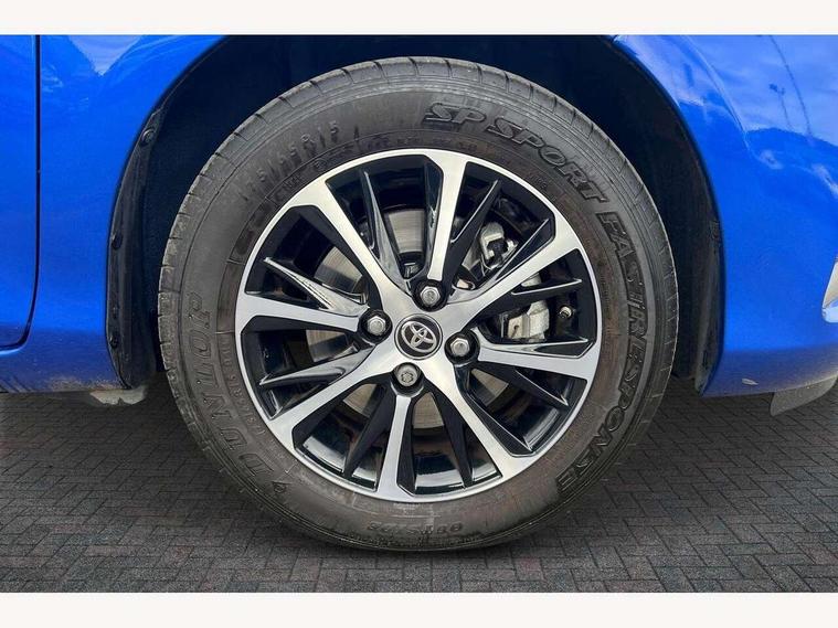 Bluetooth system, Cruise control, External temperature gauge, Fuel indicator with low level warning, Lane departure warning system, Lights on warning, Multi-information display, Power Steering, Push button starter, Rear parking sensor, Rear view camera, Road sign assist - RSA, TFT display screen, Touch 2 Go navigation system, Trip computer, 6 speakers, Auxiliary input socket, DAB Digital radio, Steering wheel mounted audio/telephone controls, Touch 2 touchscreen Radio with iPod connectivity, USB connection, 2 speed front wipers + intermittent wipe, Auto high beam, Auto up and down function on drivers window, Body colour bumpers, Body colour door handles, Body coloured door mirrors, Chrome fog light surround, Daytime running lights, Door mirror integrated indicators, Drivers window one touch up/down, Electric adjustable heated door mirrors, Electric front windows, Follow me home headlights, Front fog lights, Green tinted glass, Heated rear windscreen, Projector headlamps, Rain sensitive windscreen wipers, Rear wiper, Turning signal integrated indicators in door mirrors, 3 spoke leather steering wheel, 60/40 split folding rear seat, Active headrests, Boot light, Cloth upholstery, Driver seat height adjust, Driver/passenger vanity mirrors with covers, Dual zone automatic climate control, Front cupholders x 2, Front map reading lights, Front seats with lumbar support, Glovebox, Height adjustable front head restraints, Height adjustable rear seat head restraints (x3), Isofix system on outer rear seats, Leather gear knob, Leather parking brake handle, Rear cupholder, Removable rear parcel shelf, Sliding front seats, Tilt/telescopic steering column, 3 point seatbelts on all rear seats, ABS+EBD+Brake assist, Collision mitigation braking system, Curtain airbags, Driver and passenger airbags, Drivers knee airbag, Emergency brake light system (EBS), Front passenger airbag on/off switch, Front seatbelt reminder, Front side airbags, Height adjustable front seatbelts with pre-tensioners and load limiters, Hill start assist control (HAC), Passenger airbag deactivate switch, Rear child proof door locks, Rear seat belt reminder, Road sign information display, Seatbelt warning lamp and buzzer, Toyota safety sense including Road sign assist, Pre collision system, auto high beam and lane departure alert), Tyre pressure monitoring system, Vehicle stability control VSC + traction control, Engine immobiliser, Remote central locking, Instrument panel in grey, Space saver spare wheel,
