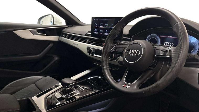 Audi connect safety and service (e-call), Audi connect with Amazon Alexa Integration, Audi drive select (Auto, Comfort, Dynamic, Efficiency and Individual), Audi parking system plus with front and rear sensors, Audi smartphone interface, Audi virtual cockpit - 12.3" full colour digital instrument cluster, vehicle/engine speed, Radio/media information+Driver assistance systems, Automatic start-stop system with coasting functionality and efficiency programme, Bluetooth interface, Electro-mechanical power steering, Email, calendar and text messages displayed via MMI, MMI nav+ with MMI touch - 10.1" high resolution MMI display, touch sensitive, 3D map, route/country info, dynamic route guide, personal route assist, Power operated tailgate, Rear view camera, Service interval indicator, Voice control system, Diesel particulate filter, Sports suspension lowered by 23mm, 8 passive loudspeakers, CD player, DAB digital radio reception, Two additional USB ports for rear passenger in rear centre console, Two SDXC card slots, Audi matrix LED headlights with LED rear lights + dynamic front and rear indicators, Auto dimming rear view mirror, Body colour bumpers, Body colour door handles, Body colour front spoiler lip, Body colour side sill trim, Body coloured door mirrors, Electric adjustable heated door mirrors, Electric folding door mirrors, Electric front windows, Front fog lights, Honeycomb structure radiator grille in grained matt black, LED daytime running lights, LED third brake light, Matt aluminium silver tailpipe trim, Privacy glass, Rain and light sensors, Rear side wing doors, S line badges on front wings, S line front and rear bumpers with side skirts, S Line rear diffuser in matt titanium black with trim strip in matt aluminium silver, Side air inlets in grained matt black with matt aluminium silver inlay, Variable front intermittent wipers, Windscreen with acoustic glazing, 4 way electric lumbar support for driver and front passenger, 40/20/40 split folding 3 seater rear bench seat, Adjustable steering column, Black cloth headlining, Black perforated leather gearknob, Contrast stitching on seats, steering wheel and gear lever gaiter, Deluxe 3 zone electronic climate control, Front centre armrest, Front head restraints, Front/rear floor mats, Heated front seats, Illuminated door sill trim with S logo, ISOFIX child seat mounting and top tether, Luggage compartment mat, Manual seat adjustment, Rear headrests, Single front passenger seat, Stainless steel pedals, Sunvisors with vanity mirrors, LED interior light pack - A5/RS5, 3x3 point rear seatbelts, 6 airbags - Driver, front passenger, curtain and side airbags, Electromechanical parking brake, Electronic Stabilisation Control (ESC) including ABS, ASR and EDL, Front passenger airbag deactivation, Height adjustable front seatbelts, Hill hold assist, Manual child lock in rear doors, Multi collision brake assist, Pop-up bonnet for pedestrian protection, Pre sense city, Seatbelt monitoring, Tyre pressure warning, Variable restraint system, Warning triangle and first aid kit, Anti theft alarm system, Anti theft wheel bolts, Immobiliser, Keyless Go, Remote central locking, Matt brushed aluminium inlays, Tool kit, Tyre repair kit,