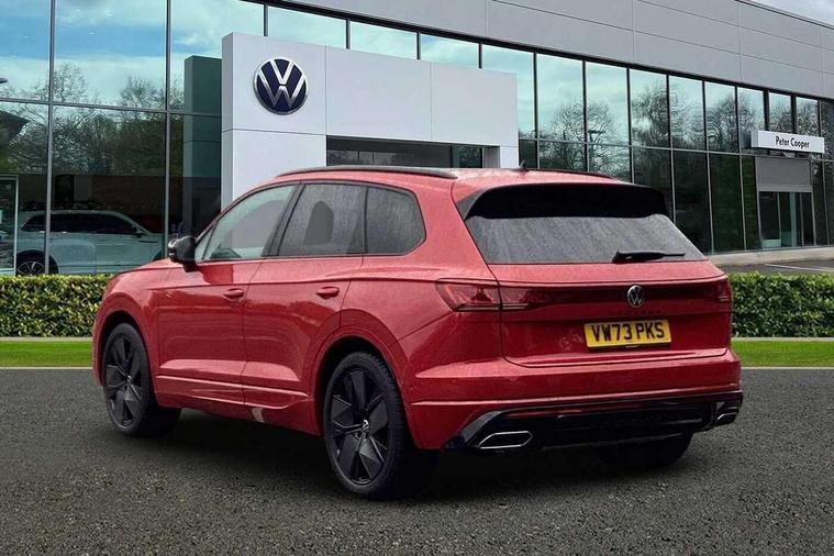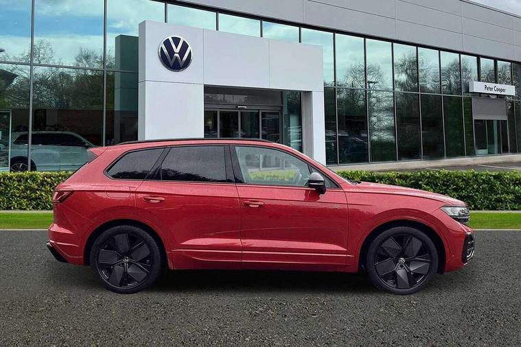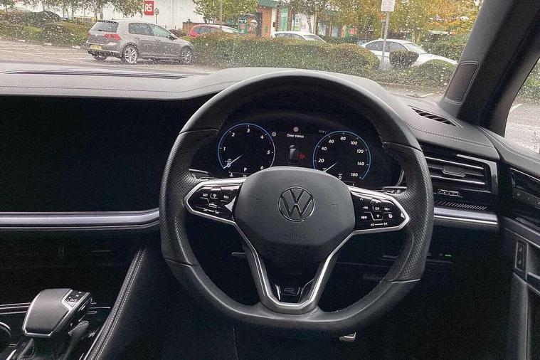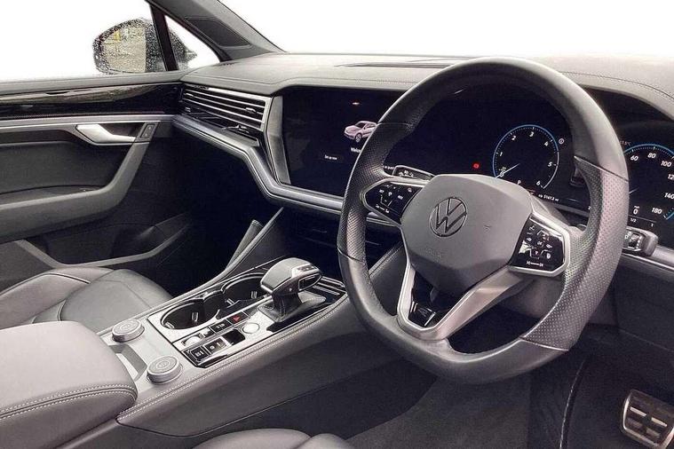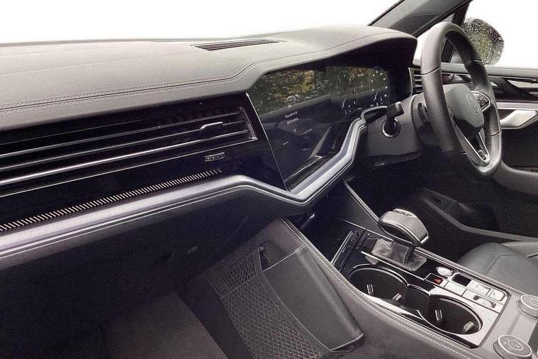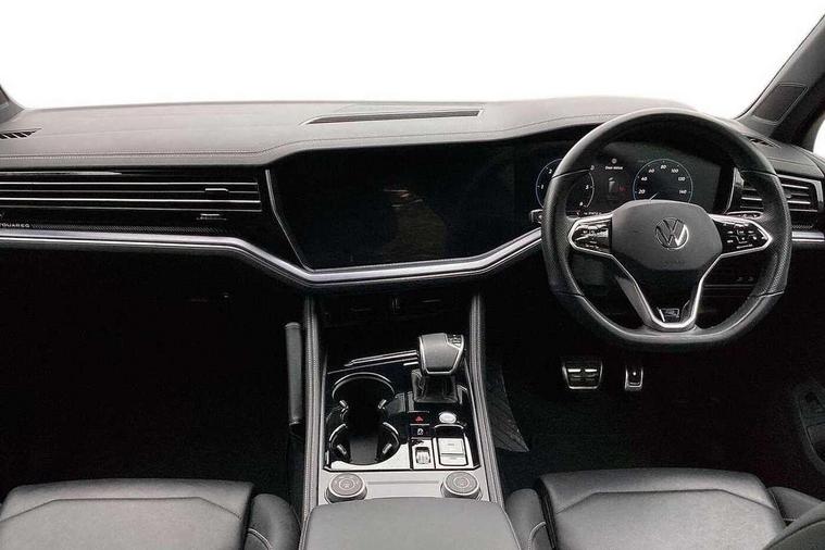 15" Screen Top infotainment system Premium (MIB3), Adaptive cruise control, Advanced driver attention and drowsiness monitor, Driver profile selection, Dynamic road sign display, E-Sim card for online connectivity, eCall emergency system, Innovision cockpit, Intelligent park assist, Mobile phone interface with inductive charging, Multi-colour Active Info display, Park Assist - Sensor controlled steering aid to assist parallel or bay parking, PAS, Warning signal and warning light for front and rear seatbelts not fastened, Wireless app connect, Adaptive chassis control, Air suspension, DAB Digital radio, Diversity antenna for AM/ FM reception, We Connect and We Connect Plus functionality, Automatic coming/leaving home lighting function, Automatic headlights, Black door mirrors, Black style comfort bumpers, Dynamic headlight range control with dynamic cornering light, Electric front tilt/slide panoramic sunroof and fixed rear sunroof, Electrically power adjustable, heated, folding, auto dimming, front passenger exterior door mirror lowering function, External USB type C socket and charging sockets, Gloss black roof rails, HD LED Matrix beam plus digital headlight projection with variable light distribution, Headlight washers, Heat insulating darkened glass in side and rear windows, Heated windscreen washer jets, Highway light, LED 3rd brake light, LED daytime running lights, LED rear combination lamp with variable lighting functions and special styling, Poor weather light, Rear exhaust tailpipe, Rear fog light with back up light on both sides, Rear light bar and illuminated logo, Rear side wing doors, Rear wiper, Stainless steel door sill protection, 12V socket in centre console, 3 rear headrests, 3 seat bench in 2nd row, 4 zone climate control, Airbag label on sun visor and B-pillar, Brushed stainless steel pedals, Double sun visors with illuminated vanity mirrors, Front + rear carpet mats, Front centre armrest, Leather wrapped multifunction sports steering wheel, heated, with touch control and shift paddles, Mechanical rear seat release, Power adjustable lumbar support in front, Power seats in front, right side with memory features and seat cushion depth adjustment, Rear seat backrest and split folding with center armrest, Single front passenger seat, Extra acoustics pack - Touareg, Memory pack plus - Touareg, 3 point seatbelts, outer rear with ECE lable, ABS, Child locks on rear doors, Curtain airbags, Driver and front passenger safety-optimised head restraints, Driver/Front Passenger airbags, Extended pedestrian protection measures, Front assist, Front seat side impact airbags, Generative braking with start and stop system, Height adjustable 3 point front seatbelts with pre tensioners, Passenger airbag deactivate switch, Three 3 point rear seatbelts, Two tone horn, Tyre pressure loss indicator, Warning triangle and first aid kit, Alarm system with interior protection, Easy open and close sensor controlled luggage compartment opening and closing with remote unlocking, Keyless Access Keyless locking and starting system with SAFELOCK, Aluminium decorative inserts, Black decorative trims, Gloss black decorative inserts in centre console, Tool kit,
