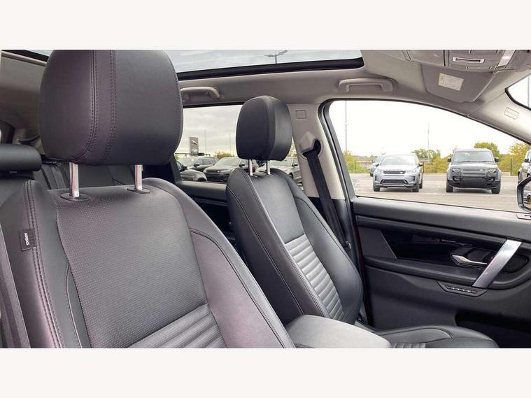 Android Auto, Apple CarPlay, Blind spot assist, Connected navigation pro, Driver condition monitor, InControl remote premium, Interactive driver display, Lane keep assist, PAS, Powered tailgate/boot lid, Service interval indicator, Traffic sign recognition with adaptive speed limiter, Trip computer, All terrain progress control, Coil suspension system, Diesel particulate filter, Terrain Response 2, Bluetooth connectivity including audio streaming, Digital Audio Broadcast radio-DAB, Steering wheel mounted audio controls, Automatic headlight levelling, ClearSight interior rear view mirror, Door mirror memory, Electric front/rear windows, Illuminated metal treadplates with brand name script, Power fold, auto-dimming, heated door mirrors with approach lights, Rain sensing windscreen wipers, Rear wiper, Front passenger isofix child seat attachment, Illuminated vanity mirrors, Third row dual adjustable individual seats, Tilt/reach adjustable steering wheel, Online pack - Discovery sport, 3 point seatbelts on all seats, ABS, Brake hold function, Collision mitigation braking system, Cornering brake control (CBC), Driver/Front Passenger airbags, Drivers knee airbag, Electronic brake force distribution, Electronic parking brake, ESP + traction control, High speed emergency braking, Hill descent control, Hill launch assist, Pedestrian airbag system, Roll stability control, Side and curtain airbags for front and 2nd row seats, Tyre pressure monitoring system, Battery Back Up System (BBUS) with tilt sensor, Intrusion sensor, Keyless entry, Locking wheel nuts,