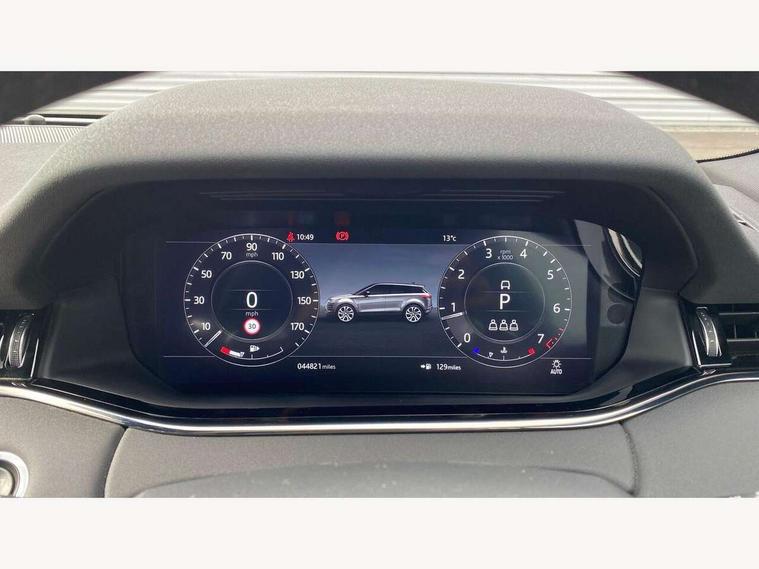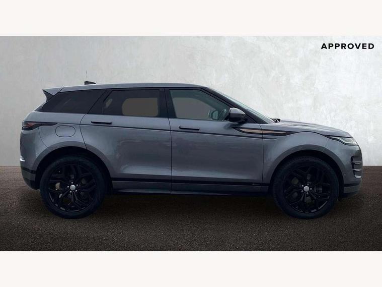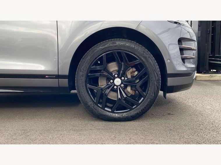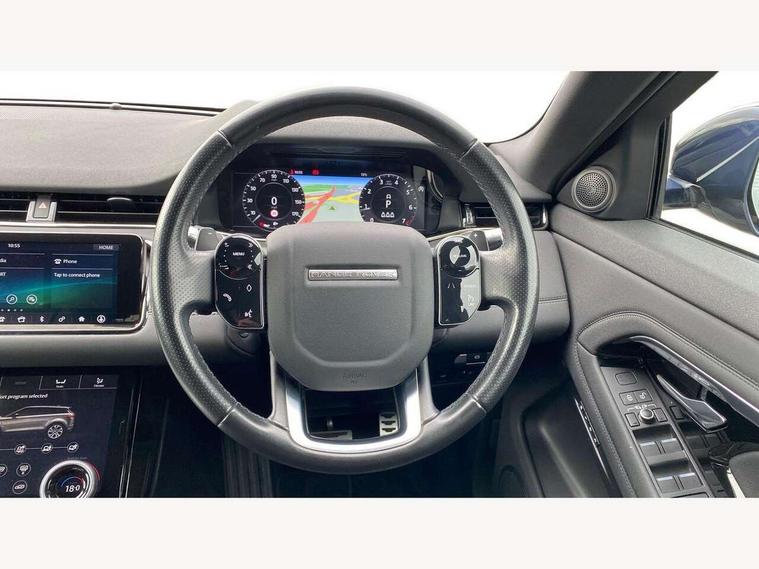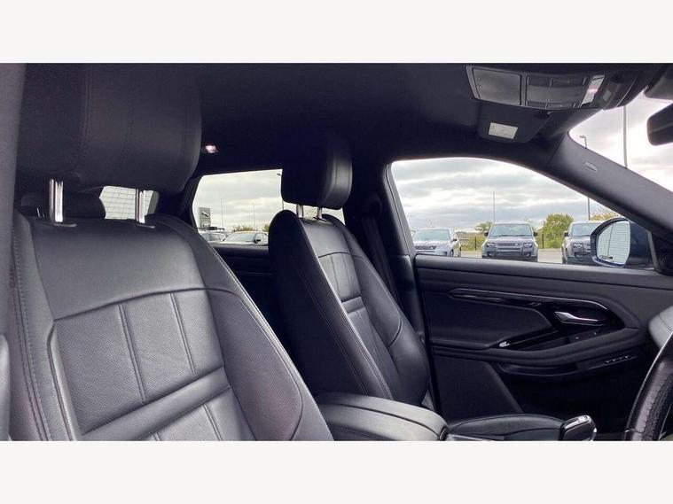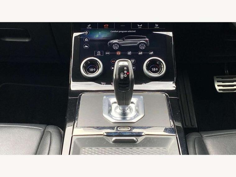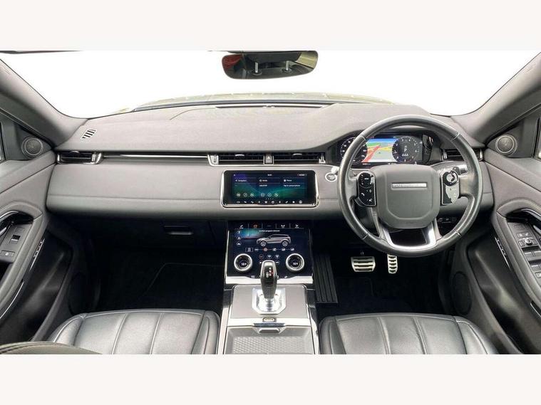 360 degree parking aid, Android Auto, Apple car play, Bluetooth connectivity, Brake pad wear indicator warning light, Clear exit monitor, Driver condition monitor, Duo touch pro, Electronic power assisted steering (EPAS), InControl remote, Interactive Driver display instrument cluster, Land Rover InControl apps, Lane keep assist, Navigation pro system, Park assist - Parallel, perpendicular and parking exit, Pro services and wifi hotspot, Push button starter, Rear traffic monitor, Smart settings, Traffic sign recognition with adaptive speed limiter, Voice control system, All terrain progress control, Efficient Driveline, Large fuel tank, Passive suspension, Terrain Response 2 Auto, Digital Audio Broadcast radio-DAB, Steering wheel mounted controls, Automatic headlight levelling, Electric windows with one touch open/close and anti trap, Evoque and R-Dynamic badge, Flush deployable exterior door handles, Heated rear window with timer, Heated washer jets, Heated windscreen, Power fold, auto-dimming, heated door mirrors with memory and approach lights, Rain sensing windscreen wipers, Rear fog lights, Shadow atlas bonnet and tailgate script, Tailgate spoiler, 40:20:40 split folding rear seats, Black gearshift paddles, Bright metal pedals, Isofix system on outer rear seats, Overhead lighting console, Overhead stowage for sunglasses, Passive front head restraints, Rear air vents, Rear centre headrest, Sunvisors with illuminated vanity mirrors, Twin front cupholders with cover, Twin sliding front centre armrest, 3 rear 3 point seatbelts, Anti-lock braking system (ABS), Customer configurable autolock, DSC - Dynamic Stability Control, Electronic brake force distribution, Electronic parking brake, Electronic traction control, Front and rear seatbelt reminder, Hill descent control, Hill launch assist, Low traction launch, Power operated child locks, Roll stability control, Six airbags - Driver and passenger airbags/driver knee airbag/front side airbag and curtain airbags, Torque vectoring brake, Tyre pressure monitoring system, Alarm, Immobiliser, Intrusion sensor, Locking wheel nuts,