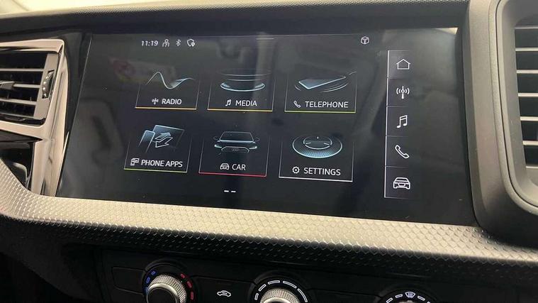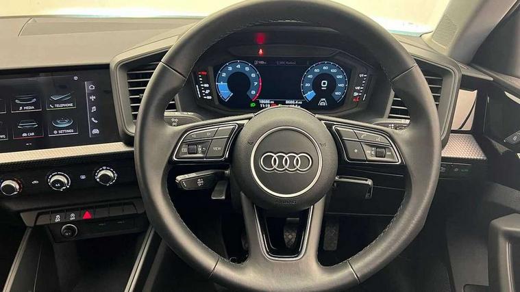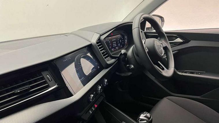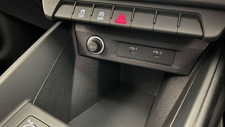 10.25" Digital instrument cluster display classis style instrument dials + speed, odometer, time, outside temperature, telephone menu + fuel level warning, Audi smartphone interface with connect compatible smartphone via USB directly MMI display + Nav, music, third party apps controlled via MMI controller, Automatic start/stop system, Bluetooth interface, Driver's information system, Electromechanical power steering, Emergency e-call, Emergency services call system, Lane departure warning system, Service interval indicator, Speed limiter, Voice control system, Washer fluid level indicator, Dynamic suspension, 1 x SDXC card reader, 2 x USB type C connection points, 6 passive loudspeakers, DAB Digital radio, MMI radio plus with 8.8" colour MMI display screen and MMI touch, Auto dimming rear view mirror, Body coloured bumpers, Body coloured door mirrors, Electric front and rear windows, Electrically adjustable, heated, folding door mirrors with integrated LED side indicator, Front side air inlets with front spoiler lip and rear diffuser in matt black grained, Heat insulating glass windscreen and side windows, Heated rear windscreen, High level LED brake light, LED headlights with LED rear lights + dynamic rear indicators + headlight adjustment and high beam, turning light + LED daytime running lights, Radiator grille in matt black, Rain and light sensors, Rear fog lights, Rear side wing doors, Rear wing door, Rear wiper, 12V socket in centre console with two cup holders, 3 rear seats with headrests, 3 seat bench in 2nd row, 3 spoke leather multifunction plus steering wheel, 40:60 Split folding rear seat or folded fully, Air vents, door handle recesses and centre console in black, Delta cloth upholstery, Driver and passenger seat with manual height adjust with forward and backwards adjustment, Front head restraints, Front passenger seat, Front/rear floor mats, Height and reach adjustable steering wheel, ISOFIX child seat mounting for front passenger and outer rear seats including top tether attachment point of outer rear seats, Leather gear knob with aluminium trim, Leatherette handbrake grip, Luggage compartment light with front and rear reading lights, Manual air conditioning, Titanium grey cloth headlining, Luggage compartment pack - A1, 3x3 point rear seatbelts, Audi pre-sense front with pedestrain and cyclist recognition, Brake assist function, Driver and front passenger airbag with front side and head airbags, Electronic Stability Control including ABS, EBD, ASR and EDL, Front passenger airbag deactivation switch, Hill hold assist, Manual rear child locks, Seatbelt height adjustment for front seats, Seatbelt monitoring, Tyre pressure warning light, Warning triangle and first aid kit, Anti theft alarm, Anti theft wheel bolts and loose wheel warning, Immobiliser, Remote central locking with 2 foldaway keys, Black inlays polygon structure, 15" 5 arm design alloy wheels,