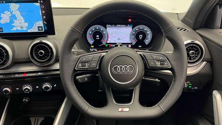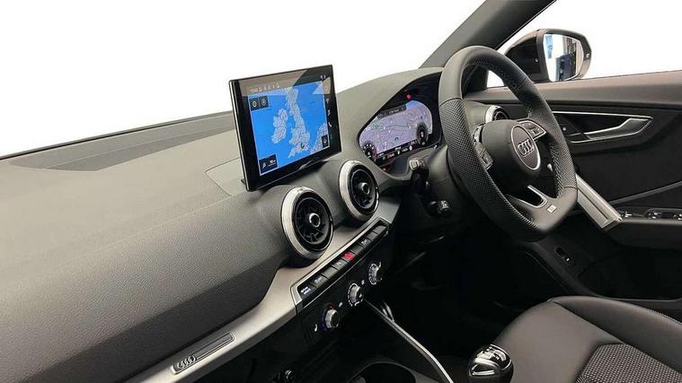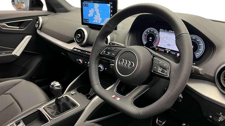 3D map display, Audi connect navigation and infotainment includes innovative services, Audi connect remote and control connects your vehicle to your smartphone, Audi drive select: power steering assistance + engine (modes: comfort, auto, dynamic, individual), Audi smartphone interface - Apple carplay/Android Auto, USB connect, 2xSDXC card readers, voice control for navi, telephone, music and 3rd party apps, Audi virtual cockpit, Automatic start/stop system with recuperation, Bluetooth interface includes bluetooth audio streaming, Camera based traffic sign recognition, Cruise control, Distraction and Fatigue warning, E-call, Jukebox hard drive memory for music (10GB), Lane departure warning, MMI navigation plus with 8.8" touchscreen, Natural voice recognition, Power operated tailgate, Progressive steering, Rear parking sensors, Sport suspension, 6 passive loudspeakers, DAB Digital radio, USB type C port, Audi beam, Auto dimming rear view mirror, Black window trims, Bumper in full body colour paint finish, Electrically adjustable, folding, auto dimming and heated door mirrors with integrated LED side indicators, Front windscreen with grey tinted sunband, LED daytime running lights, LED headlights with dipped beam, high beam, position lights, indicators, LED rear lights, LED third brake light, Privacy glass - dark tinted rear and rear side windows from B-pillar backwards, Rear side wing doors, Rear wiper, Variable front intermittent wipers, Wheel arch trims in manhattan grey, 12v socket in front, 3 seat bench in 2nd row, 3 spoke flat bottomed multi-function leather sport steering wheel, 4-way electric lumbar support for front seats including manual seat height adjustment for both front seats, 60/40 split folding rear seat bench, Black carpets, Black cloth headlining, Front and rear head restraints, Front centre armrest, Front sport seats, Front/rear floor mats, Height/reach adjust steering wheel, Illuminated door sill trims with S logo, ISOFIX child seat mounting in front passenger and rear outer seats, Manual air conditioning, Single front passenger seat, Stainless steel pedals, Black styling pack - Q2, 3x3 point rear seatbelts, 6 airbags - Front, curtain and front side airbags, Electromechanical parking brake, Electronic stabilisation control including ABS, ASR and EDL, Front passenger airbag deactivation, Hill hold assist, Pre-sense front with pedestrian recognition, Seatbelt monitoring, Tyre pressure warning light with visual and acoustic warning, Warning triangle and first aid kit, Anti theft alarm, Anti theft wheel bolts, Electronically operated child locks, Remote central door locking, Aluminium interior element, Black dashboard, Gloss black centre console, Matt brushed aluminium trim inlays, Tool kit,