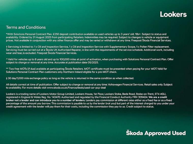 Cruise control + speed limiter, Exterior temperature gauge, Front assistant collision mitigation, Multi function trip computer, PAS, Service interval indicator, SmartLink plus, Auxiliary socket for external MP3 player, Bolero Radio, DAB Digital radio, Radio swing with 6.5" touchscreen display, Bluetooth, SD card slot, USB port and 6 speakers, Body colour bumpers, Body colour door mirrors and handles, Chrome grille surround, Coming/leaving home lighting function, Electric front windows, Electrically adjustable and heated door mirrors, Heated rear window, Height adjustable headlamps, Intermittent rear wash/wipe, LED daytime running lights, Rear fog lights, Tinted rear windows, Tinted windscreen, 1.5L bottle holder in front door panels, 2 height adjustable rear headrests, 60/40 split folding rear seat, Boot stowage box, Cargo area storage tray, Cloth upholstery, Folding grab handles, Front and rear interior lights, Front reading lights, Height adjustable driver's seat, Height adjustable front headrests, Height adjustable passenger seat, Height/reach adjust steering wheel, Isofix child seat mounting points on outer rear seats, Leather handbrake and gearshift lever, Lower glovebox cover, Luggage hooks in the boot, Multifunction leather steering wheel, Parcel shelf, Pearl grey headlining, Pollen filter, Rear courtesy light, Rear storage trays, Sunvisors with vanity mirrors, Ticket holder, Umbrella under front passenger seat, 3x3 point rear seatbelts, ABS + MSR, Curtain and side airbags, Driver and front passenger airbag with front passenger airbag deactivation, EDS, ESC with ASR, Front and rear passenger seatbelt warning light, Front seatbelt pretensioners, Hydraulic Brake Assist (HBA), Tyre pressure monitor, Immobiliser, Locking wheel bolts, Remote central locking with SAFE function and alarm with interior monitoring,