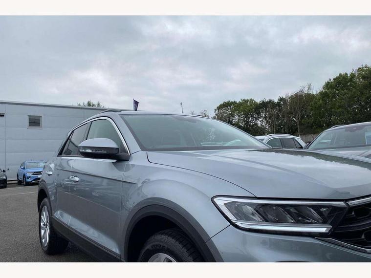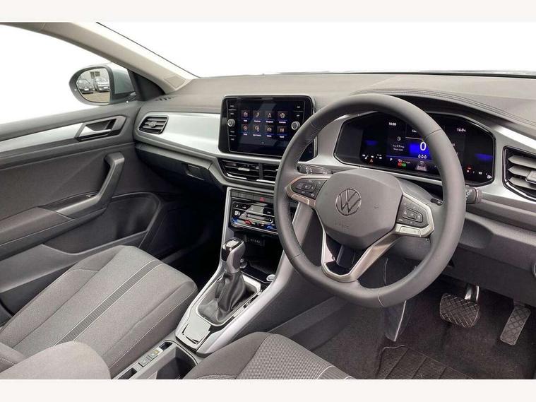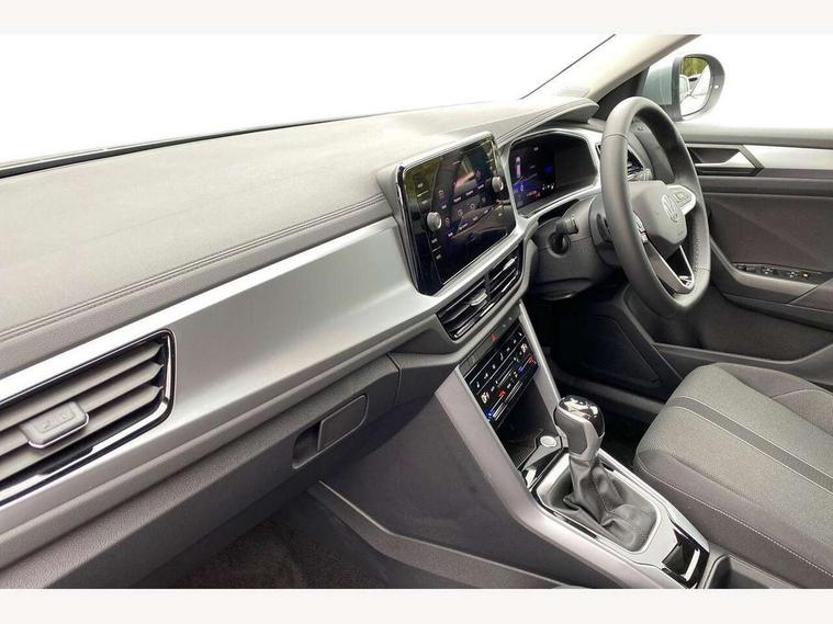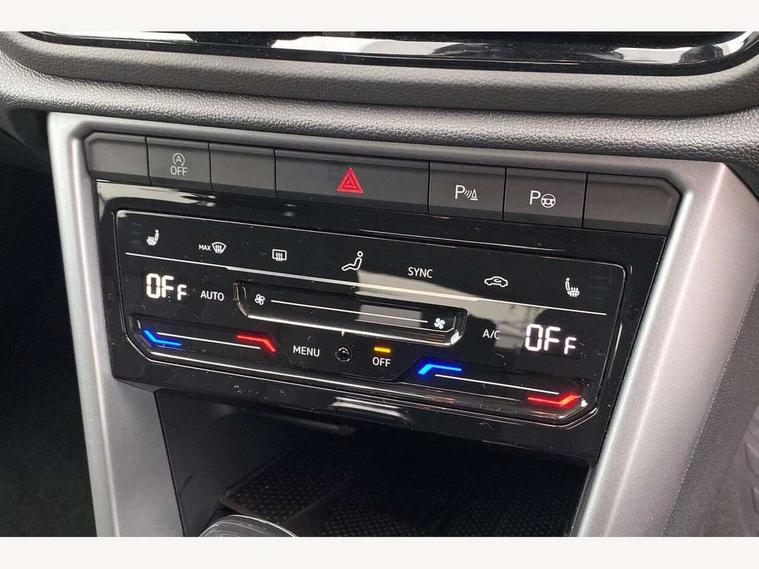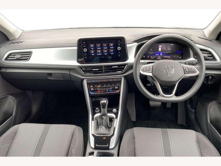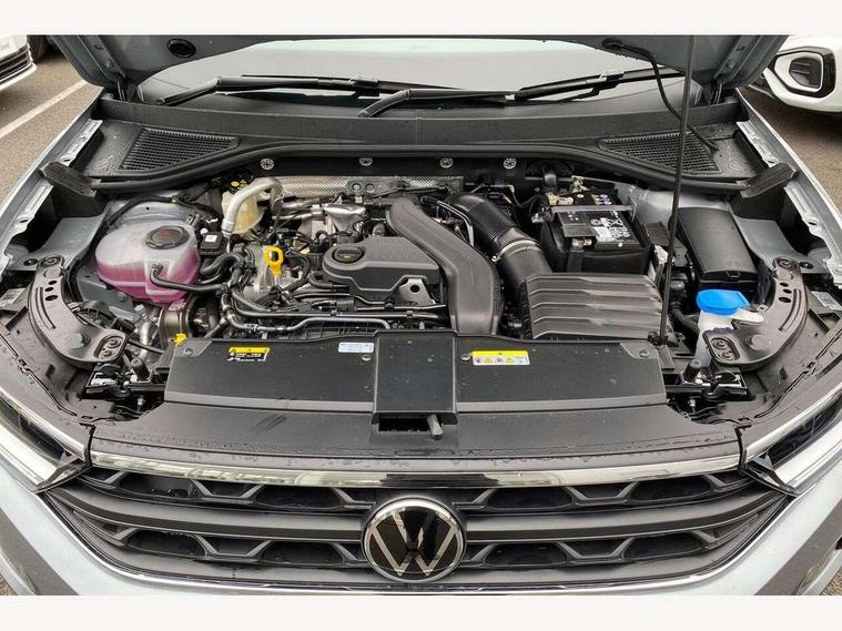 Advanced driver attention and drowsiness monitor, Dynamic road sign display, Emergency call service, Lane keeping system Lane Assist, Mobile phone interface, Modified key software - reduce switch off time for key status change to Long no motion, Online services, Park assist including front and rear parking sensors, Power assisted speed sensitive steering, Rear view camera, Service interval indicator, Tailgate/trunk lid release from outside, Think blue trainer driver tips and journey analysis, Warning sound and light for front seatbelts unfastened, Wireless app connect, Battery regeneration during braking, Front shock absorption, Rear shock absorption chassis with increased ride height, Start/stop function with battery regeneration, DAB Digital radio, Diversity antenna for FM reception, Music playback - MP3, WMA and AAC files, Premium USB cable in choice of either Apple or Android smartphone compatibility, SD card slot, Simultaneous pairing of 2 compatible mobile devices, Title and cover art display, We Connect and We Connect Plus functionality, Auto dimming interior rear view mirror, Automatic hazard lights activation under emergency braking, Automatic headlight control with LED separate daytime running lights with coming/leaving home function, Black roof rails, Body coloured bumpers and radiator grille with chrome trim and front fog lamps with chrome bezel, Body coloured exterior mirror housings and door handles, Electrically adjustable and heated door mirrors, Extended roof spoiler, Exterior mirrors aspherical on driver side, convex on front passenger side, External USB type C socket and charging sockets, Front windscreen wiper with intermittent wipe and 4 position delay, Heated rear window, LED 3rd brake light, LED rear combination lamps, LED rear number plate lights, Power windows with comfort operation and circuit breaker, Privacy glass for rear side windows and rear window, Rain sensor, Rear exhaust tailpipe, Rear fog light on one side and reversing lights on both sides, Rear side wing doors, Rear wash/wipe with intermittent wipe setting, Remote electrically foldable door mirrors, puddle lights and reverse activated passenger's door mirror, 12V power socket in centre console, 3 rear head restraints, 3 seat bench in 2nd row, 4 load lashing points in luggage compartment, Air care climatronic air conditoning system with active combination filter and 2-zone temperature control, Black stitching for floor mats, Ceramique roof liner, Cloth upholstery, Door and side trim panel in cloth, Drawer under drivers seat, Driver/front passenger seat height adjustment, Front centre armrest, Front comfort sports seats, Front cupholders x 2, Front reading light, Front seat back storage pockets, Glove compartment door with light, Instrument lighting, white adjustable panel illumination, Interior ambient lighting and surround lighting, Interior light delay, Isofix child seat preparation, Leather gearshift handle, Load-through provision with cup holder when folded down ('Unsplit rear seat bench, split folding backrest, with centre armrest), Luggage compartment lighting, Lumbar support for driver's and front passengers seat, Non-folding front passenger seat backrest, Single front passenger seat, Storage compartment in left and right luggage area, Storage compartment in rear doors, Storage compartments in driver and front passenger doors, Sunvisors with illuminated vanity mirrors, Variable boot floor, height adjustable and removable, Driver assistance pack without proactive passenger protection - T-Roc Life/Match, 3 point height adj front seatbelts + pretensioners, 3 point seatbelts in outer rear with ECE label, ABS, Child locks on rear doors, City emergency braking and pedestrian monitoring, Driver and front passenger airbag with front passenger airbag deactivation, Driver and front passenger safety-optimised head restraints, Drivers seatbelt reminder, Electronic parking brake, Electronic Stability Control (ESC) inc EDL (Electronic Differential Lock) and ASR (Traction Control), Front and rear passengers curtain airbag system including front side airbags, Front disc brakes, Hill start assist, Predictive pedestrian protection, Rear disc brakes, Two tone horn, Tyre pressure loss indicator, Volkswagen roadside assistance, Alarm with interior protection, Keyless locking and starting system keyless access with safelock, Pewter matt decorative inserts for intrument panel, centre console and door panels at the front, Trims for alloy wheels,