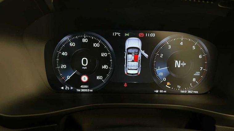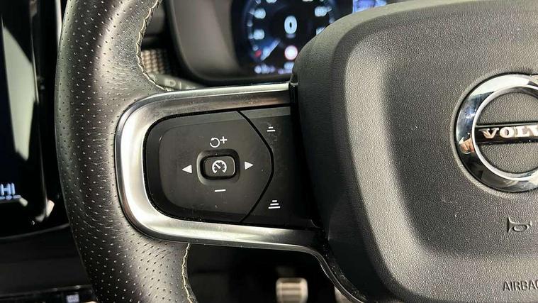 12.3" Active TFT crystal driver's instrument display, 9" centre console portrait touch screen, Adjustable steering wheel force, Bluetooth hands free telephone kit, Drive mode selector, Lane keep assist with driver alert control, Oncoming Lane Mitigation, Sensus navigation with European mapping and traffic information, Speed limiter, Speed sensitive steering, Voice control system, Volvo on call, DAB Digital radio, Steering wheel mounted remote controls, Adaptive brake lights with high level LED brake lights, Auto dimming interior mirror, Automatic headlamp levelling, Black stone door mirrors, Black stone roof, Colour coordinated auto folding and heated power door mirrors, Dark tinted glass for rear windows + rear screen + side luggage area window, Dual integrated exhaust pipes with high gloss black surround, Electrically adjustable and heated door mirrors, Embossed rear side roof pillar, Front and rear electric windows, Front tread plates, High gloss black front and rear skid plate, High gloss black lower front bumper, High gloss black mesh front grille with high gloss black surround, High gloss black roof rails, High gloss black window trim, Home safe and approach lighting, LED front fog lights, LED Headlights + Active high beam incorporating daytime running lights, Rain sensor windscreen wipers, Rear side wing doors, Rear wiper, Roof antenna, Roof spoiler, Visible VIN plate, 12V socket in front tunnel console and luggage compartment, 3 seat bench in 2nd row, 3 spoke leather steering wheel with chrome trim, 60/40 split folding rear seat, A-pillar parking ticket holder, Ambient front door and instrumental panel lighting, Black headlining, Bright metal luggage threshold, Centre console cupholders and storage, Driver seat height/tilt/lumbar adjust, Driver's side lower dashboard credit card storage compartment, Extended front seat cushions, Front door pocket and front cupholder illumination, Front footwell illumination, Glovebox bag hook, Height/reach adjustable steering column, Illuminated luggage compartment, Illuminated tailgate, Illuminated vanity mirrors + ticket holder, Isofix attachments on outer rear seats, Leather coloured key integrated remote, Leather/nubuck upholstery, Load protection net, Lockable/illuminated glovebox, Multicolour theatre lights, Passenger seat adjustable for lumbar support, Perforated leather gearknob, Rear armrest / integral cup holders / storage tray, Rear reading and courtesy lights, Single front passenger seat, Sports pedals, Underfloor stowage compartment, 3x3 point rear seatbelts, City safety, Drivers knee airbag, DSTC-Dynamic Stability and Traction Control, Dual stage driver/passenger airbags, Electronic parking brake with auto hold, Fasten seatbelt reminder, First aid kit, Hill descent control, Hill start assist, Inflatable curtain, Passenger airbag cut-off device, Road sign information display, Run off Road Mitigation, Run off Road Protection, Seatbelt reminder and pretensioners, SIPS (Side Impact Protection System), SIPS airbags, Slippery road and hazard light alert, Tyre pressure monitoring system, Vehicle deceleration control with Anti-lock Brake System, Electronic Brake Distribution and Emergency Brake Assist, Warning triangle, WHIPS whiplash protection system - front, Anti-theft alarm including immobiliser/volume sensor + level sensor, Fuel flap with deadlocking system, Key integrated remote control central locking, Locking wheel nuts, Private locking for tailgate, Cutting edge aluminium inlay,