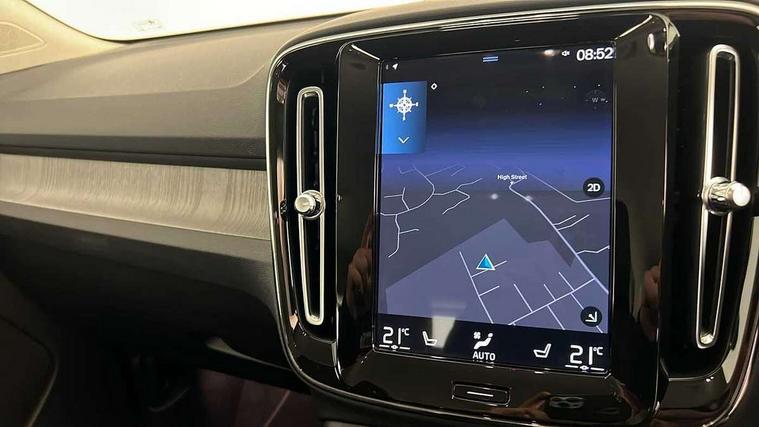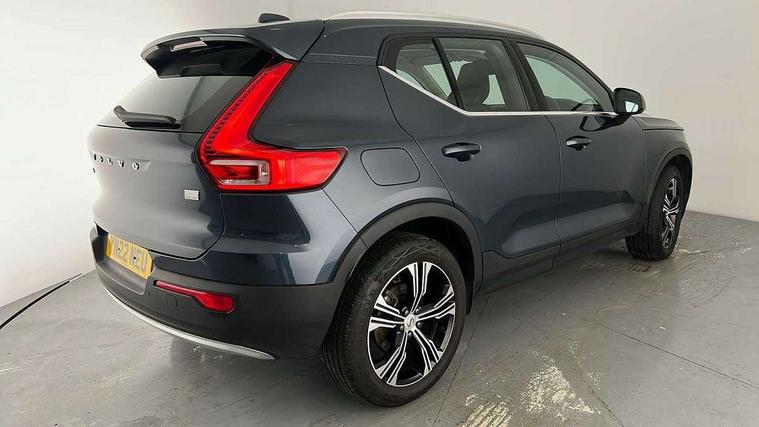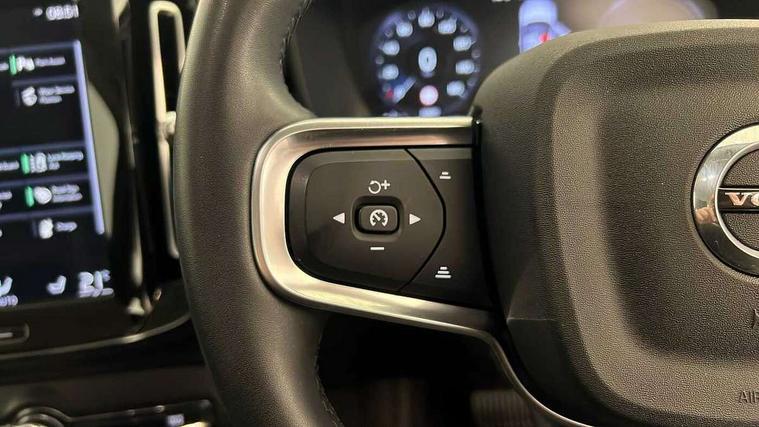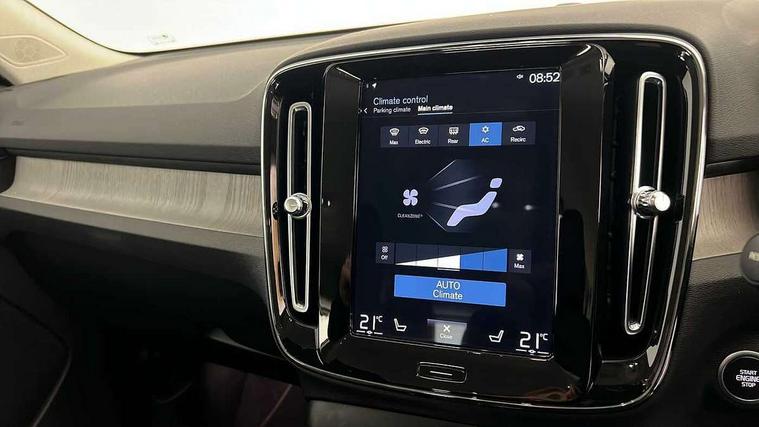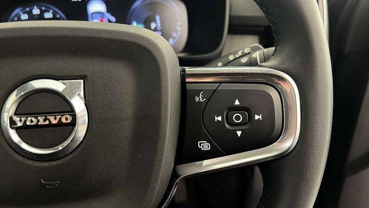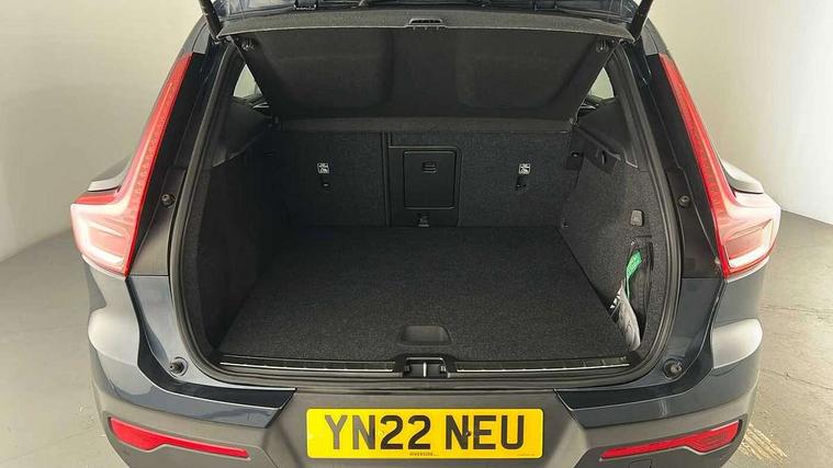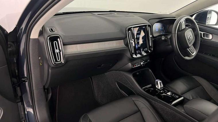 12.3" Active TFT crystal driver's instrument display, 9" centre console portrait touch screen, Adjustable steering wheel force, Bluetooth hands free telephone kit, Drive mode selector, E-call, Lane keep assist with driver alert control, Oncoming Lane Mitigation, Power operated tailgate, Sensus navigation with European mapping and traffic information, Speed limiter, Speed sensitive steering, Voice activated control for key functions, Volvo on call, 7m 10amp charge cable with 3 pin plug and 7m 1 phase 16amp type 2/mode 3 charge cable, Dynamic chassis, Electric front axle drive, Recharging port located in nearside front wing, DAB Digital radio, Low speed exterior sound speaker, Steering wheel mounted remote controls, Adaptive brake lights with high level LED brake lights, Auto dimming interior mirror, Automatic headlamp levelling, Chrome window surround, Colour coordinated auto folding and heated power door mirrors, Front aluminium tread plates, Front and rear electric windows, High gloss black front grille with chrome inserts, High gloss black sensus surround deco, High Gloss silver front and rear skid plate, Home safe and approach lighting, Integrated roof rails in silver, LED Headlights + Active high beam incorporating daytime running lights, Rain sensor with automatic windscreen wiper activation, Rear side wing doors, Rear wiper, Roof antenna, Roof spoiler, Visible VIN plate, 12V socket in front tunnel console and luggage compartment, 2 zone electronic climate control and rear air vent, 3 seat bench in 2nd row, 3 Spoke tailored steering wheel with chrome trim, 60/40 versatile split folding rear seat, A-pillar parking ticket holder, Bright metal luggage threshold, Centre console cupholders and storage, Floor mats, Front footwell illumination, Front headrests, Front reading light and theatre lighting, Glovebox bag hook, Height/reach adjustable steering column, Height/tilt adjustable driver's seat, High gloss centre tunnel deco, Illuminated glovebox, Illuminated luggage compartment, Illuminated vanity mirrors, Isofix attachments on outer rear seats, Leather faced upholstery, Load protection net, Multi directional lumbar support, Orrefors Crystal gear lever knob, Power driver seat with memory + exterior mirrors memory, Rear armrest / integral cup holders / storage tray, Rear coat hook, Single front passenger seat, Underfloor cargo storage, Vanity mirror with ticket holder, Park assist pack - XC40, 3x3 point rear seatbelts, City safety includes pedestrian, cyclist and large animal detection and front collision warning with full auto brake, Drivers knee airbag, Dual stage driver/passenger airbags, Electronic parking brake with auto hold, First aid kit, Front and outer rear seatbelt reminder and pretensioners, Front seats SIPS airbags, Hill descent control, Hill start assist, Inflatable curtain, Passenger airbag cut-off device, Road sign information display, Run off Road Mitigation, Run off Road Protection, SIPS (Side Impact Protection System), Slippery road and hazard light alert, Stability and Traction Control with Spin control, Engine Drag Control and Corner Traction Control, Tyre pressure monitoring system, Vehicle deceleration control with Anti-lock Brake System, Electronic Brake Distribution and Emergency Brake Assist, Warning triangle, WHIPS whiplash protection system - front, Anti-theft alarm including immobiliser/volume sensor + level sensor, Care key with user defined top speed, Key integrated remote control central locking + fuel flap with deadlocking system and auto open/close power windows, Locking wheel nuts, Private locking for tailgate, Driftwood inlays,